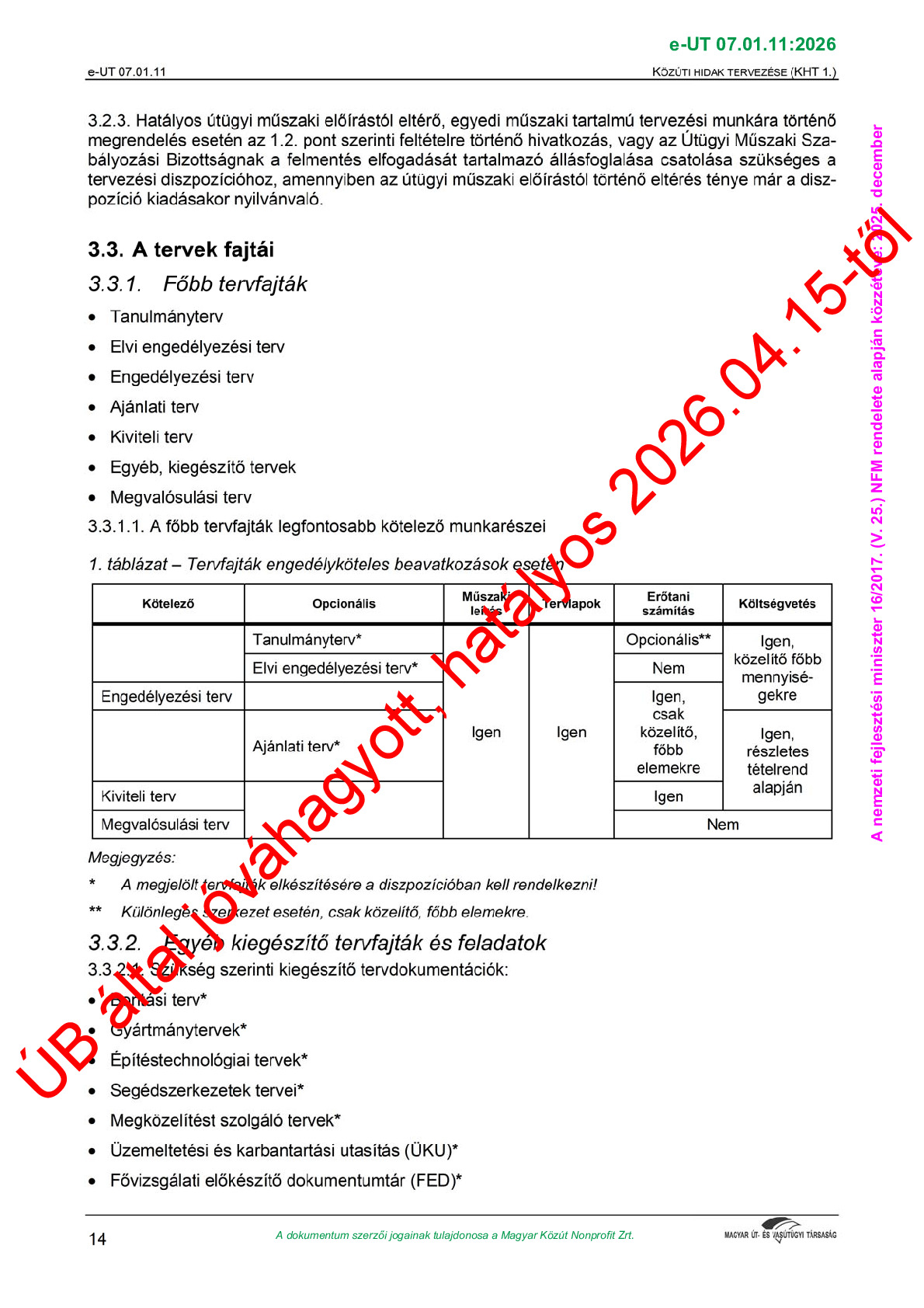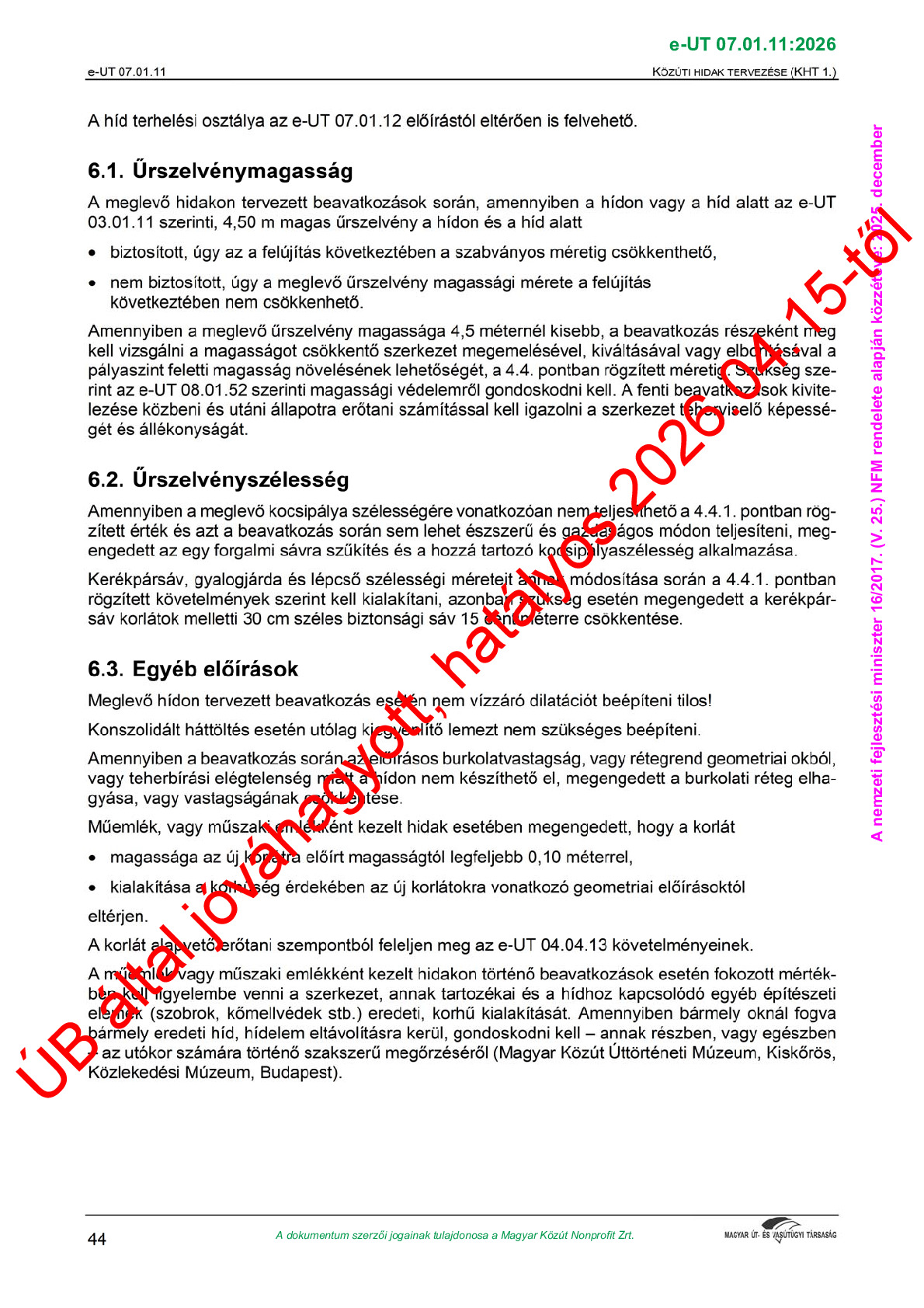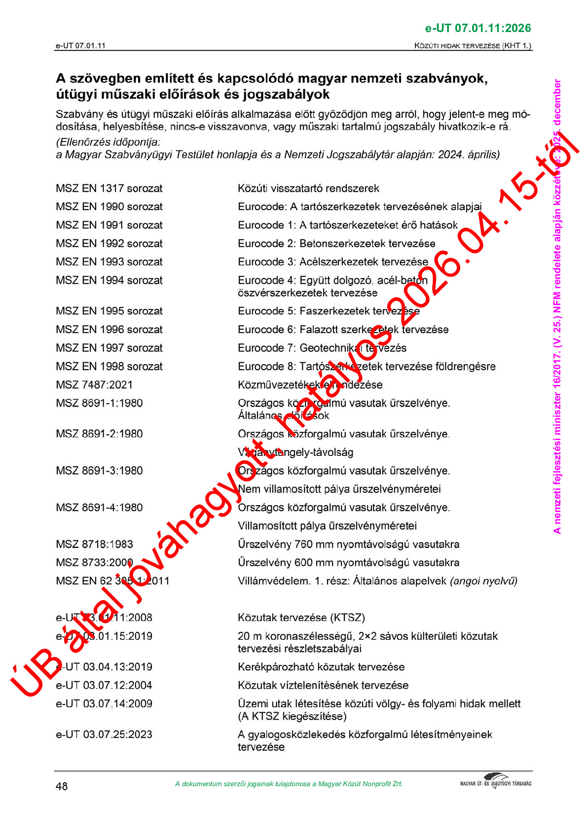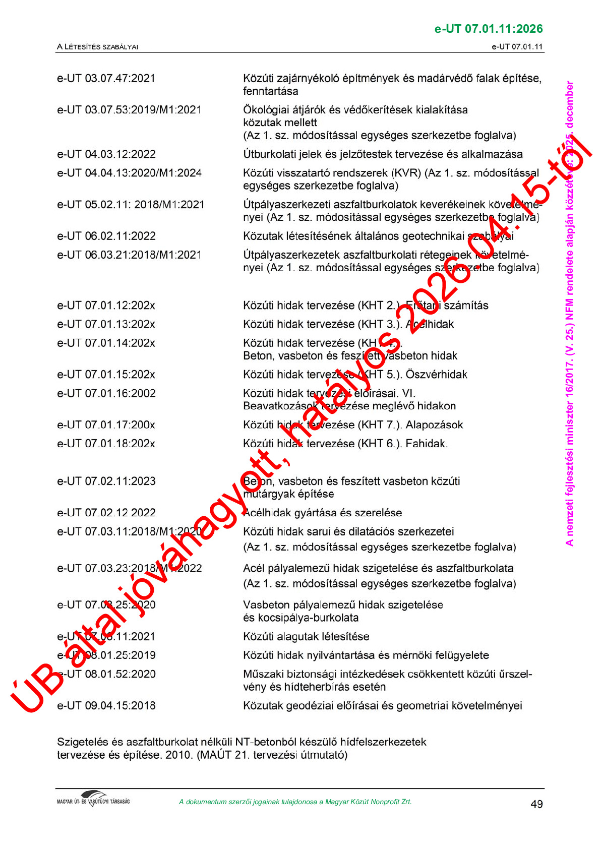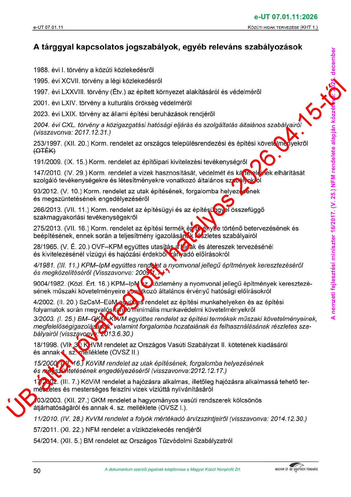 Archív, hatályt vesztet Útügyi Műszaki Előírások