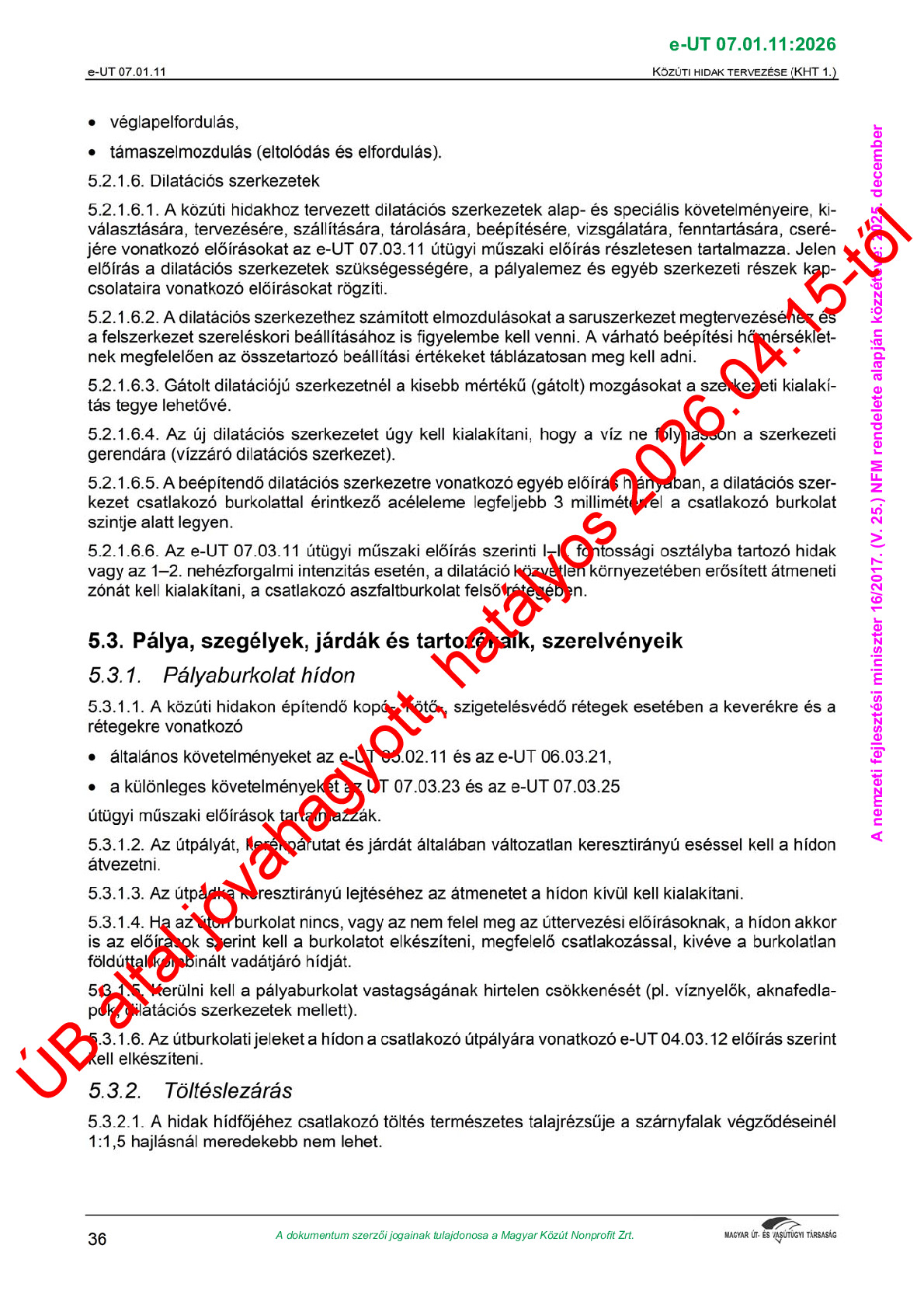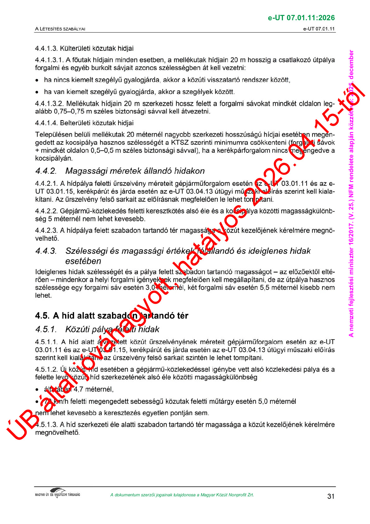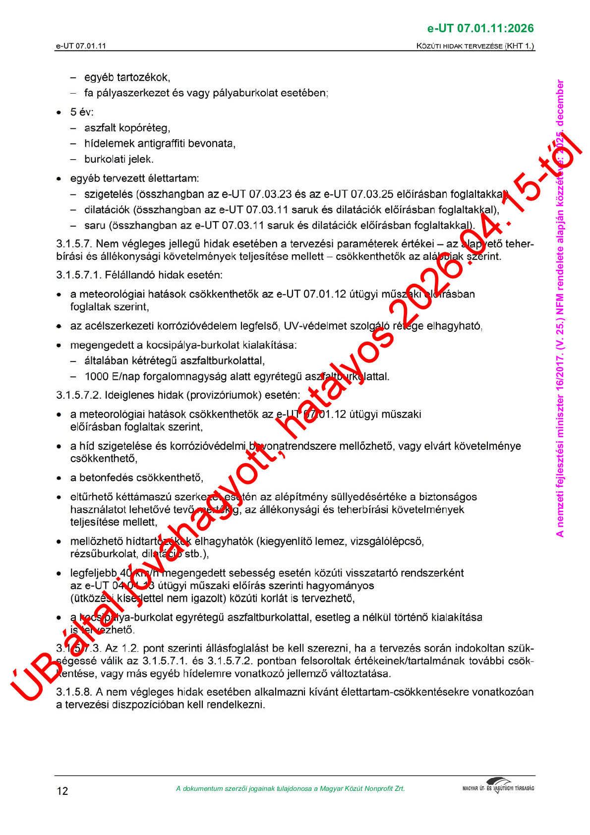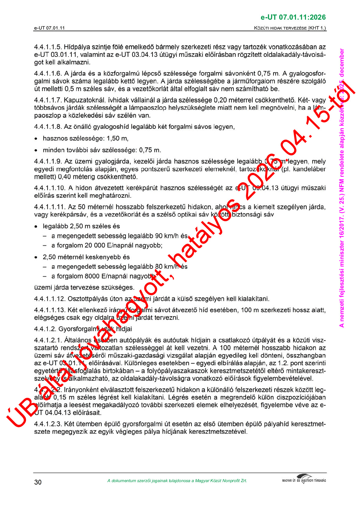 Archív, hatályt vesztet Útügyi Műszaki Előírások