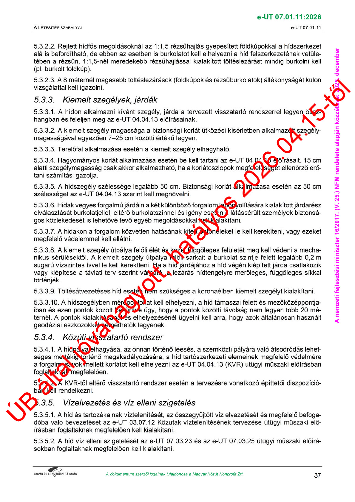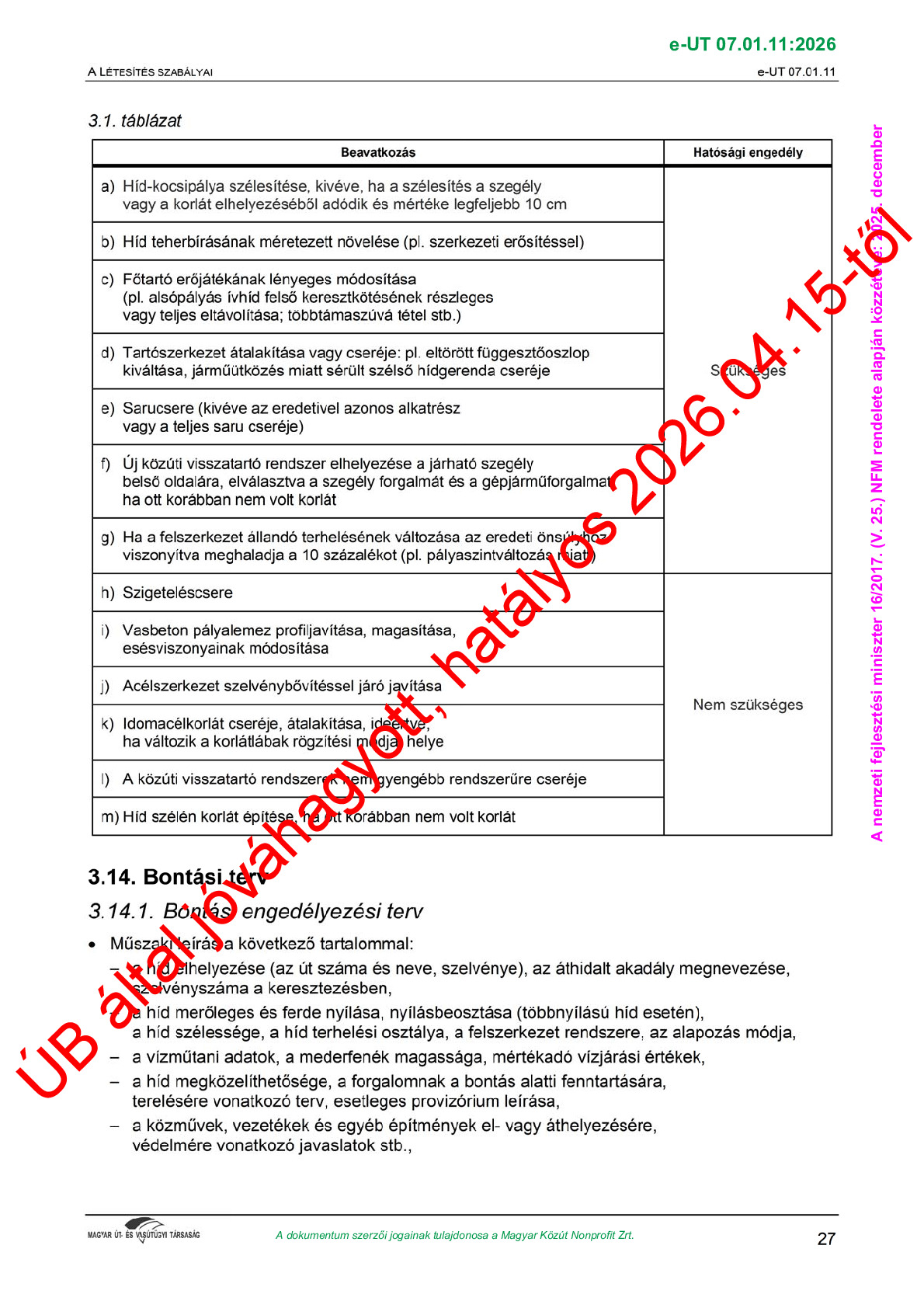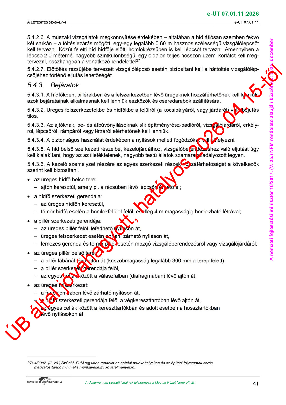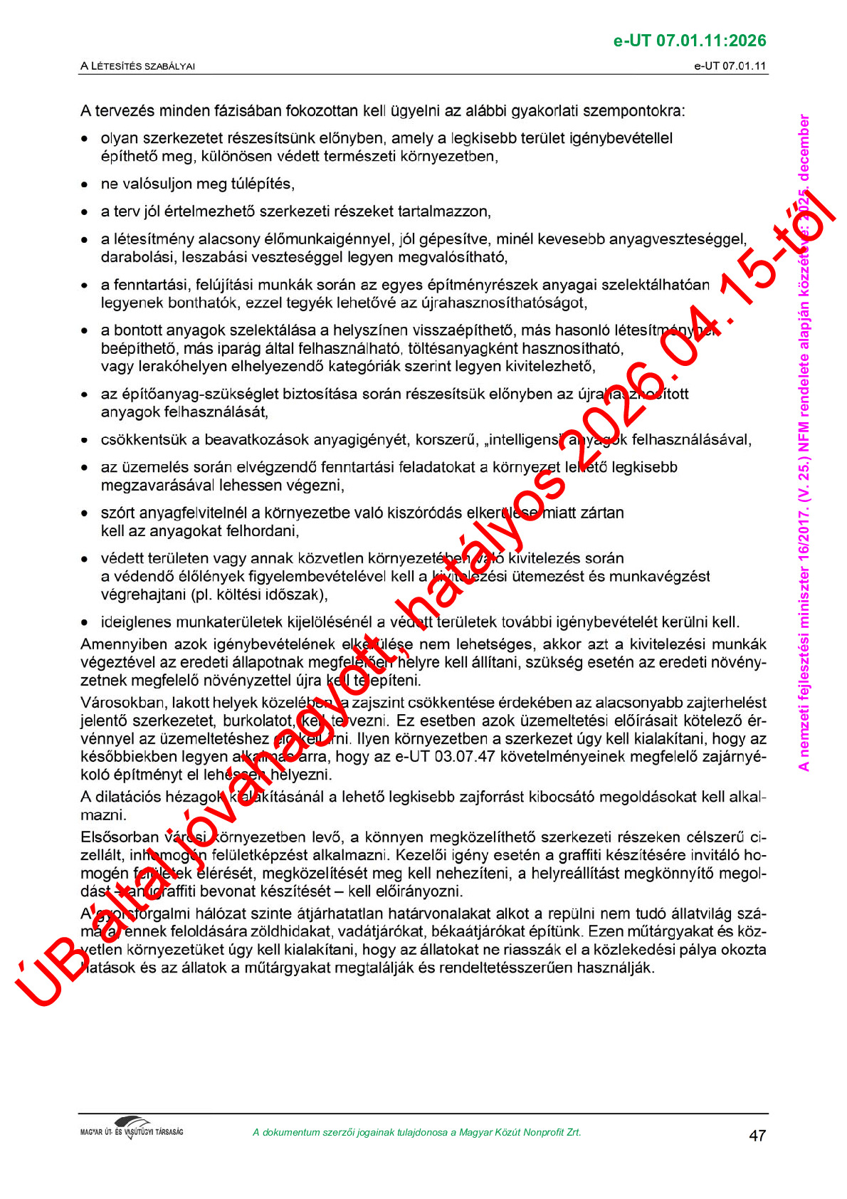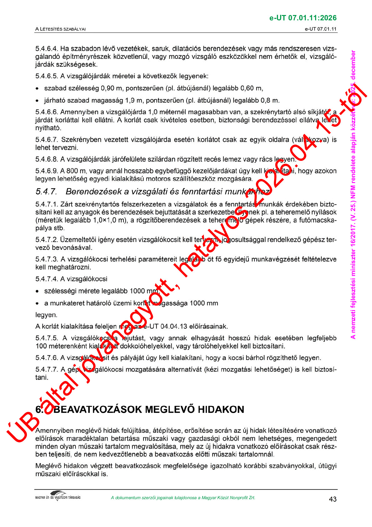 Archív, hatályt vesztet Útügyi Műszaki Előírások