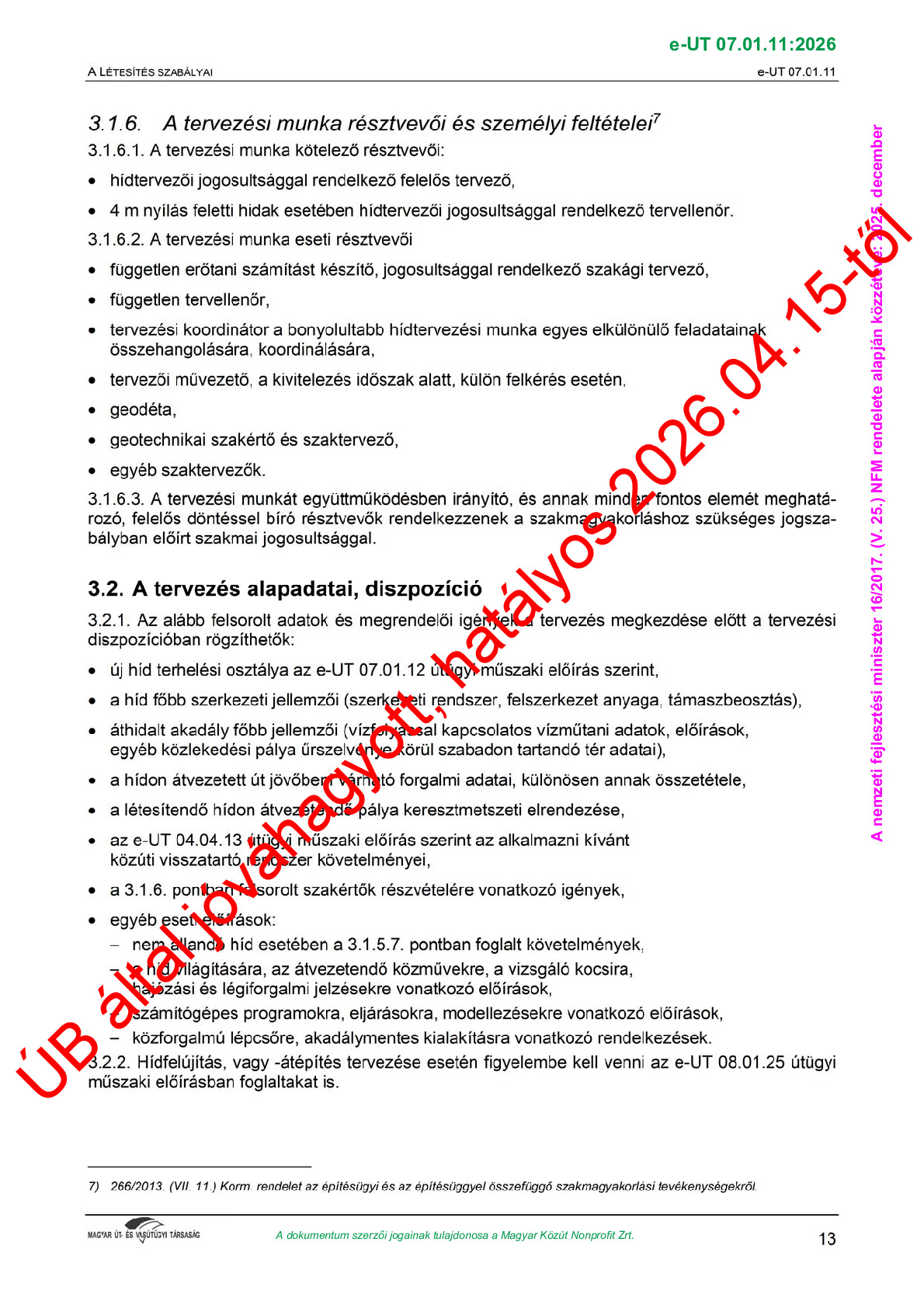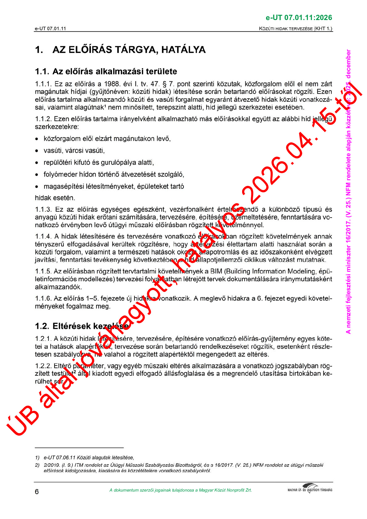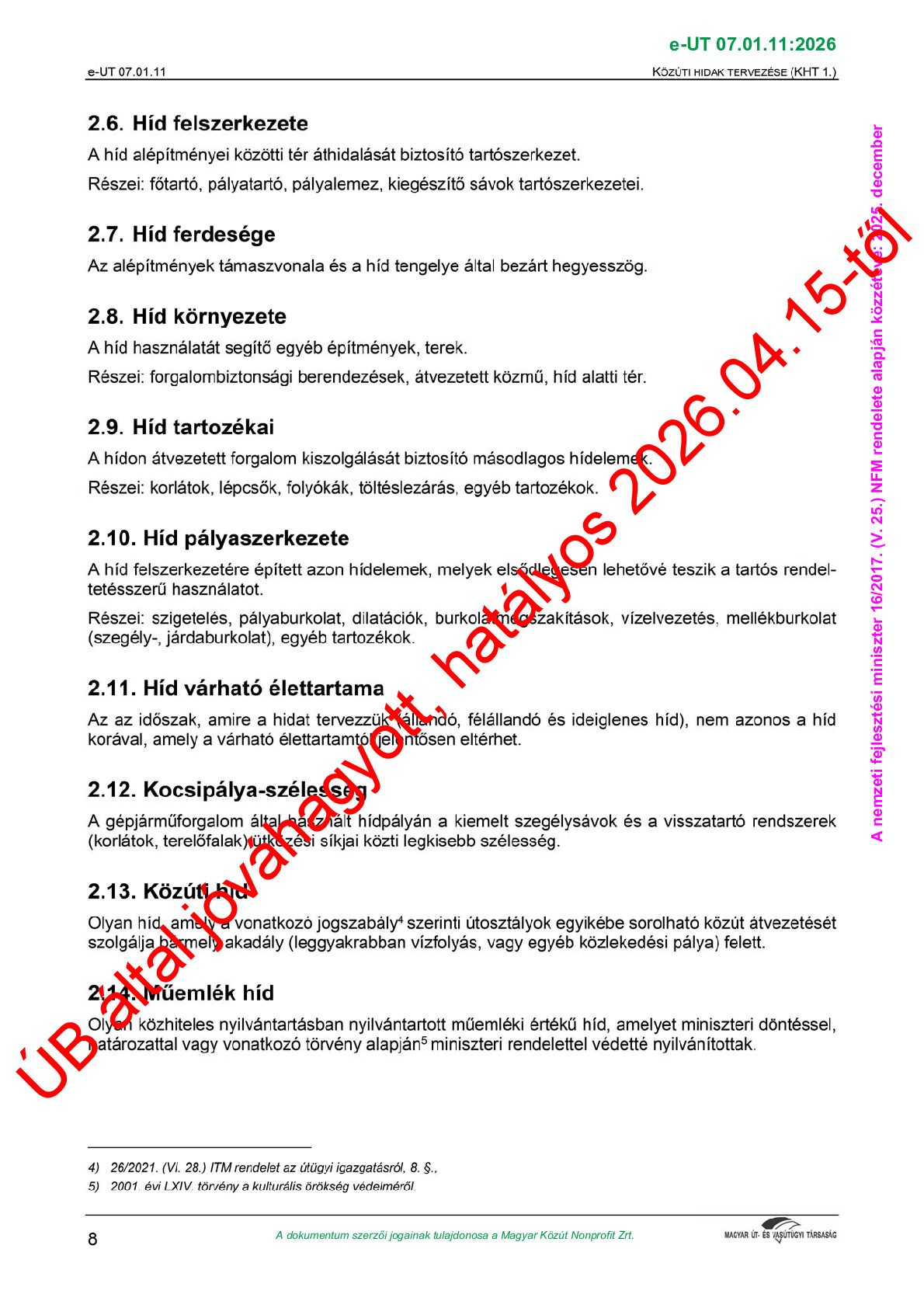 Közúti hidak tervezése (KHT 1.). A létesítés szabályai