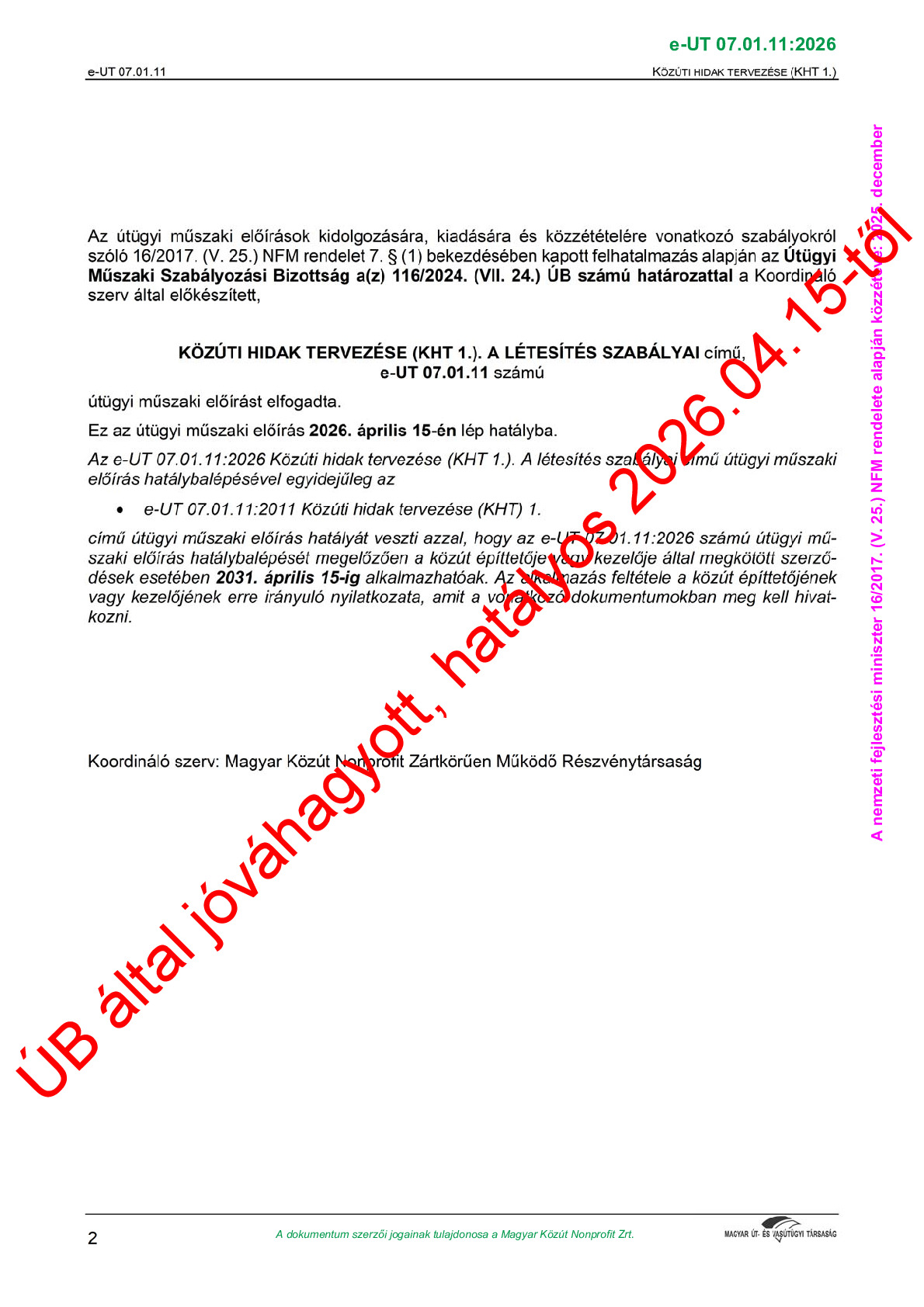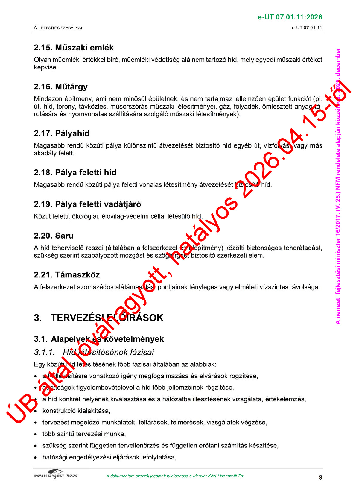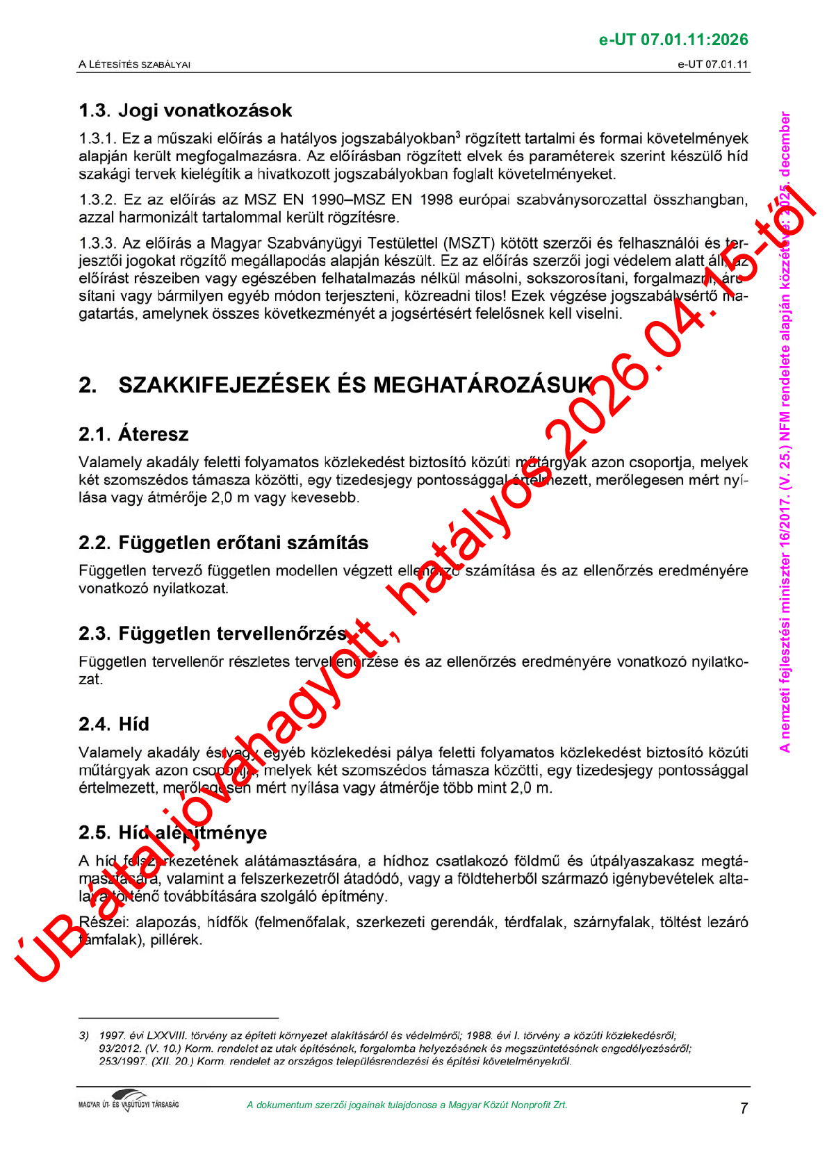 Közúti hidak tervezése (KHT 1.). A létesítés szabályai