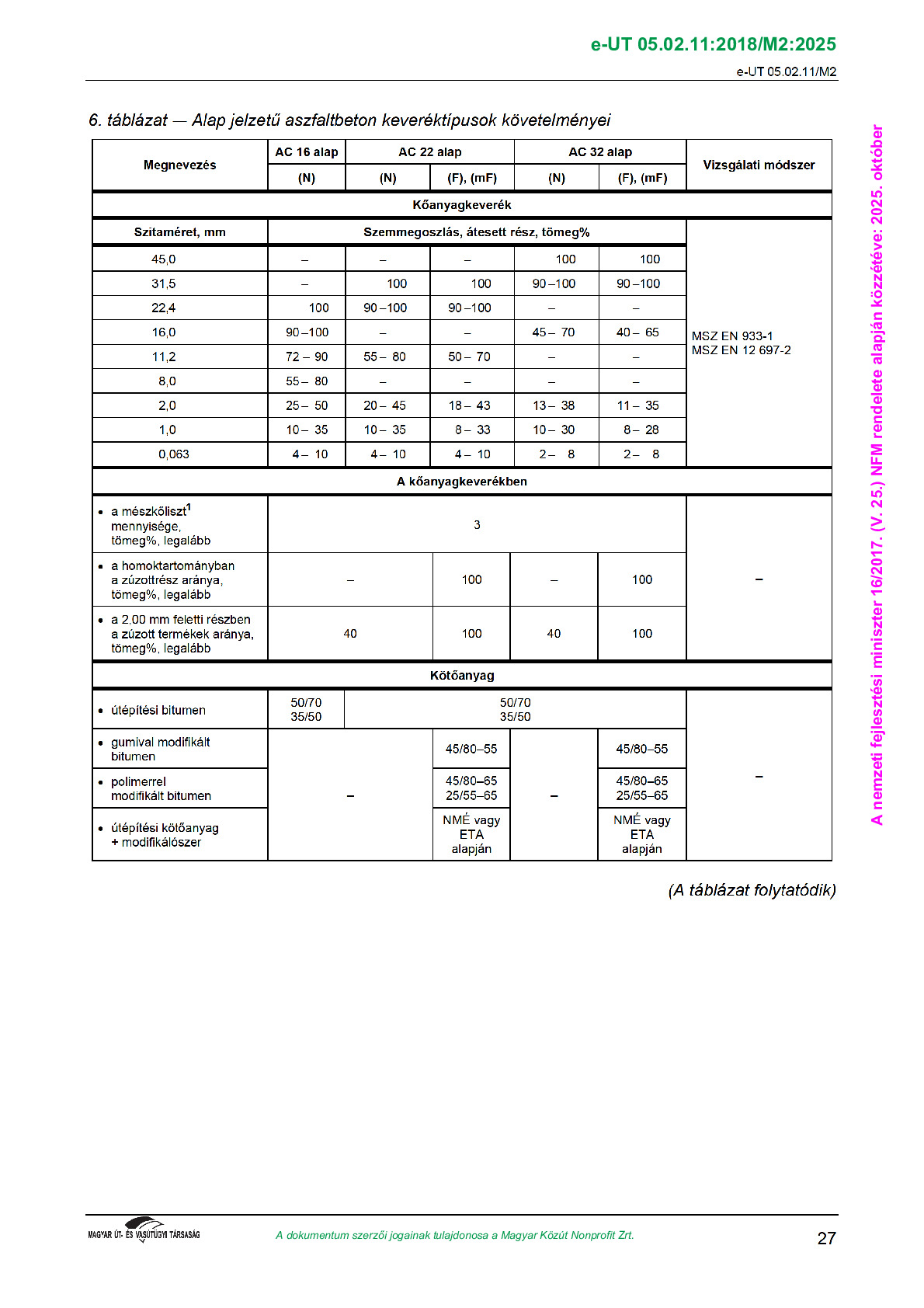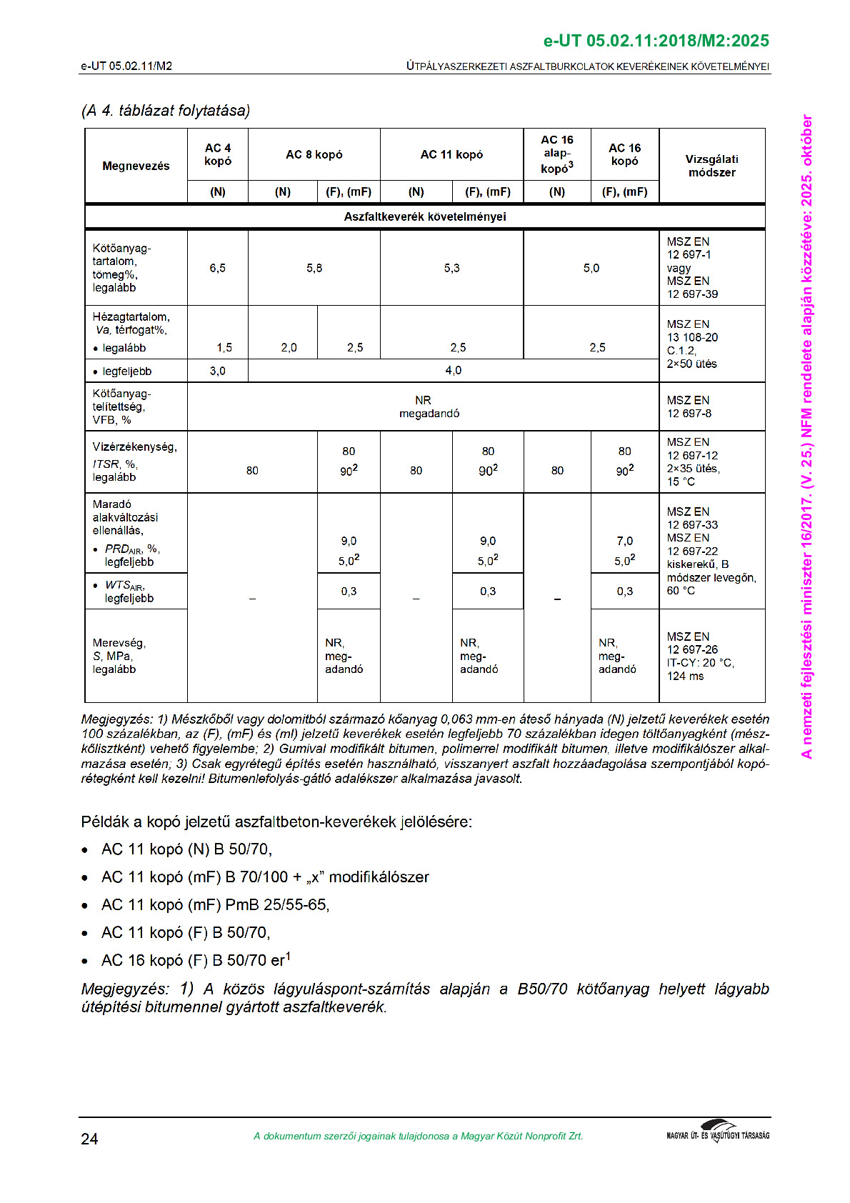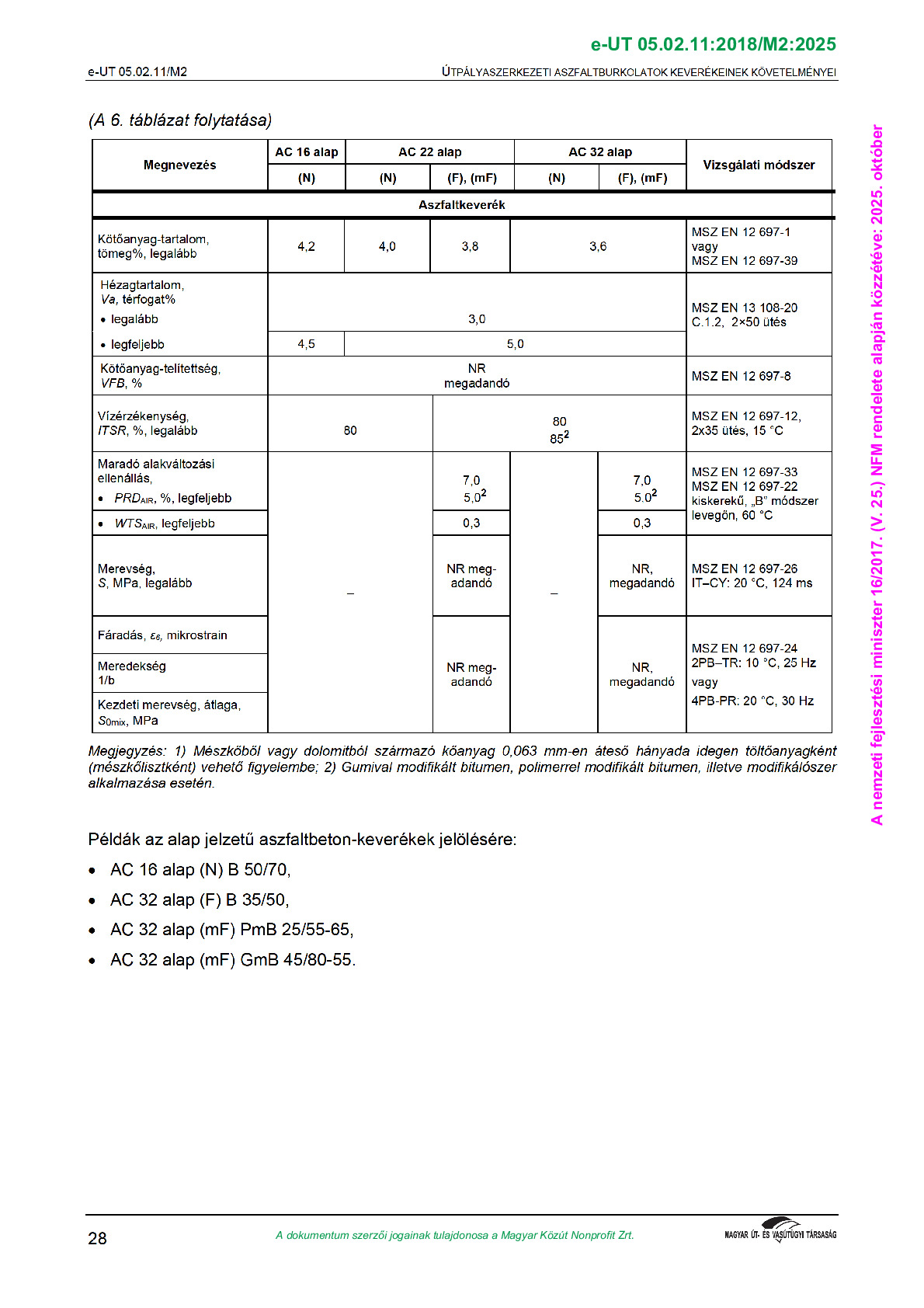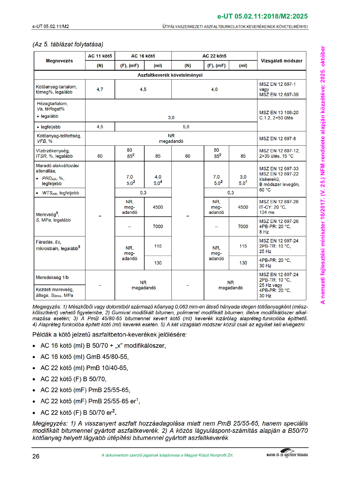 Útpályaszerkezeti aszfaltburkolatok keverékeinek követelményei