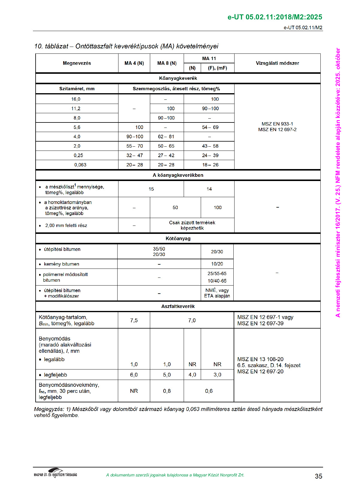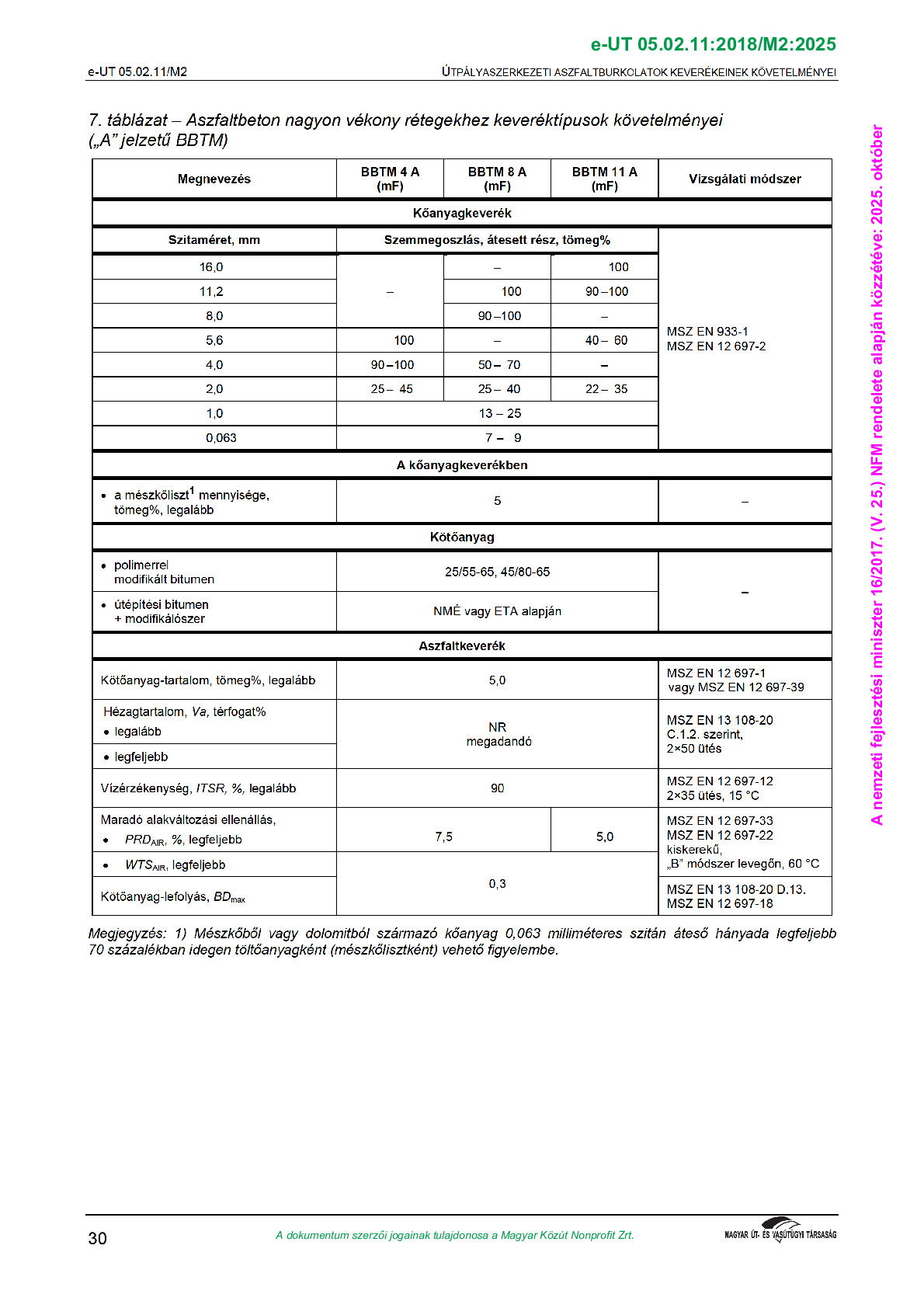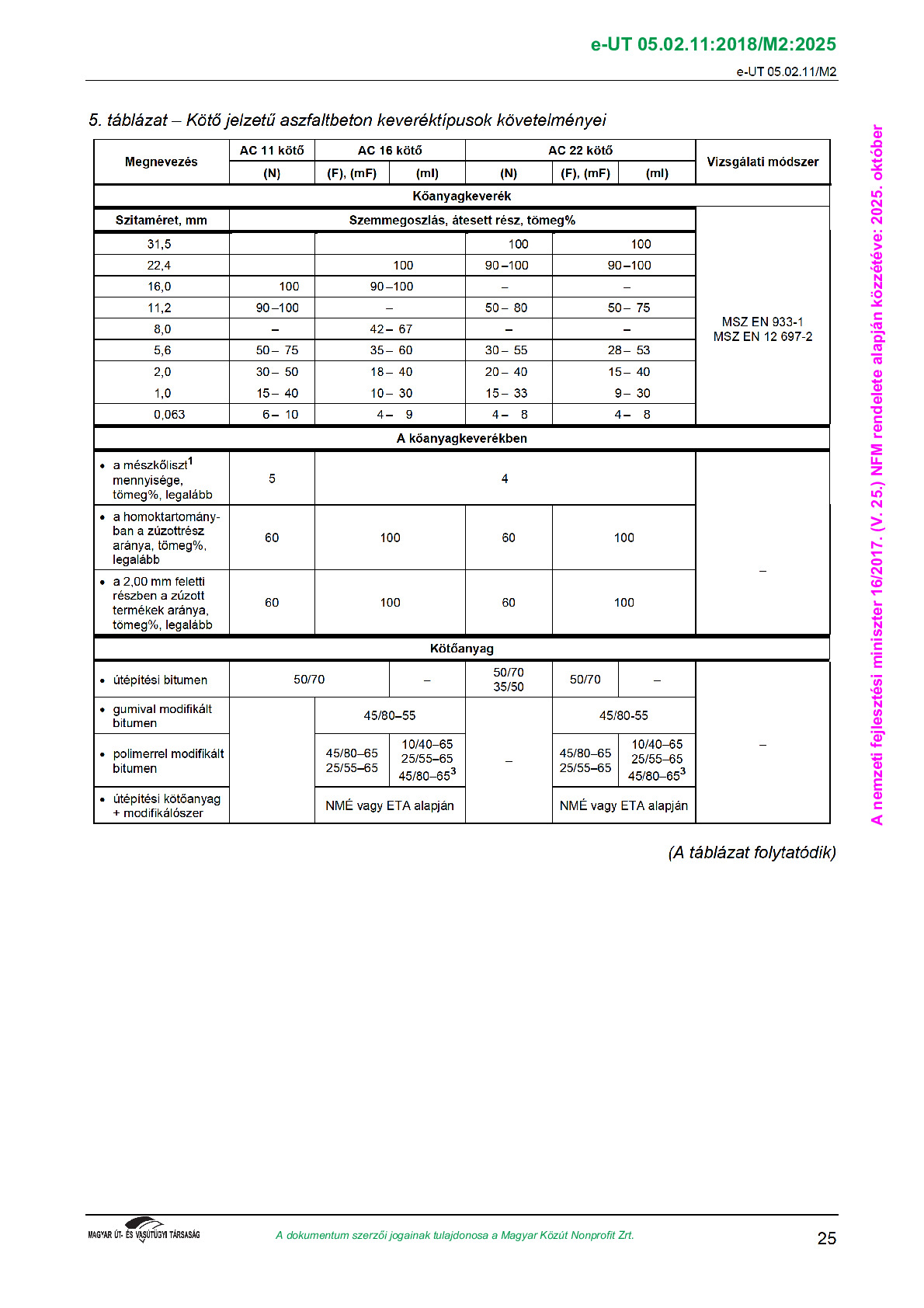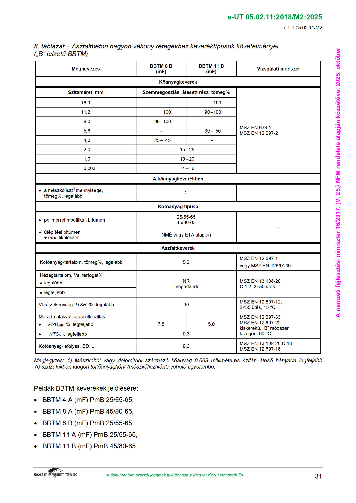 Útpályaszerkezeti aszfaltburkolatok keverékeinek követelményei