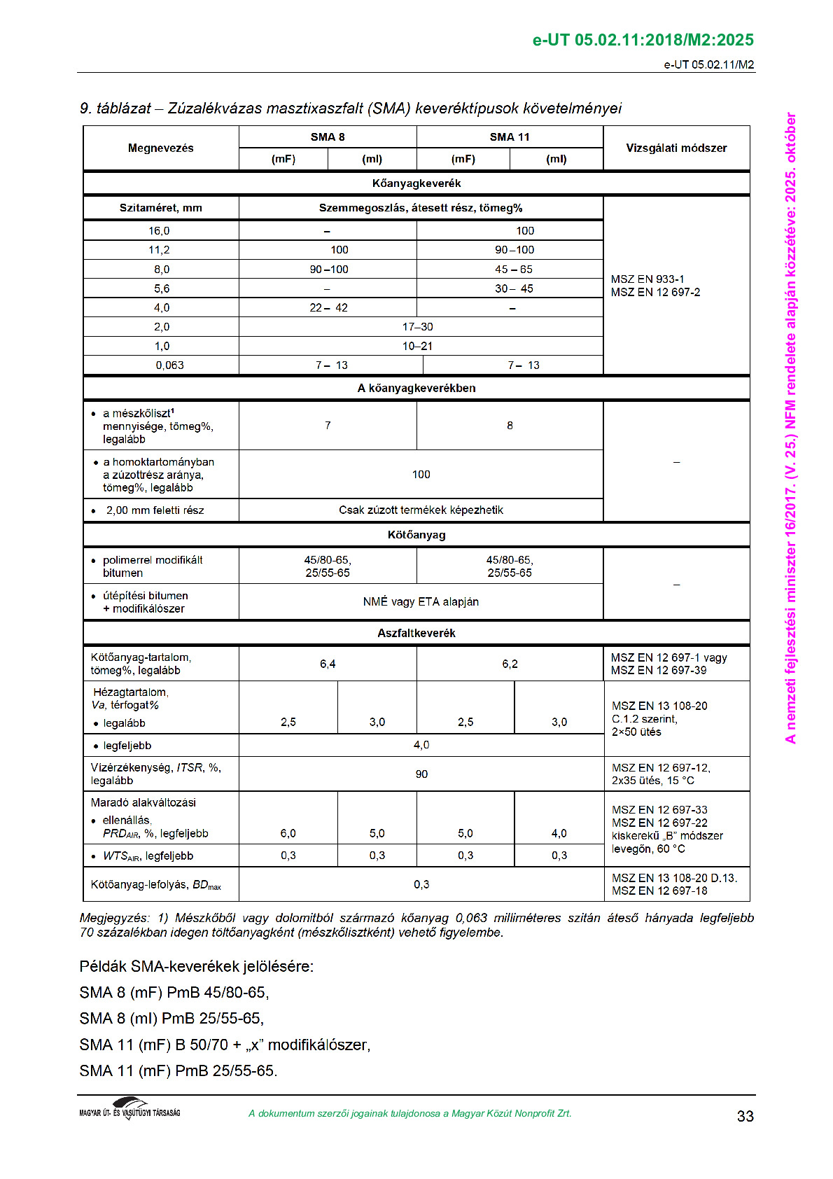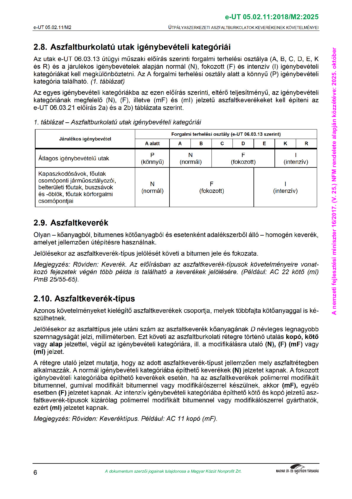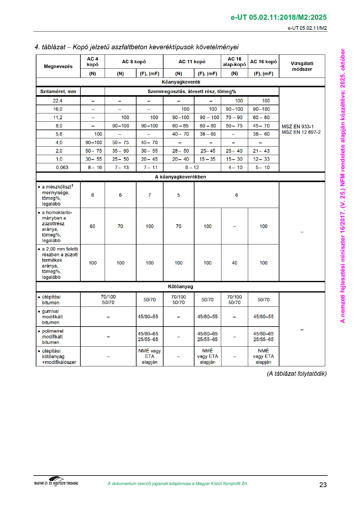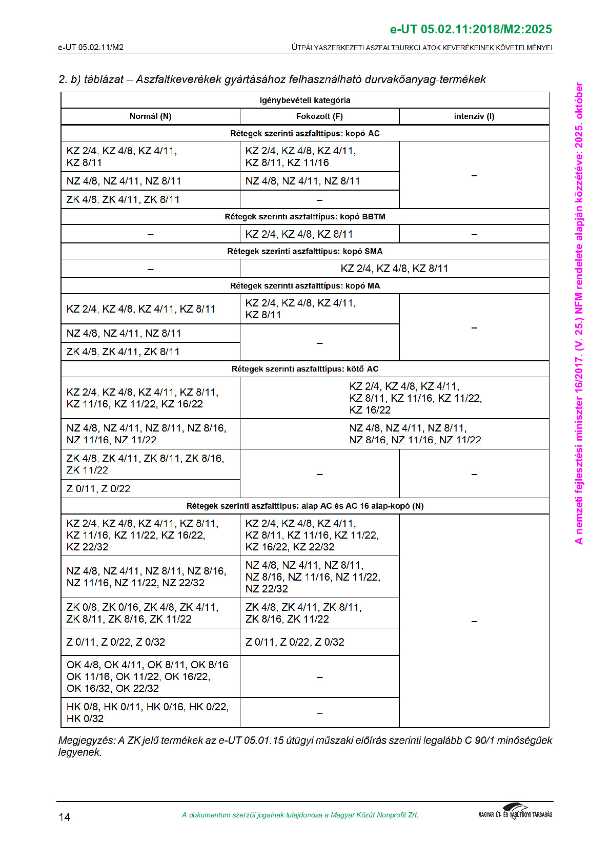 Útpályaszerkezeti aszfaltburkolatok keverékeinek követelményei