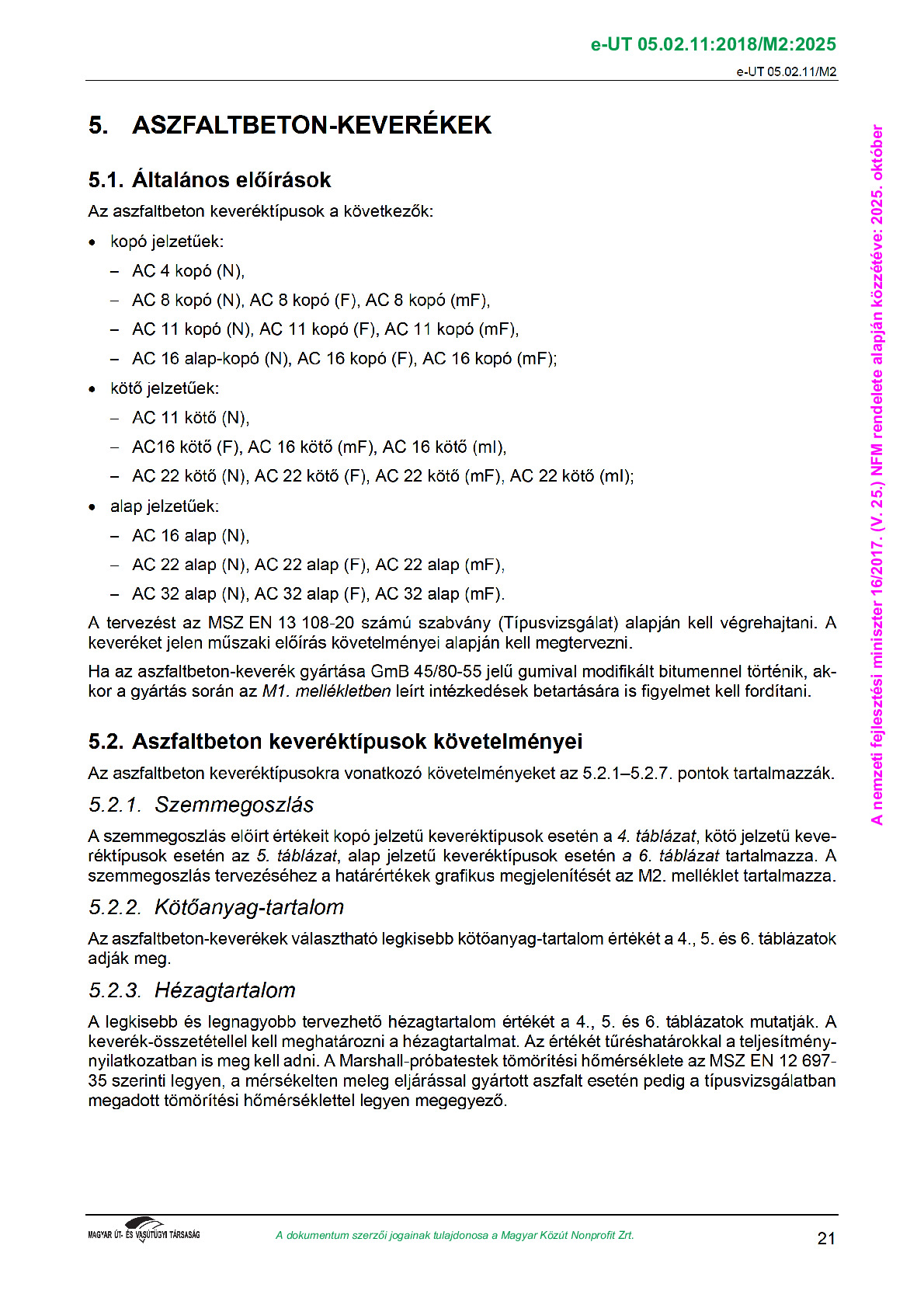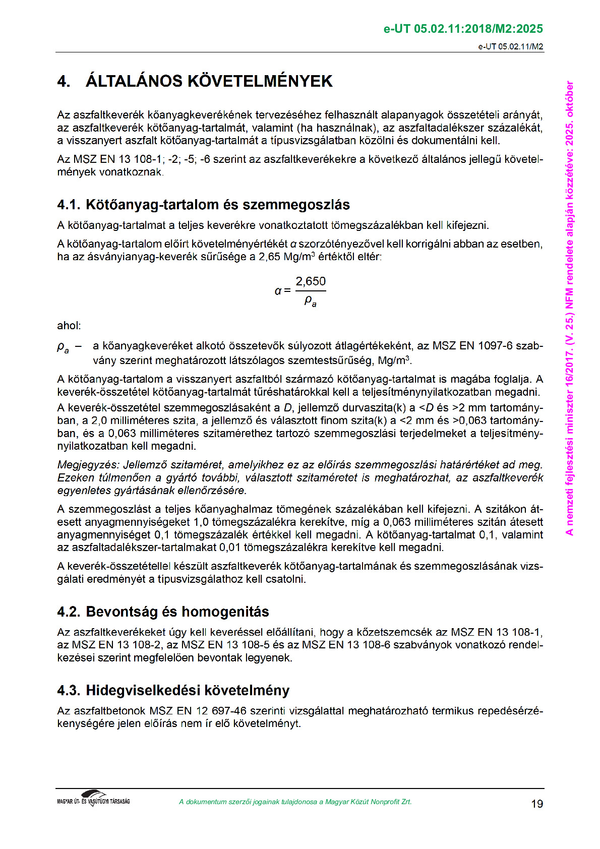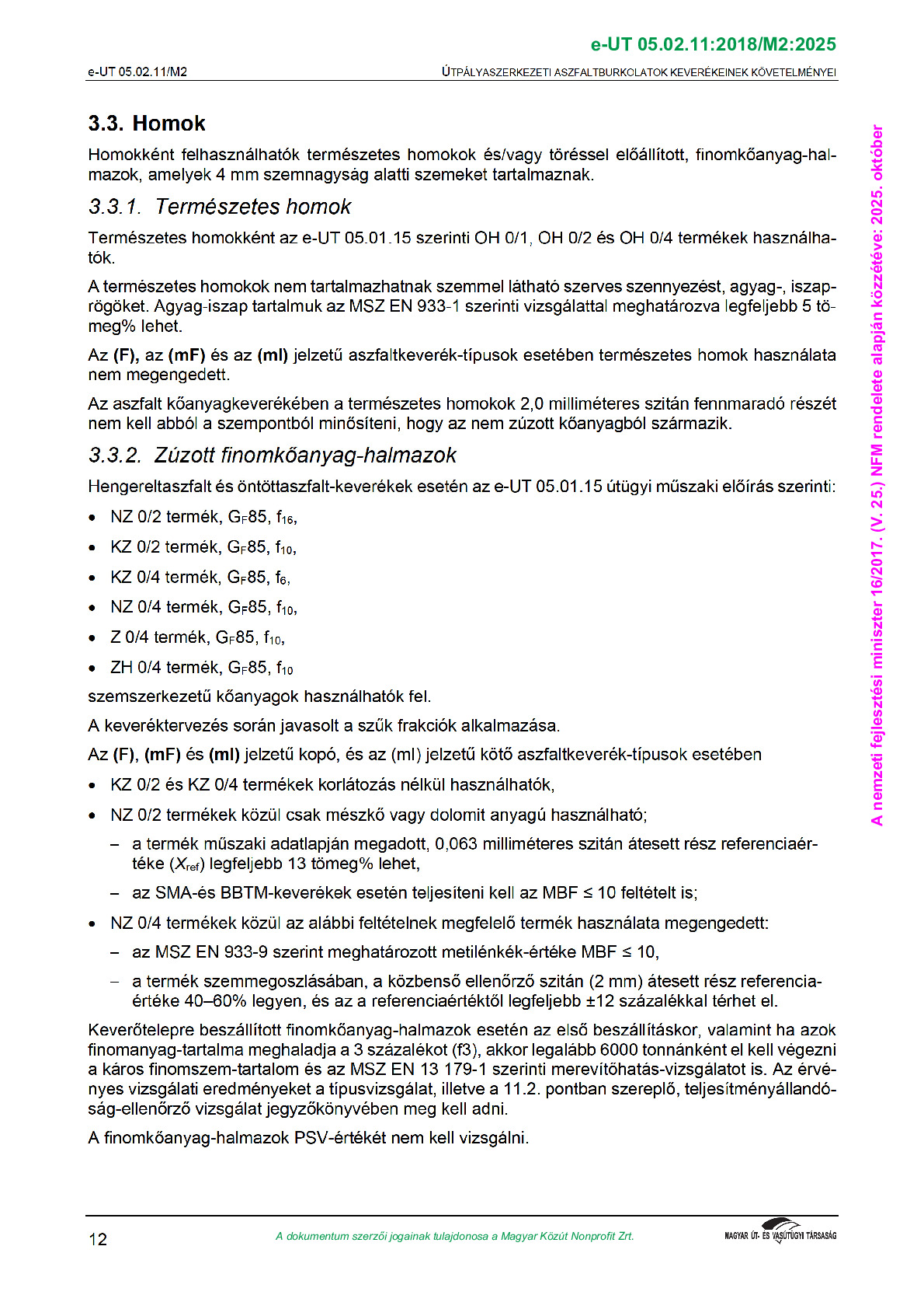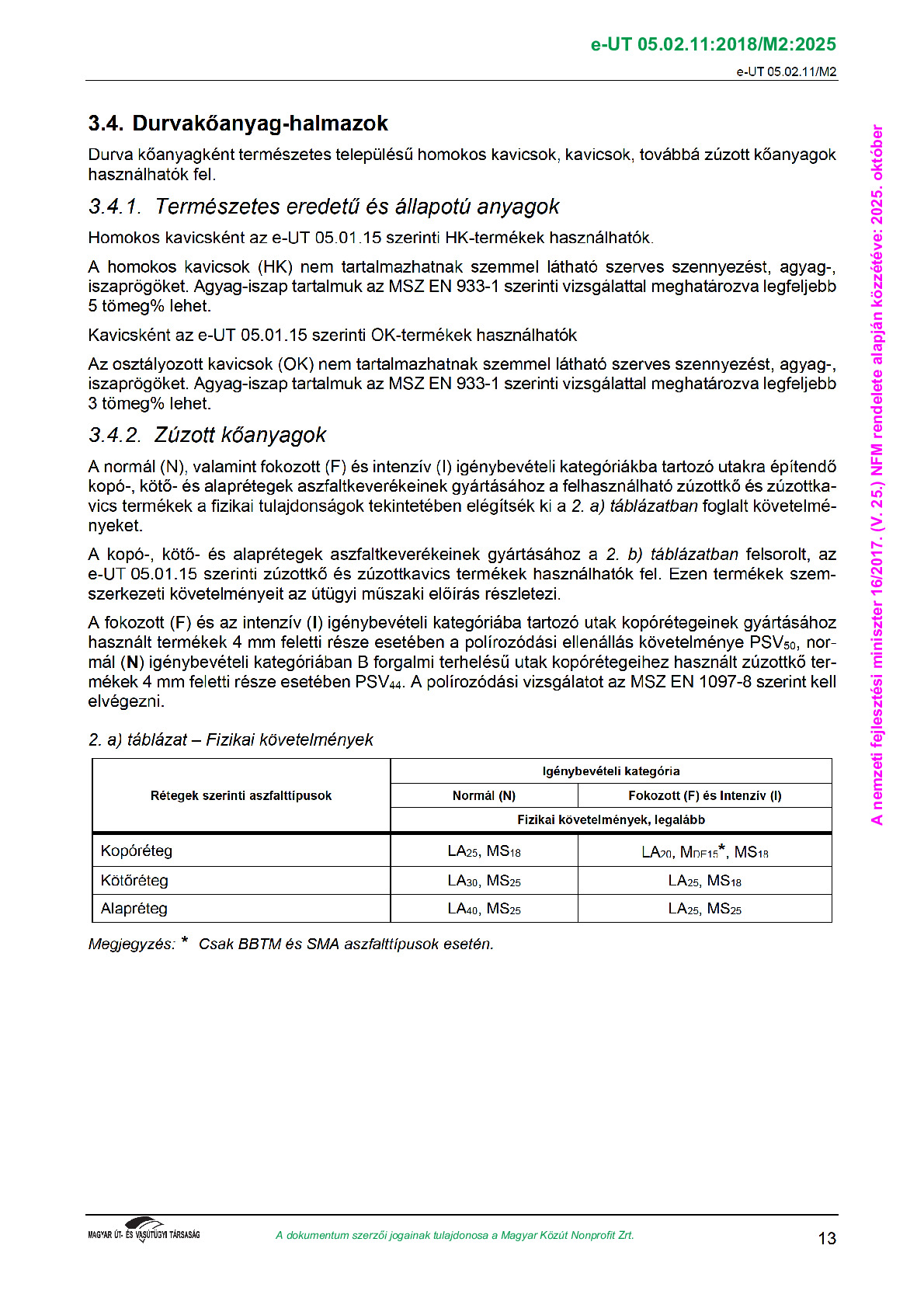 Útpályaszerkezeti aszfaltburkolatok keverékeinek követelményei