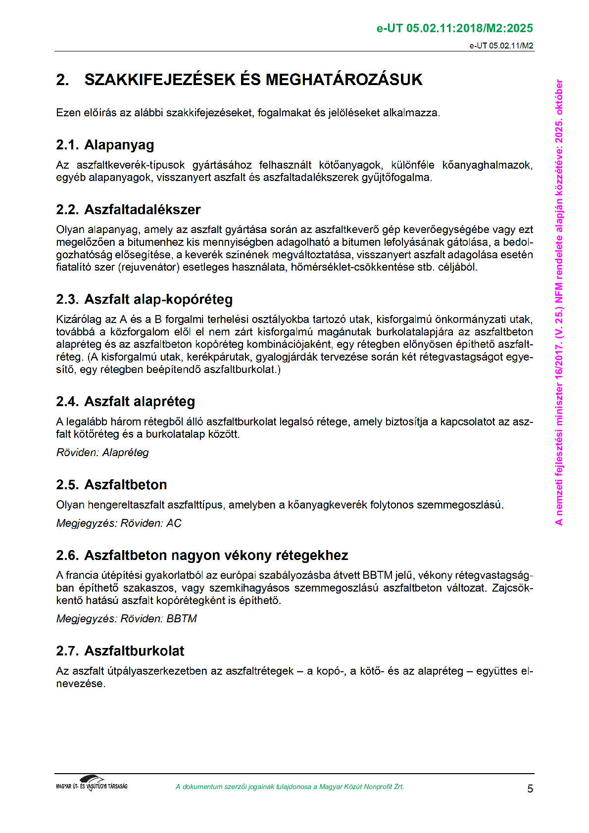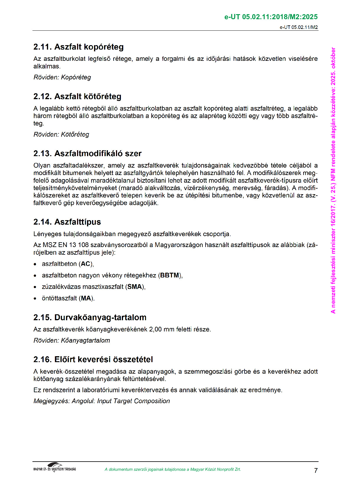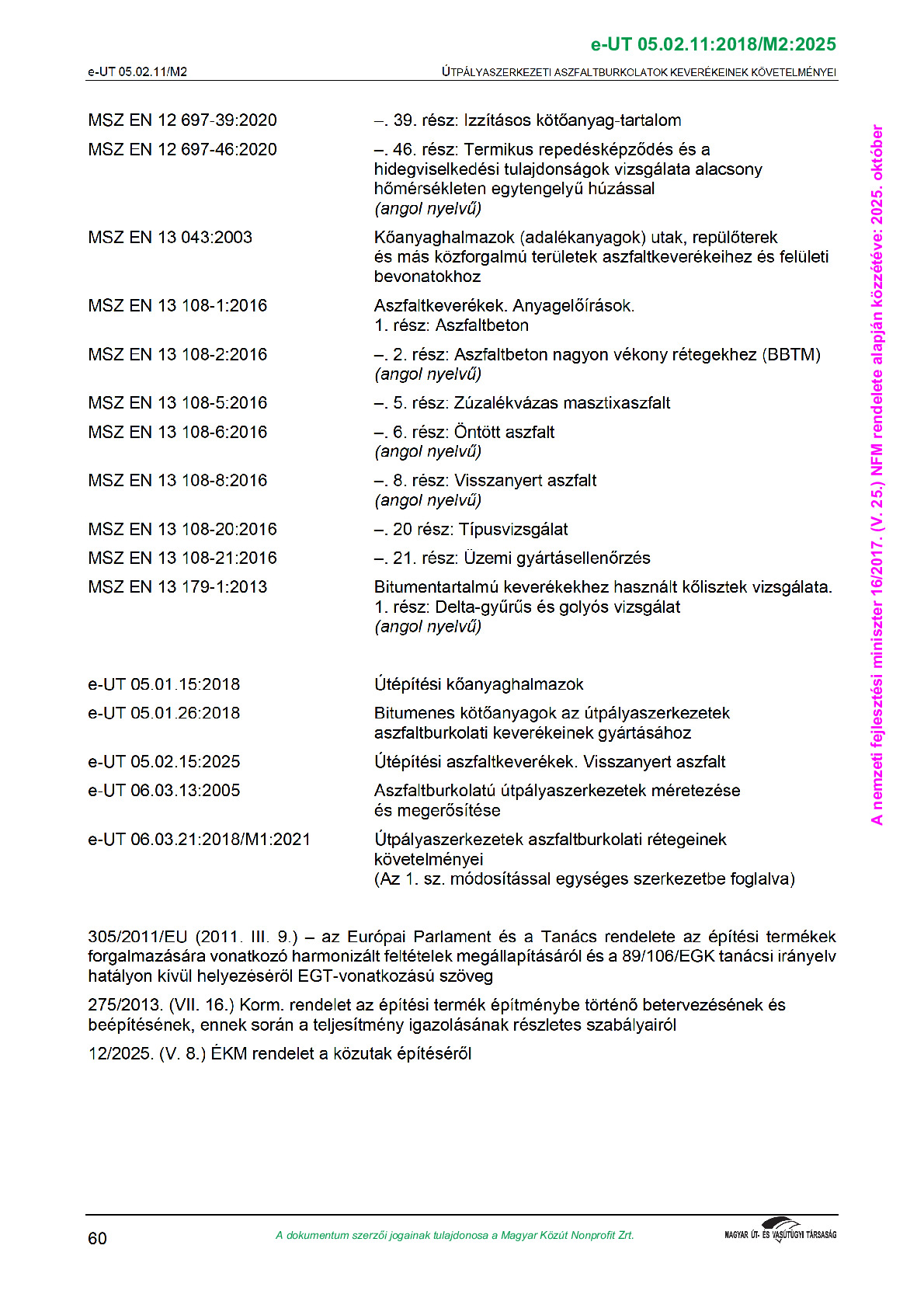 Archív, hatályt vesztet Útügyi Műszaki Előírások