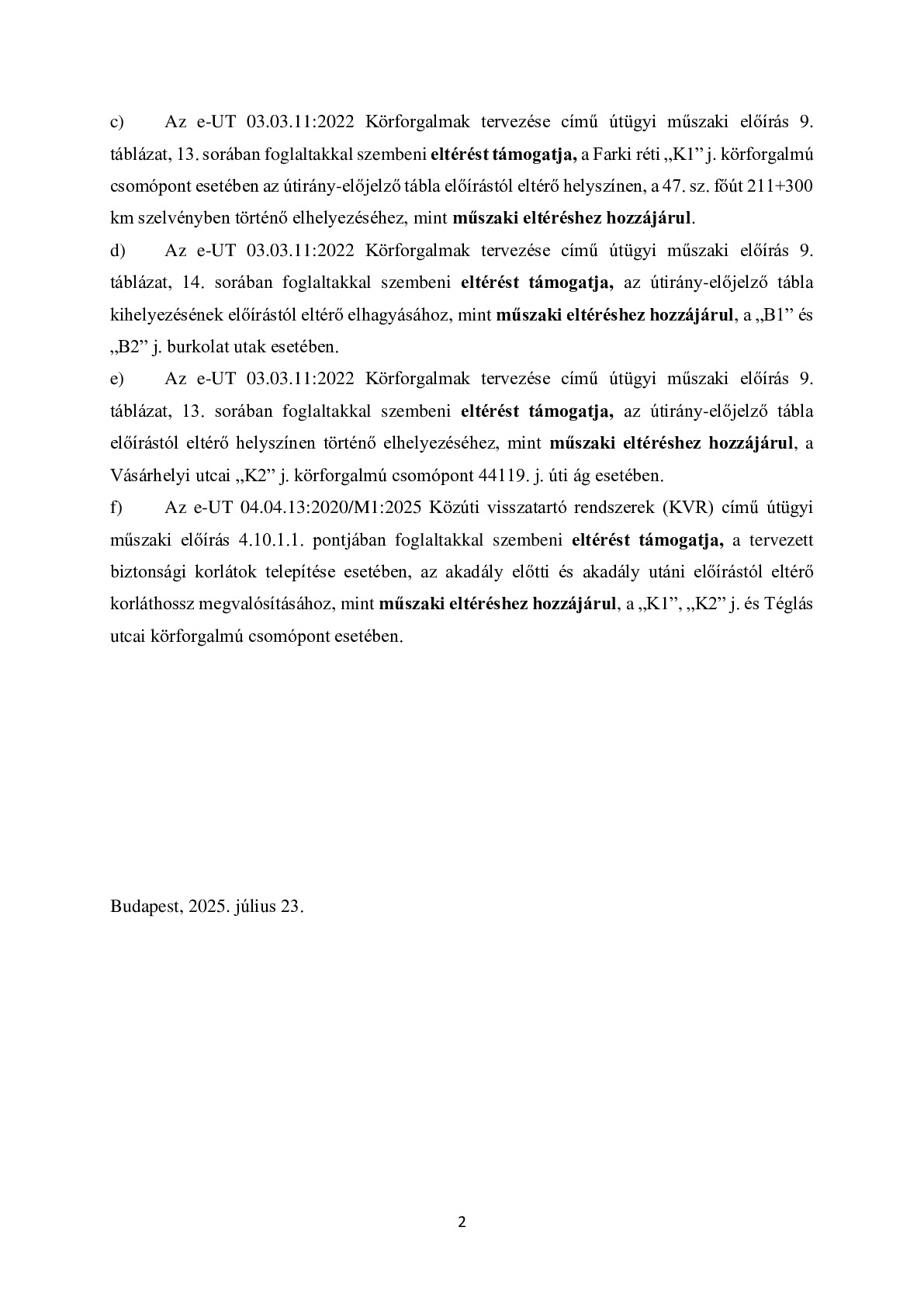 Műszaki eltérés/egyedi állásfoglalás