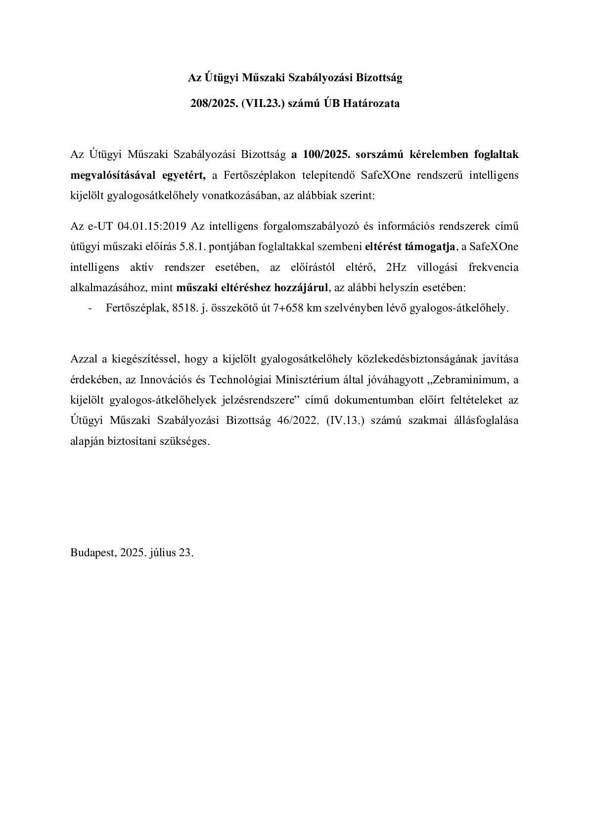 208/2025. (VII.23.) ÚB határozat - Fertőszéplakon telepítendő intelligens kijelölt gyalogosátkelőhely