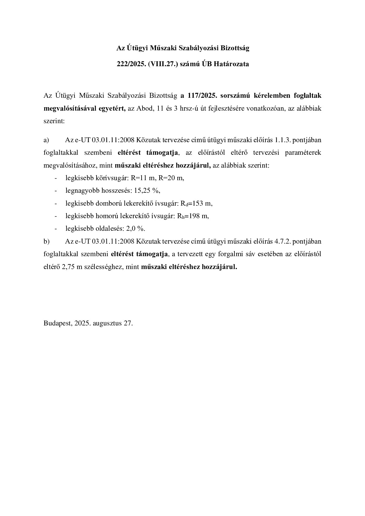 222/2025. (VIII.27.) ÚB határozat - Abod, 11 és 3 hrsz-ú út fejlesztése