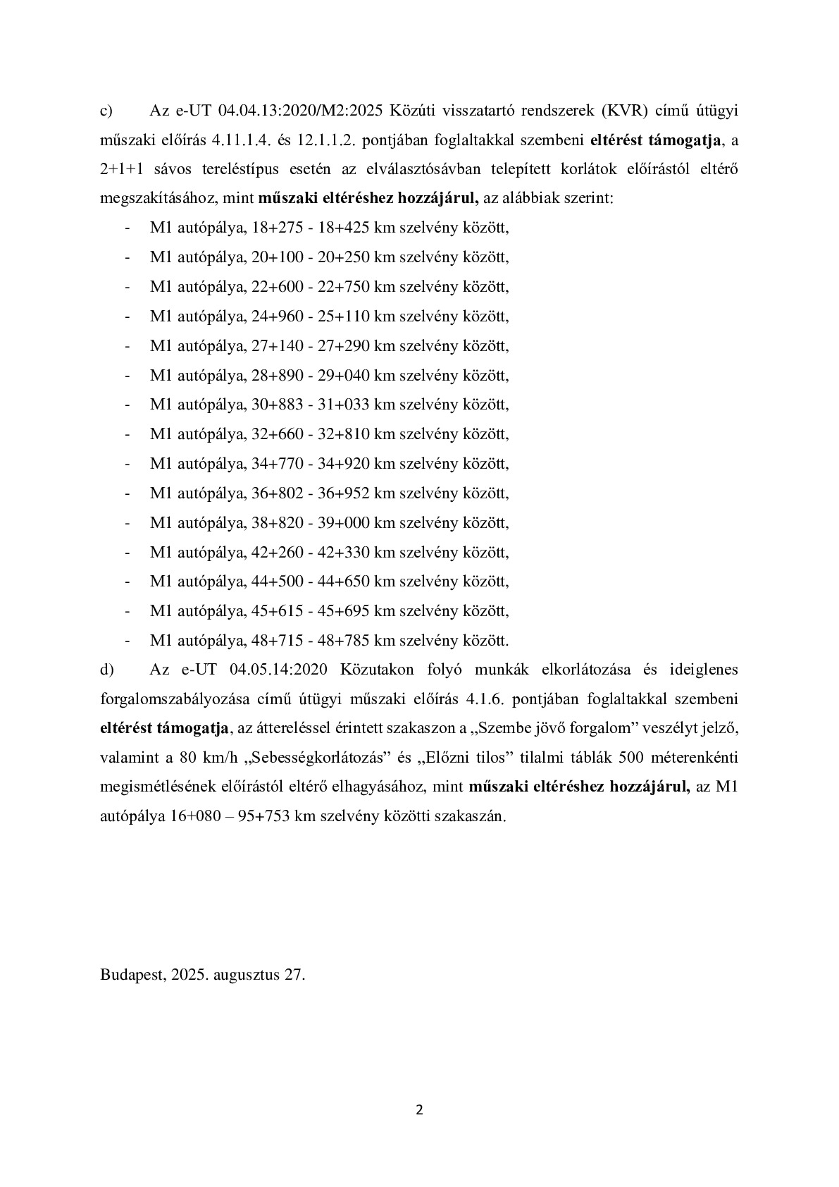 223/2025. (VIII.27.) ÚB határozat - M1 autópálya 2x3 sávra történő bővítéshez kapcsolódó 2+1+1 sávos ideiglenes forgalomterelés