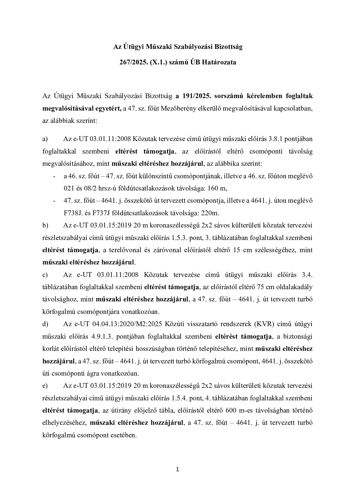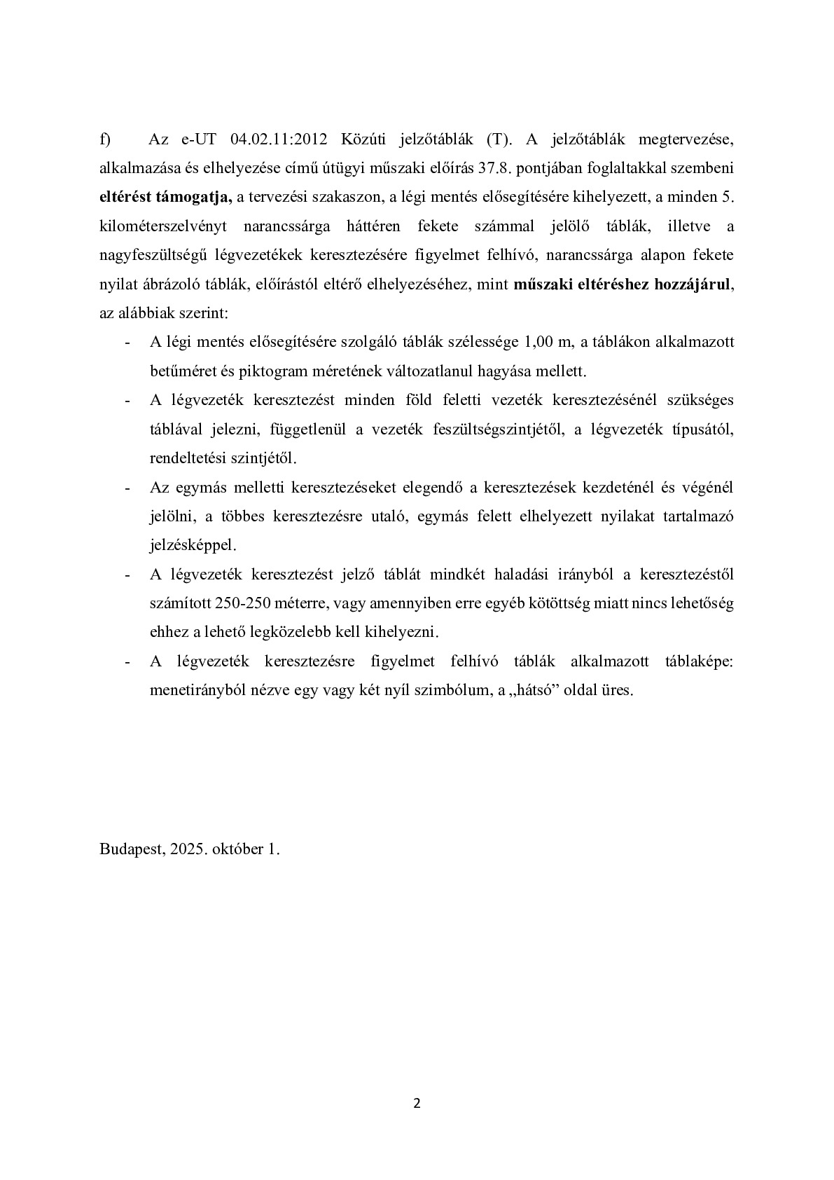 e-UT 03.01.11:2008 Közutak tervezése, e-UT 03.01.15:2019 20 m koronaszélességű 2x2 sávos külterületi közutak tervezési részletszabályai, e-UT 04.04.13:2020/M2:2025 Közúti visszatartó rendszerek (KVR), e-UT 04.02.11:2012 Közúti jelzőtáblák (T). A jelzőtáblák megtervezése, alkalmazása és elhelyezése
