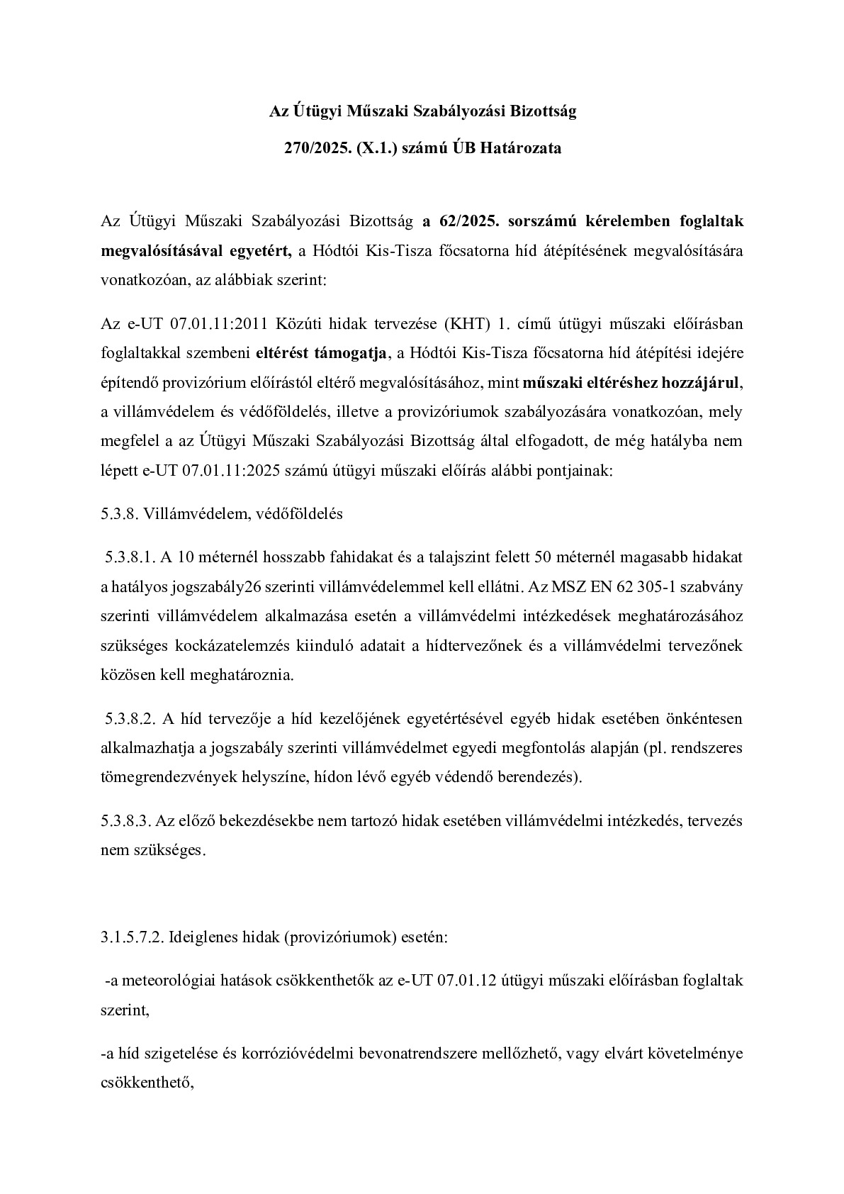 270/2025. (X.1.) ÚB határozat - Hódtói Kis-Tisza főcsatorna híd átépítése