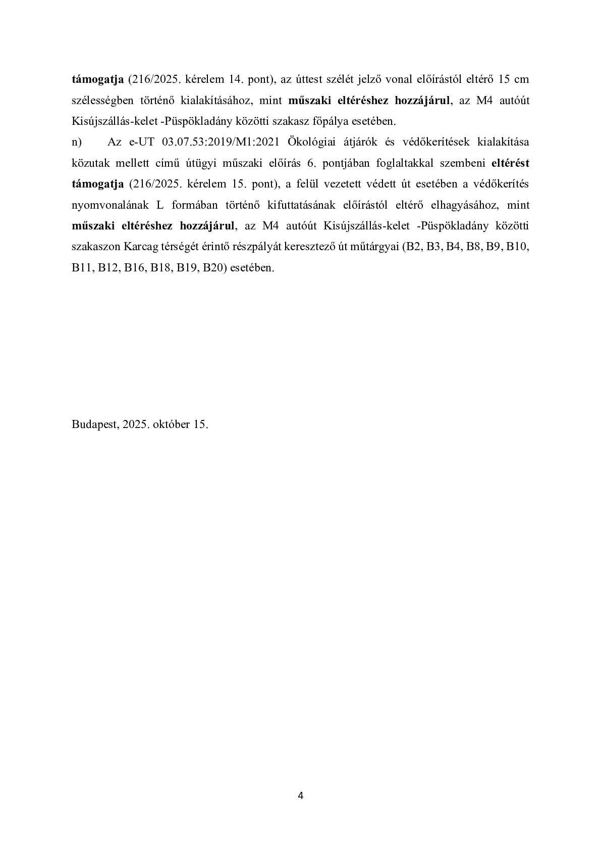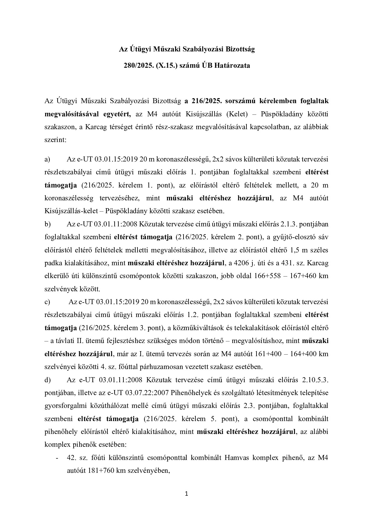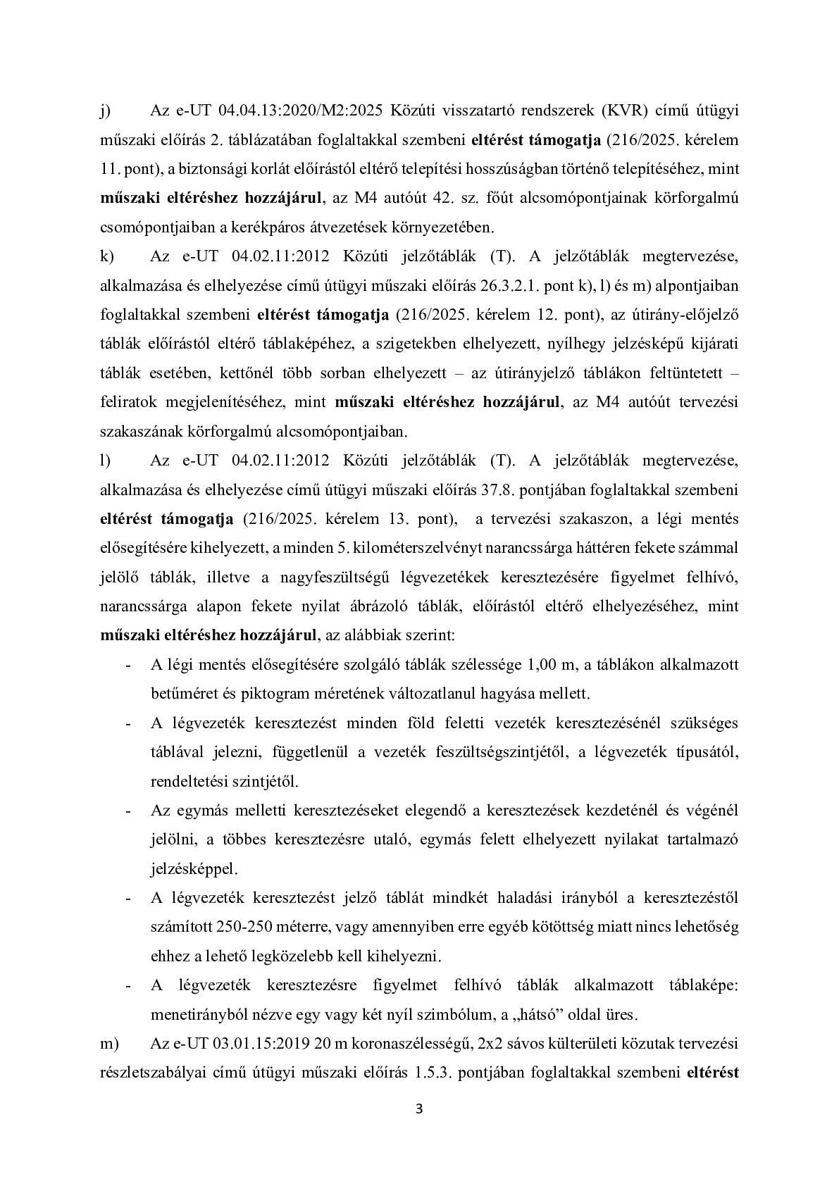 e-UT 03.01.15:2019 20 m koronaszélességű, 2x2 sávos külterületi közutak tervezési részletszabályai, e-UT 03.01.11:2008 Közutak tervezése, e-UT 04.02.11:2012 Közúti jelzőtáblák (T) A jelzőtáblák megtervezése, alkalmazása és elhelyezése című, e-UT 04.04.13:2020/M2:2025 Közúti visszatartó rendszerek (KVR), e-UT 03.07.53:2019/M1:2021 Ökológiai átjárók és védőkerítések kialakítása közutak mellett