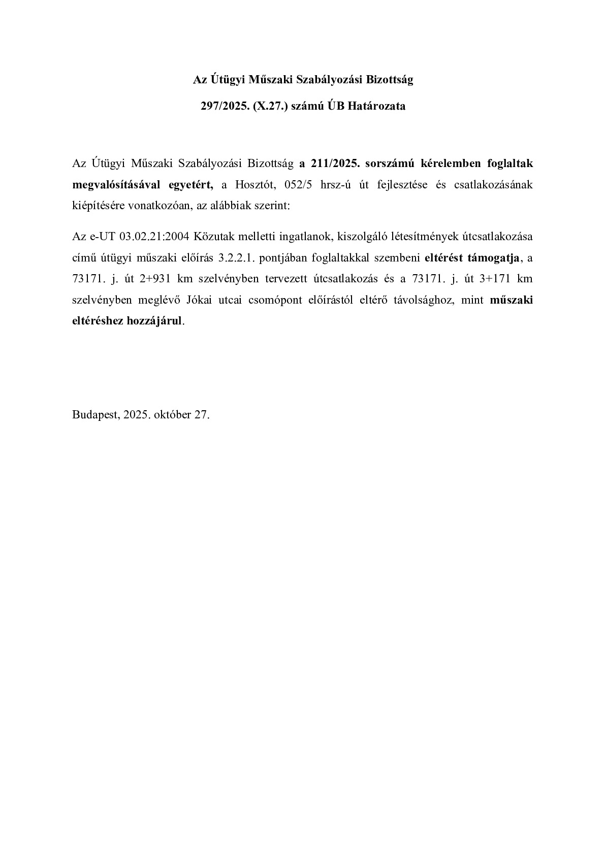 297/2025. (X.27.) ÚB határozat - Hosztót, 052/5 hrsz-ú út fejlesztése és csatlakozásának kiépítése