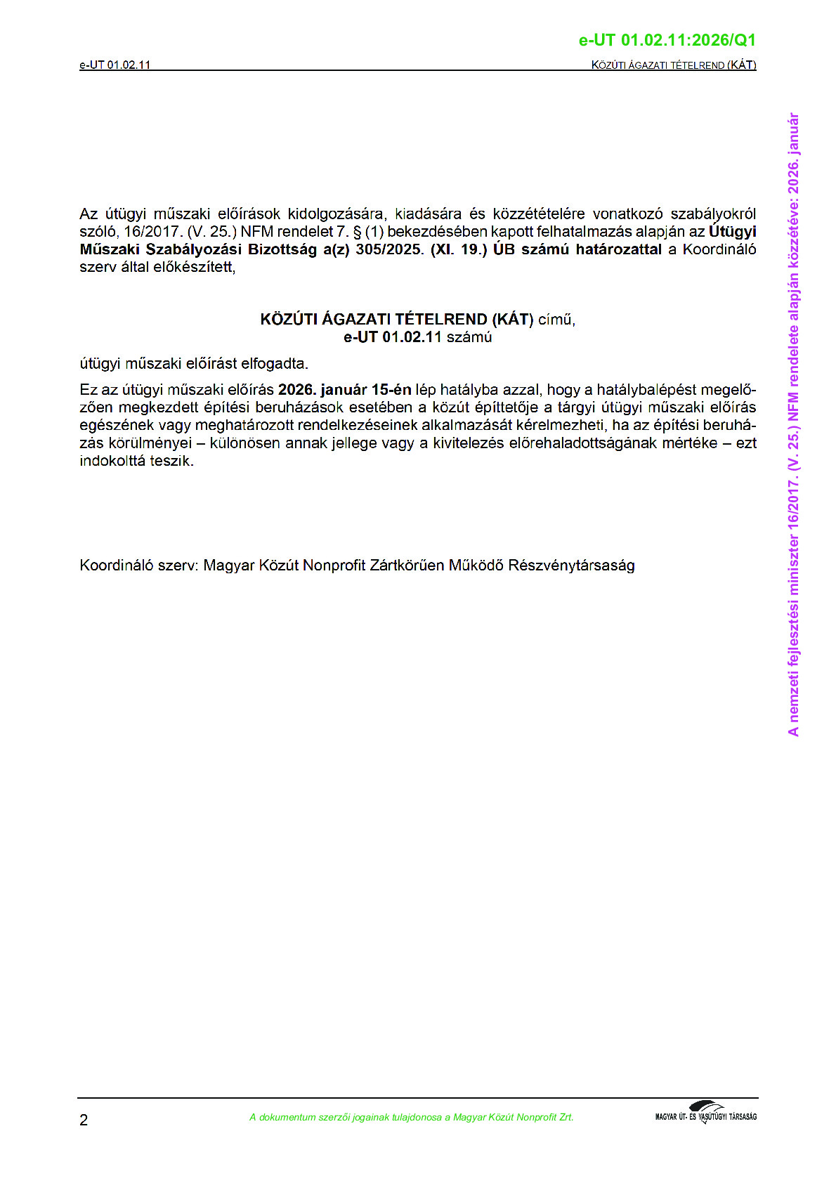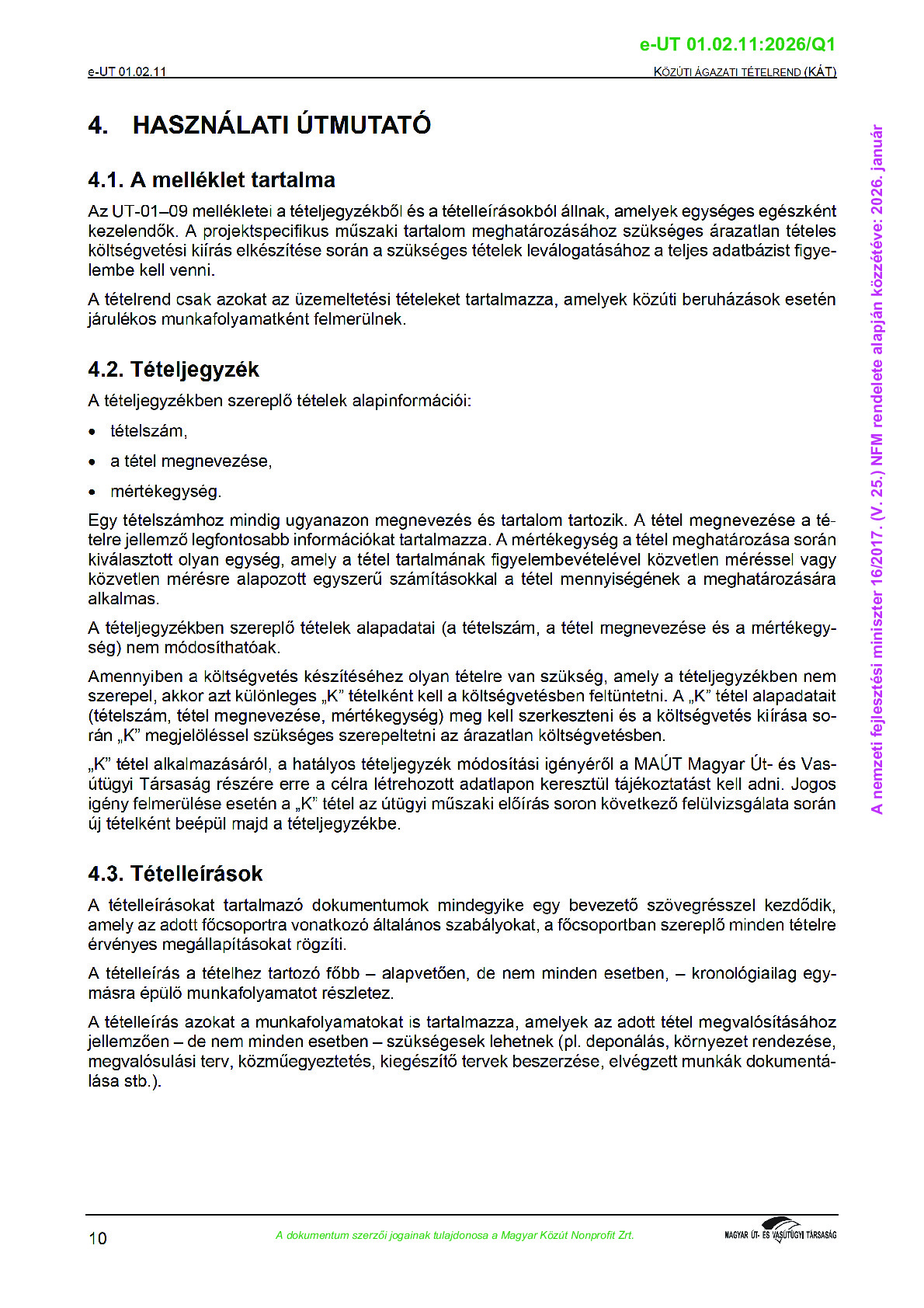 Hatálybalépés előtti útügyi műszaki előírások