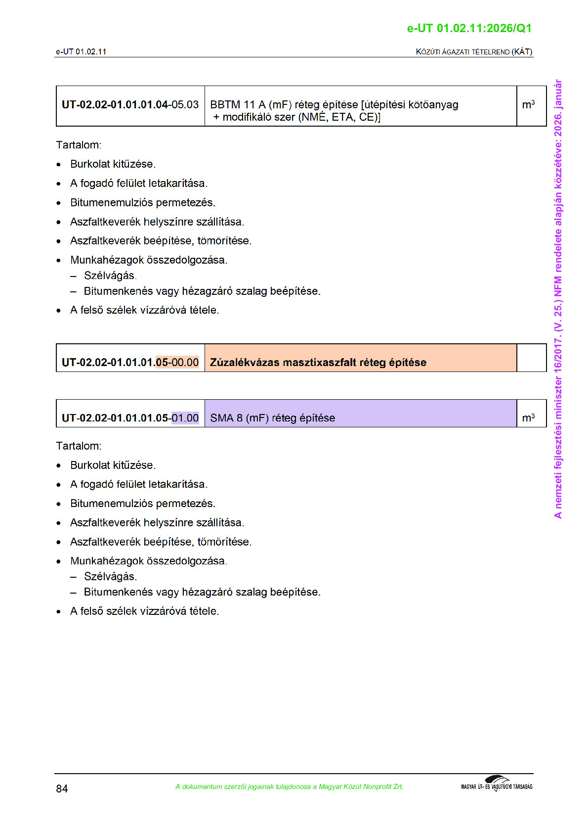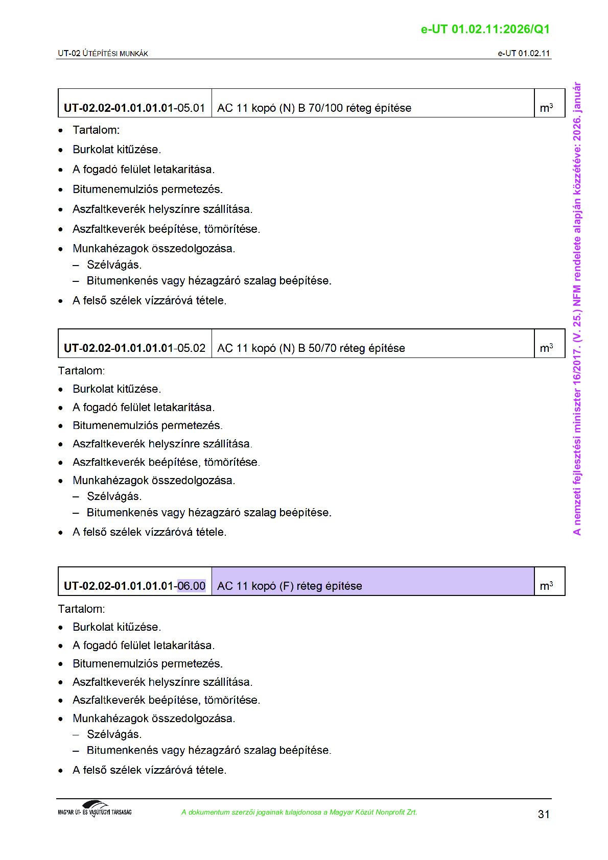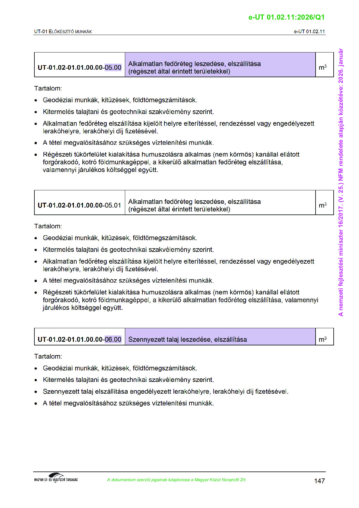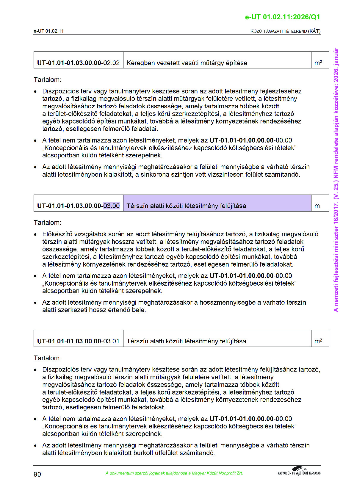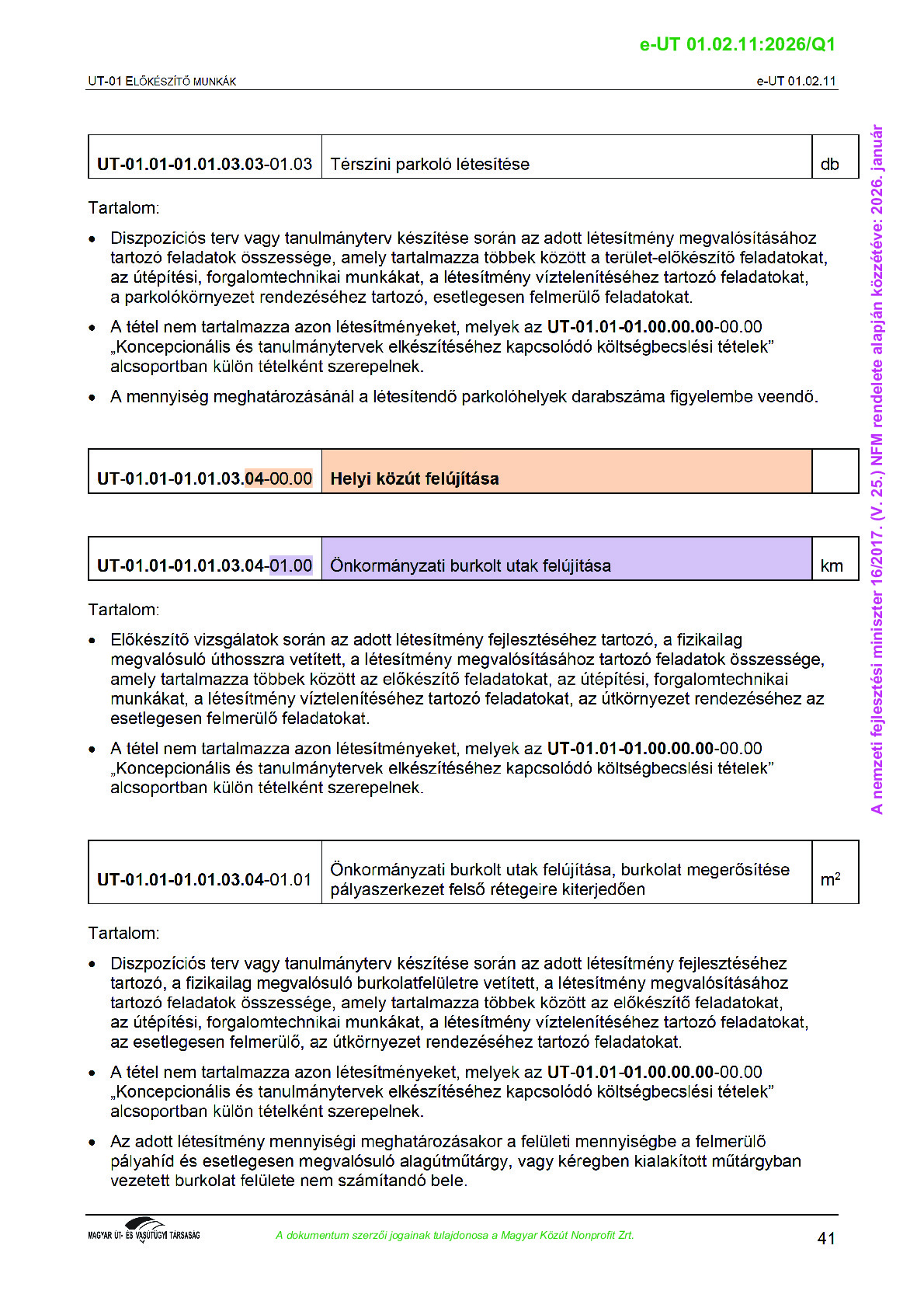 Archív, hatályt vesztet Útügyi Műszaki Előírások