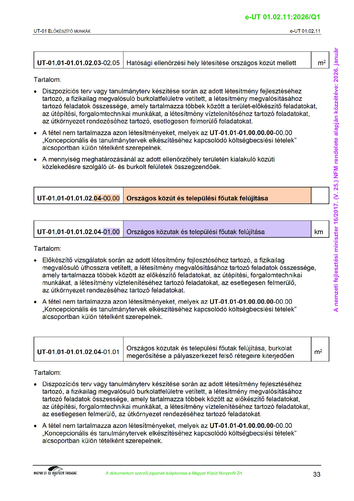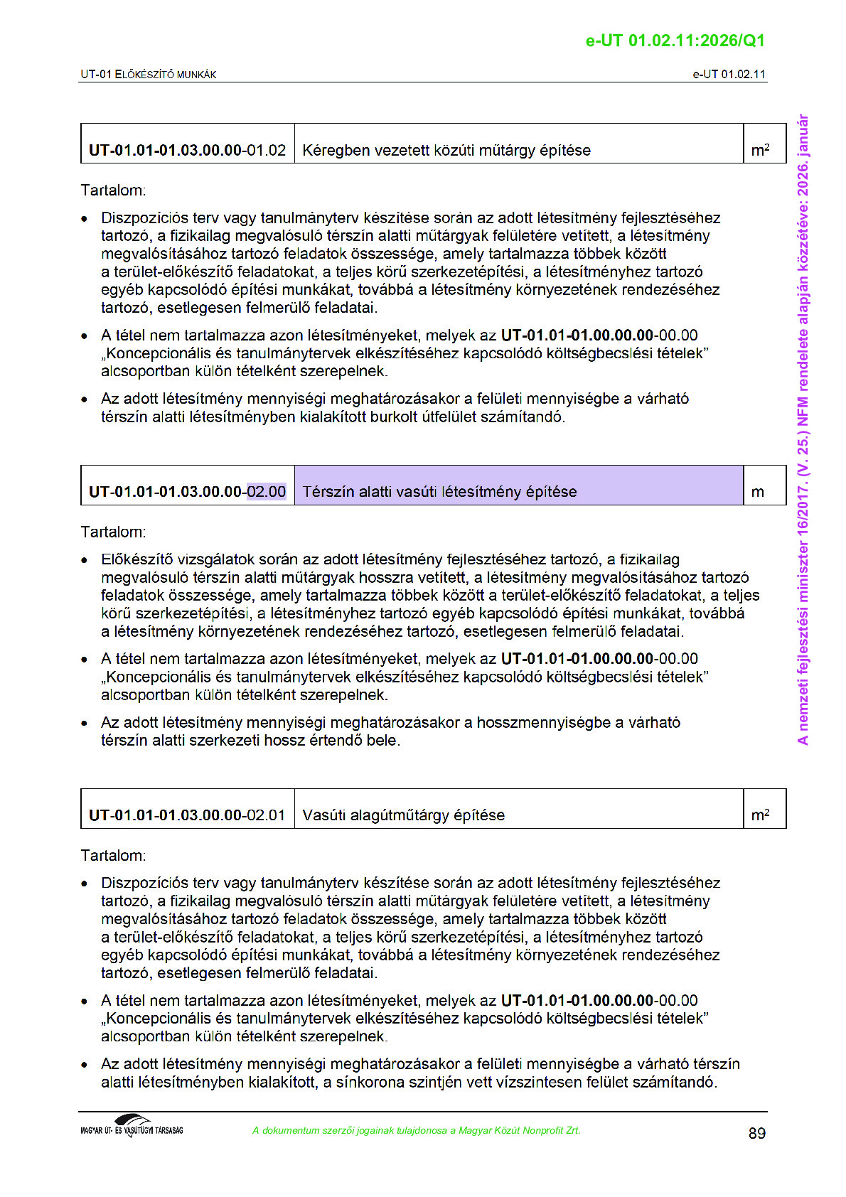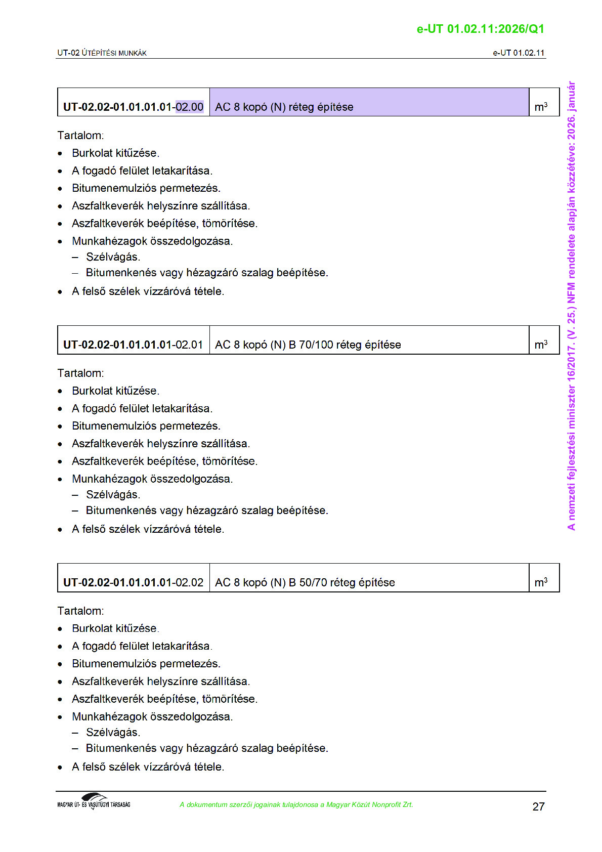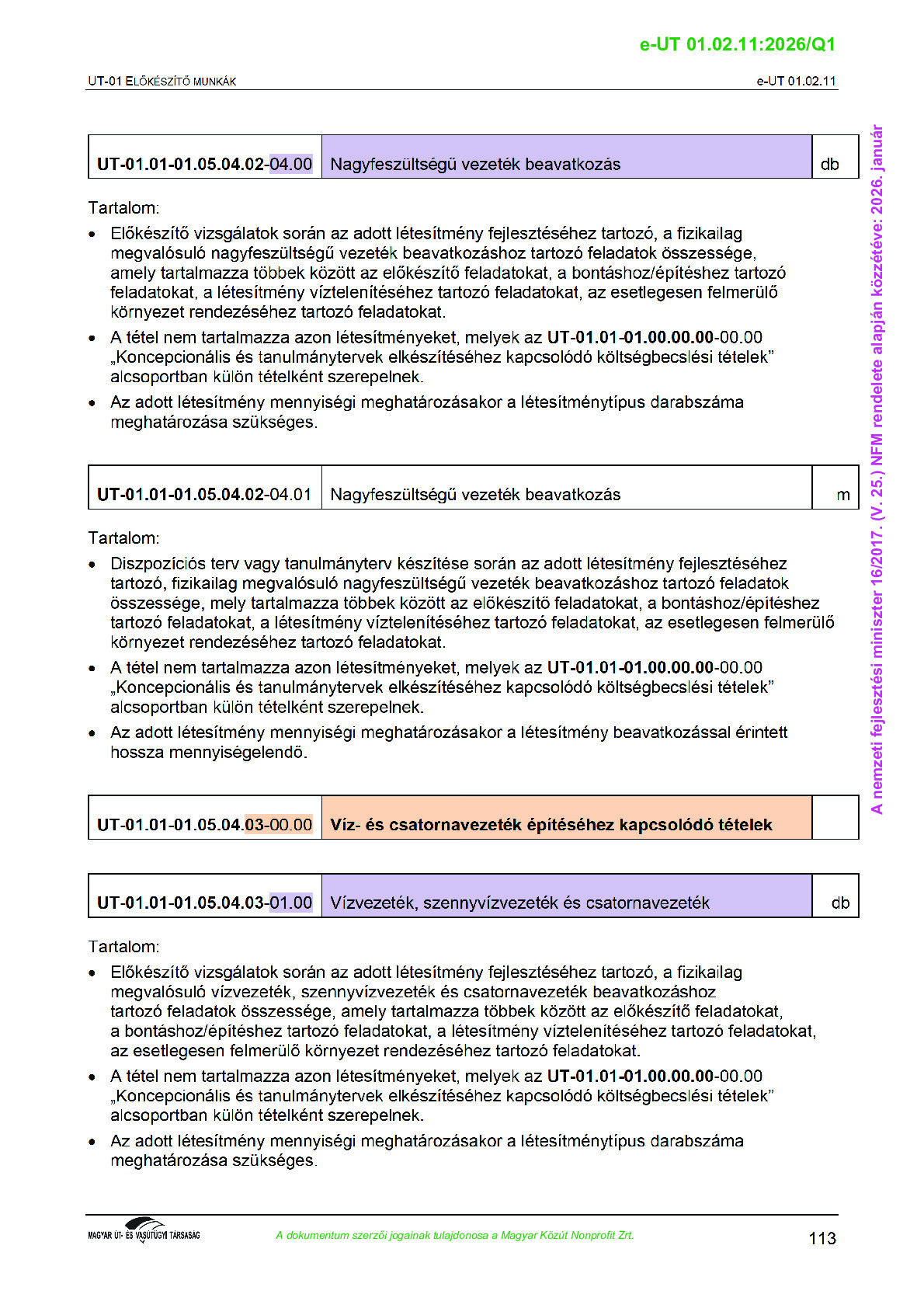 Archív, hatályt vesztet Útügyi Műszaki Előírások