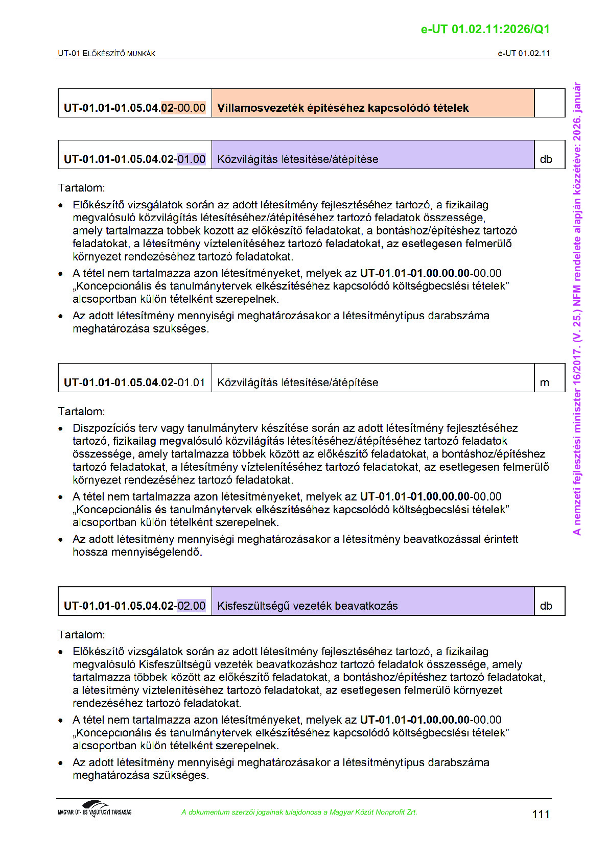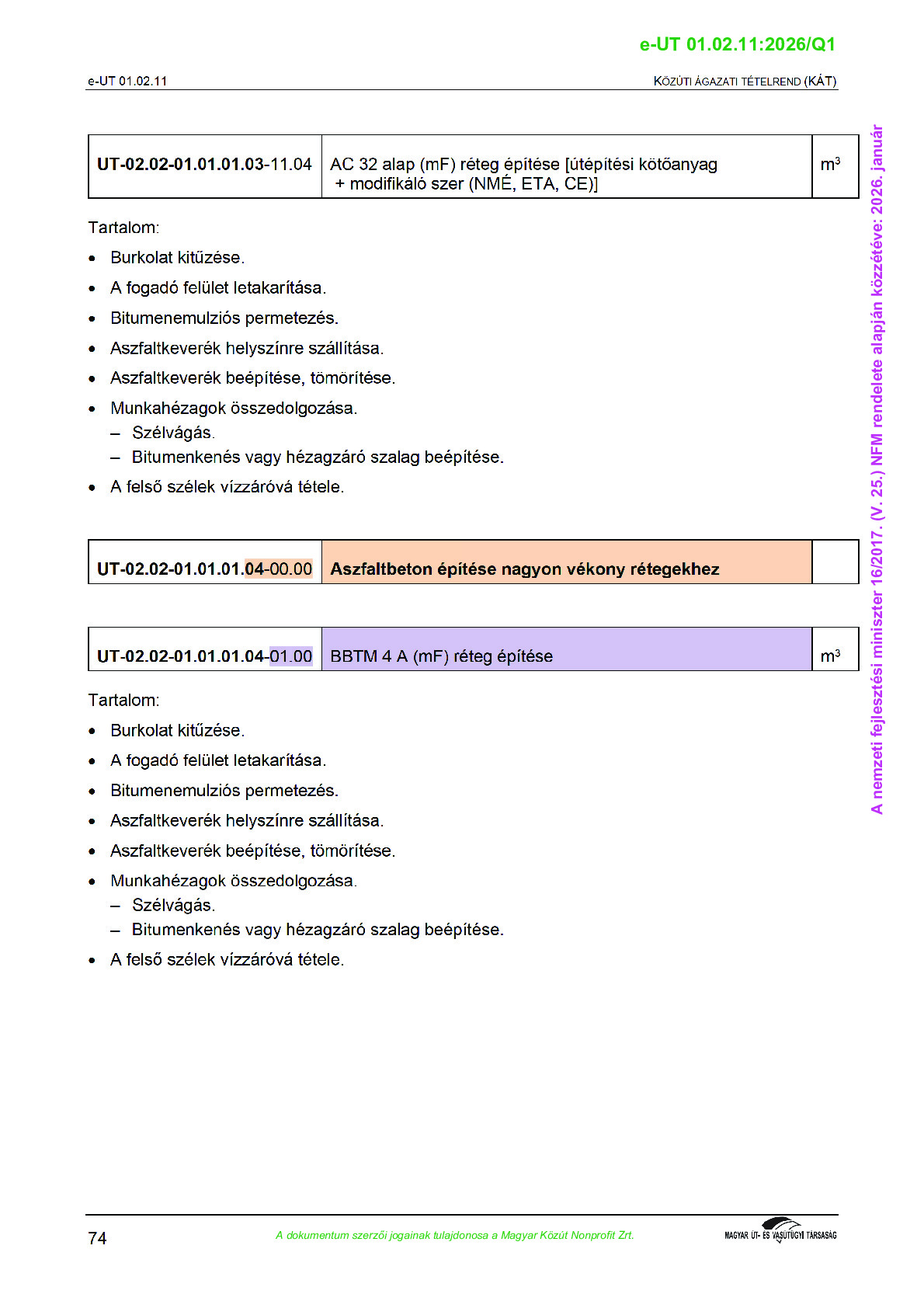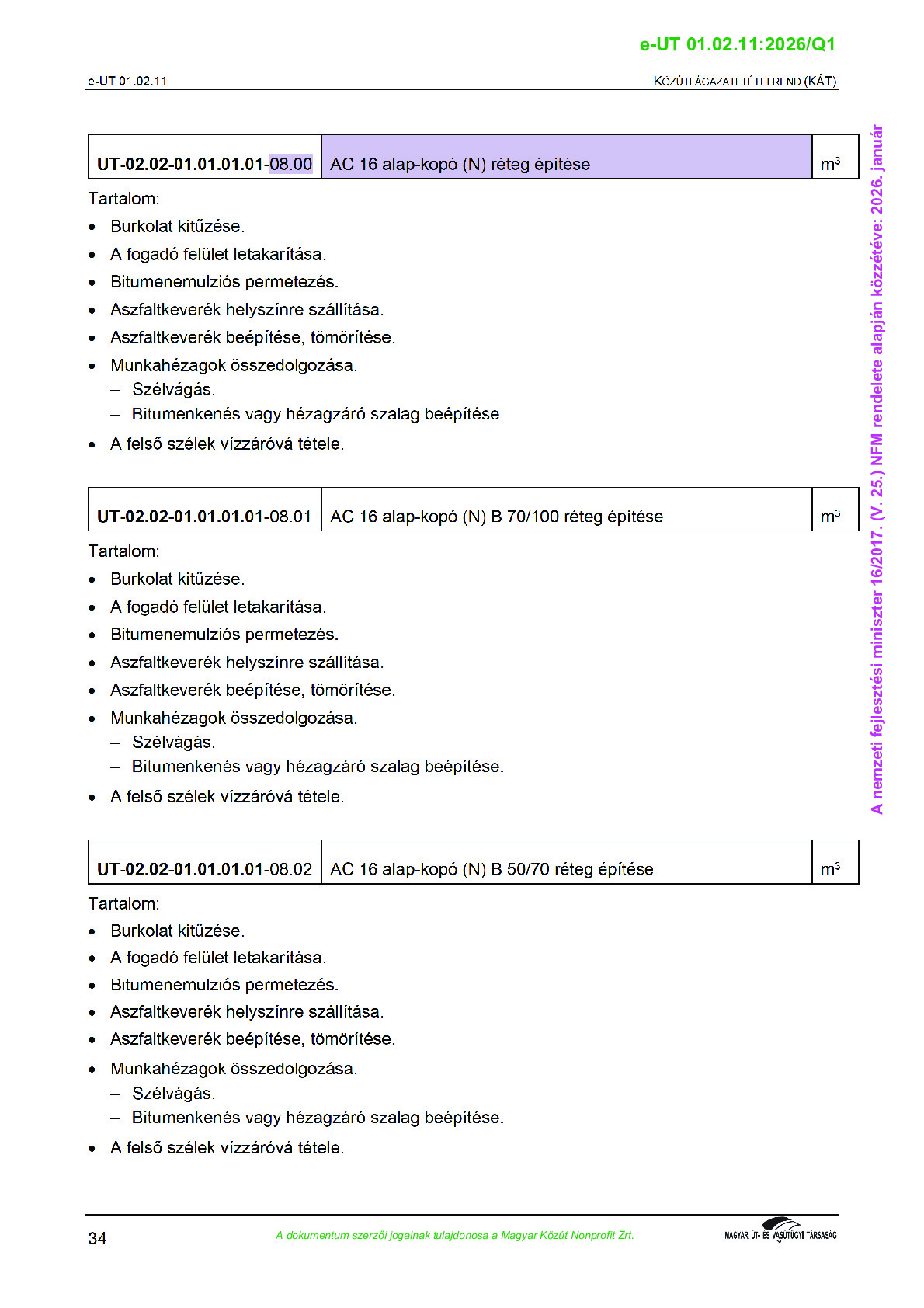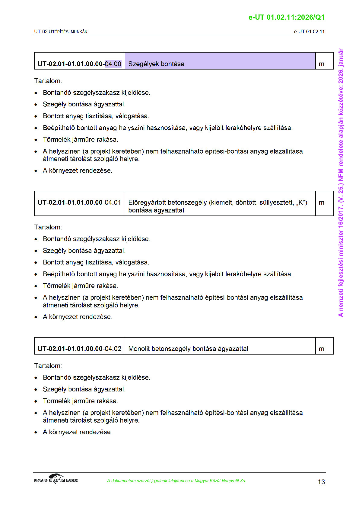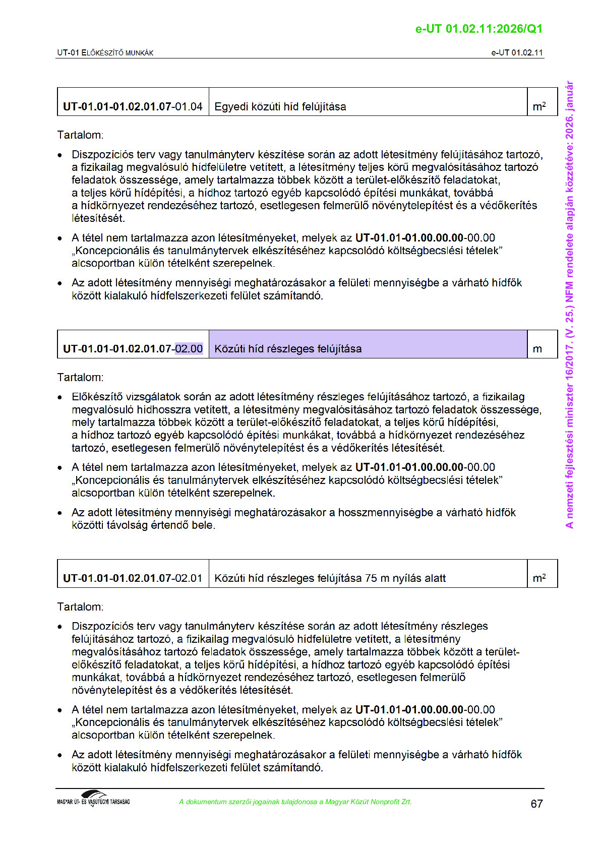 Archív, hatályt vesztet Útügyi Műszaki Előírások