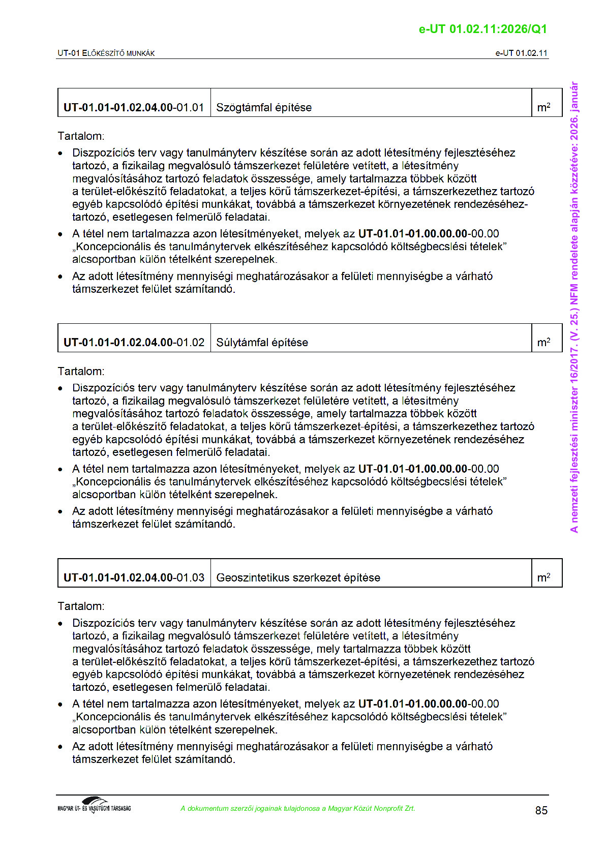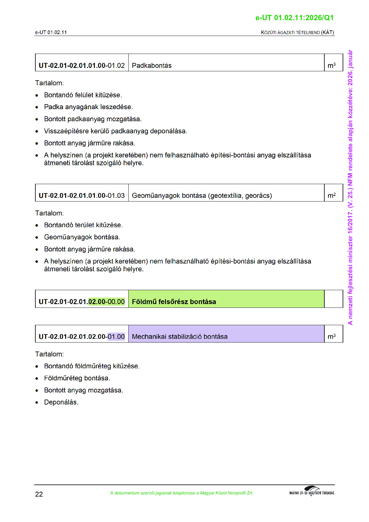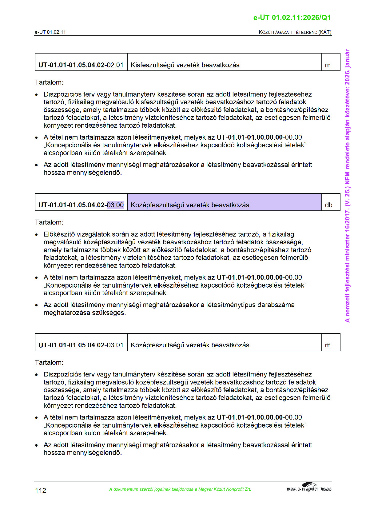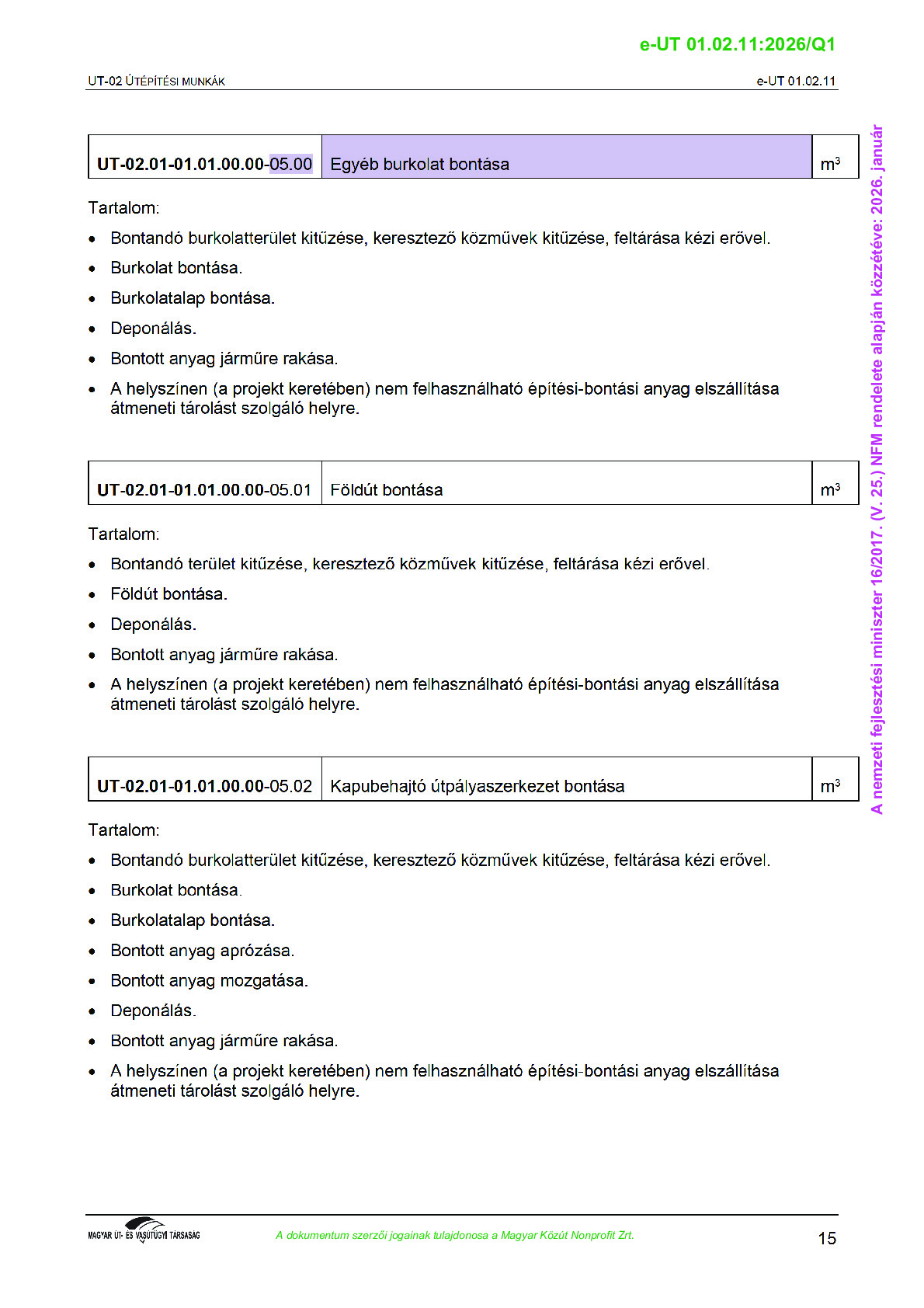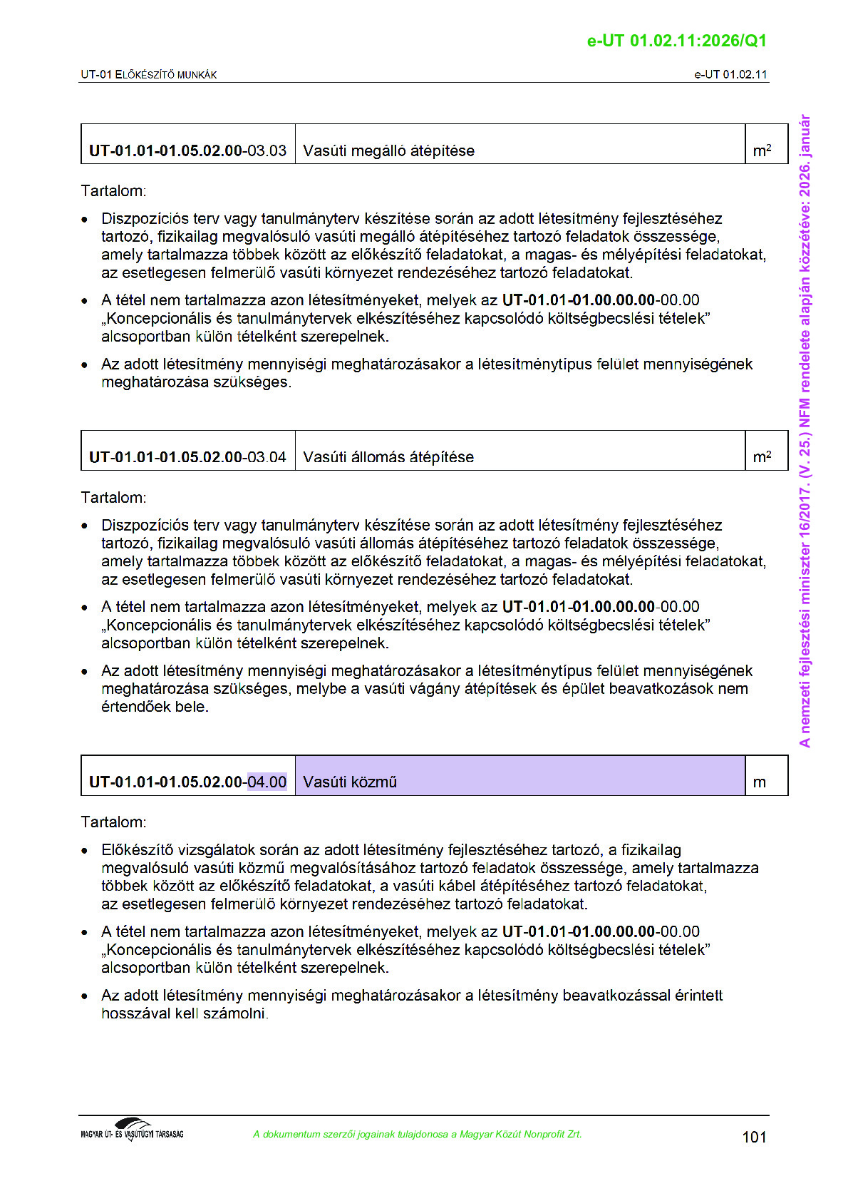 Archív, hatályt vesztet Útügyi Műszaki Előírások