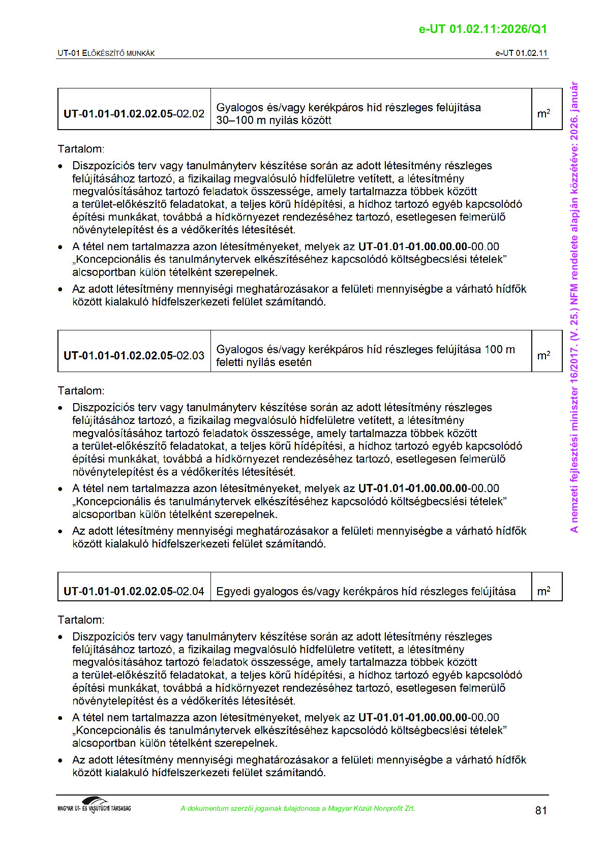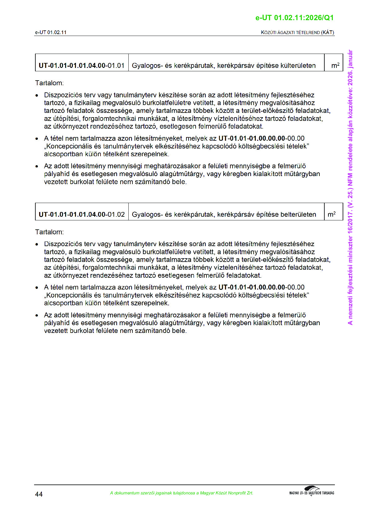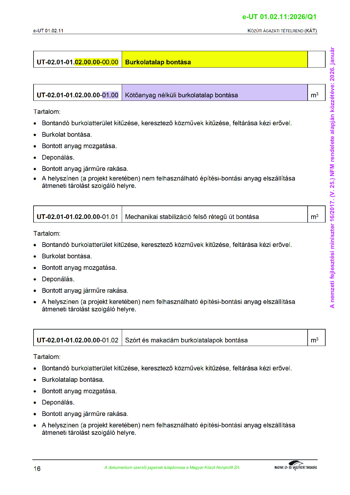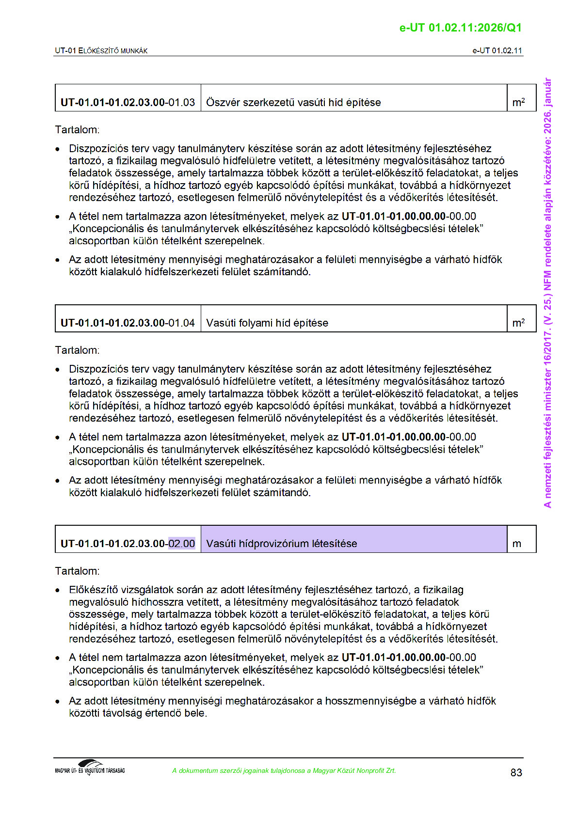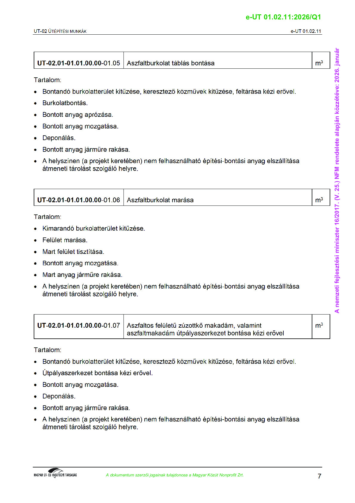 Archív, hatályt vesztet Útügyi Műszaki Előírások