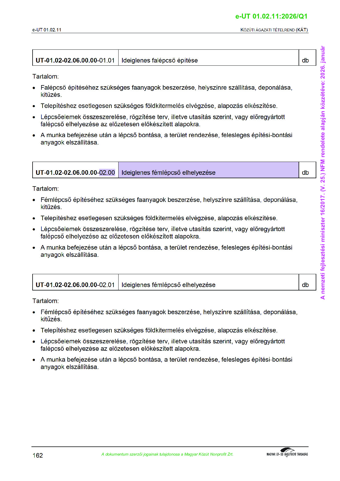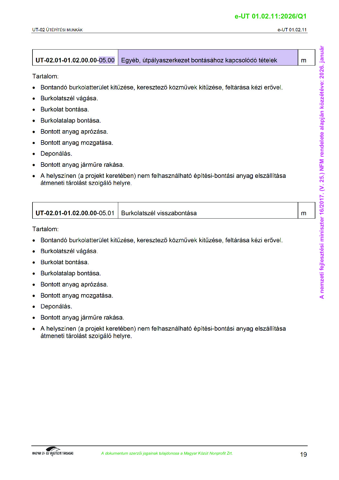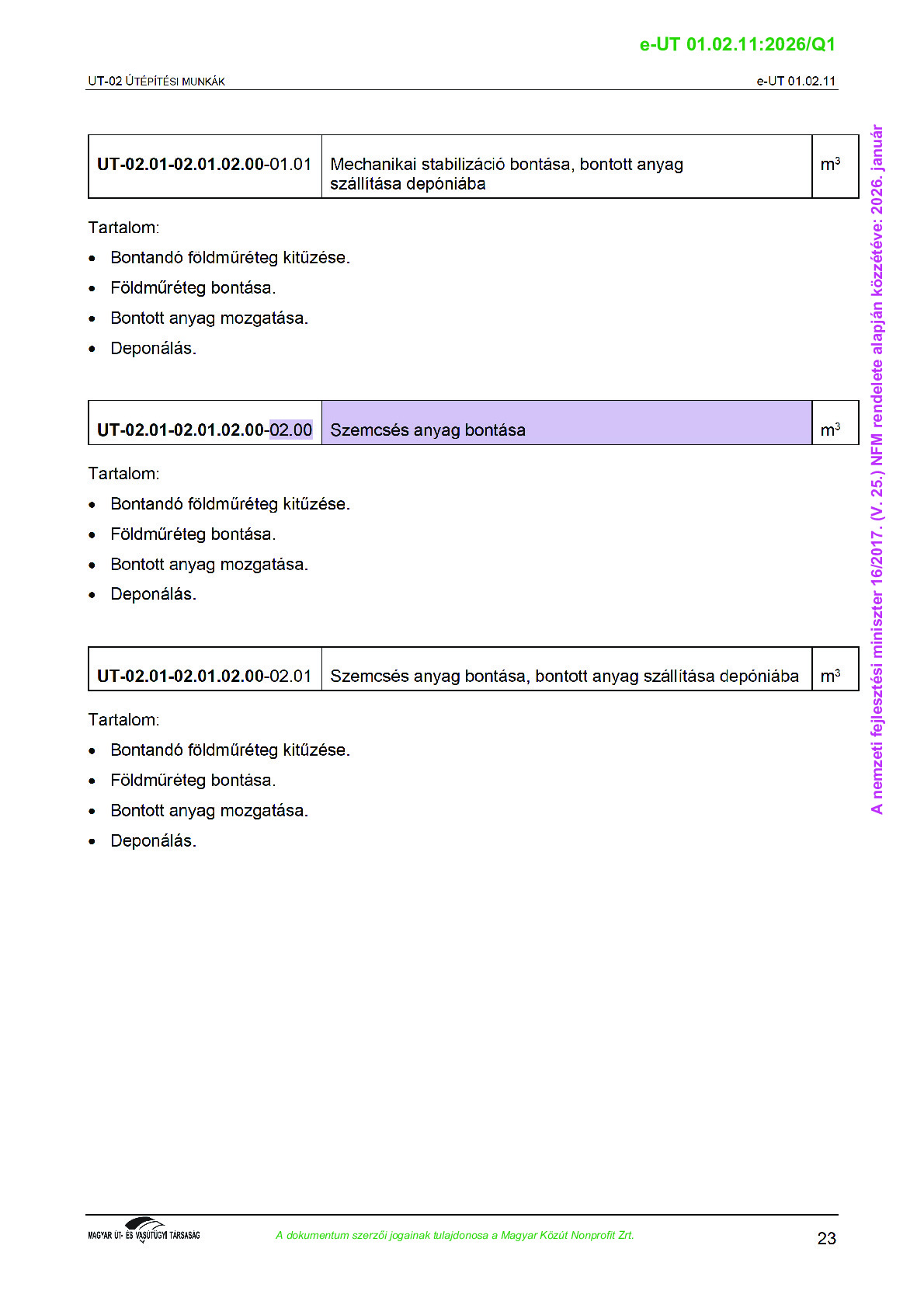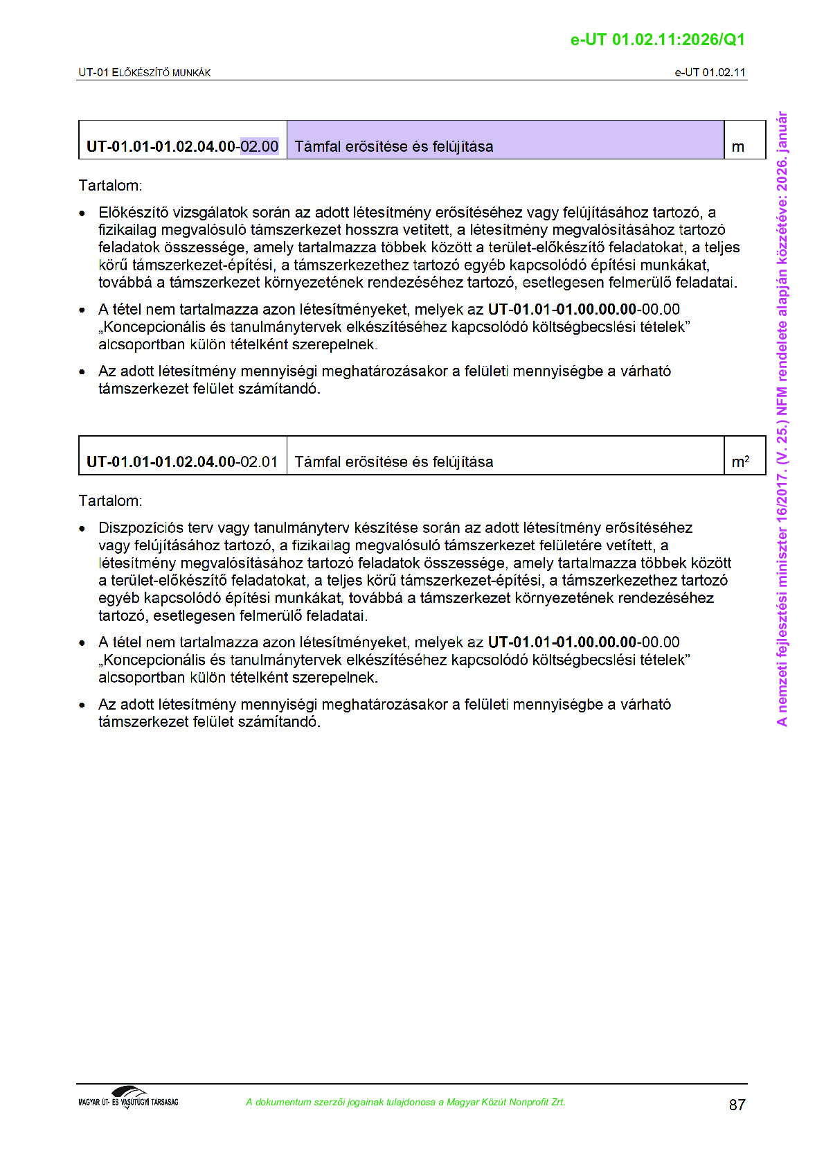 Archív, hatályt vesztet Útügyi Műszaki Előírások