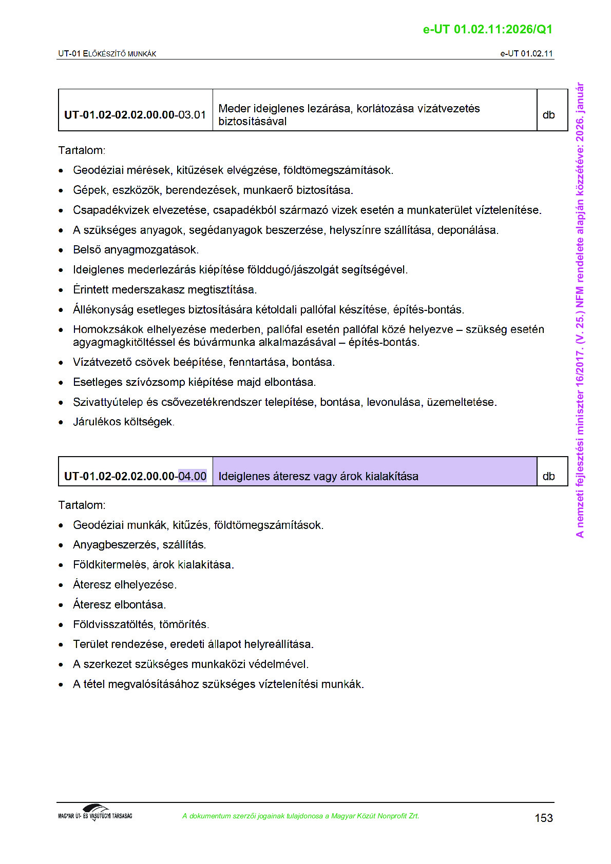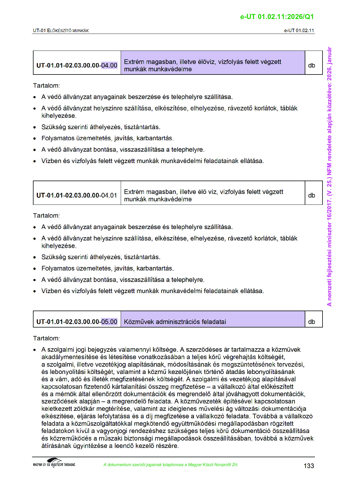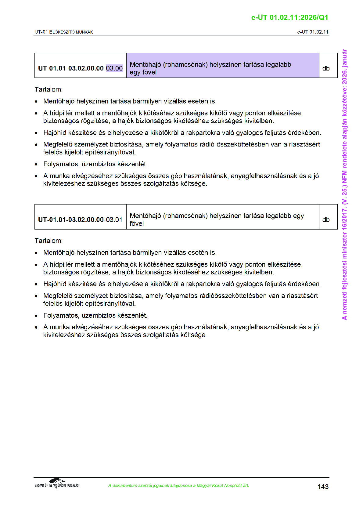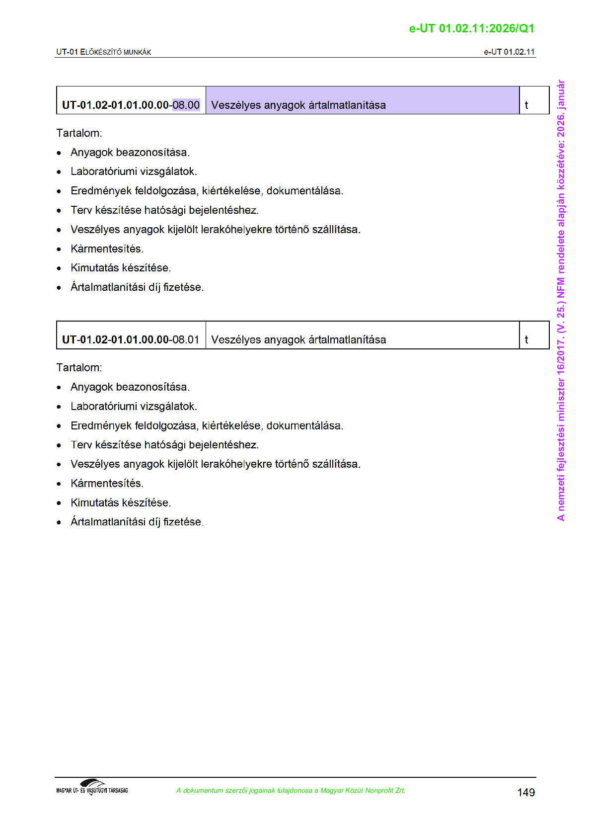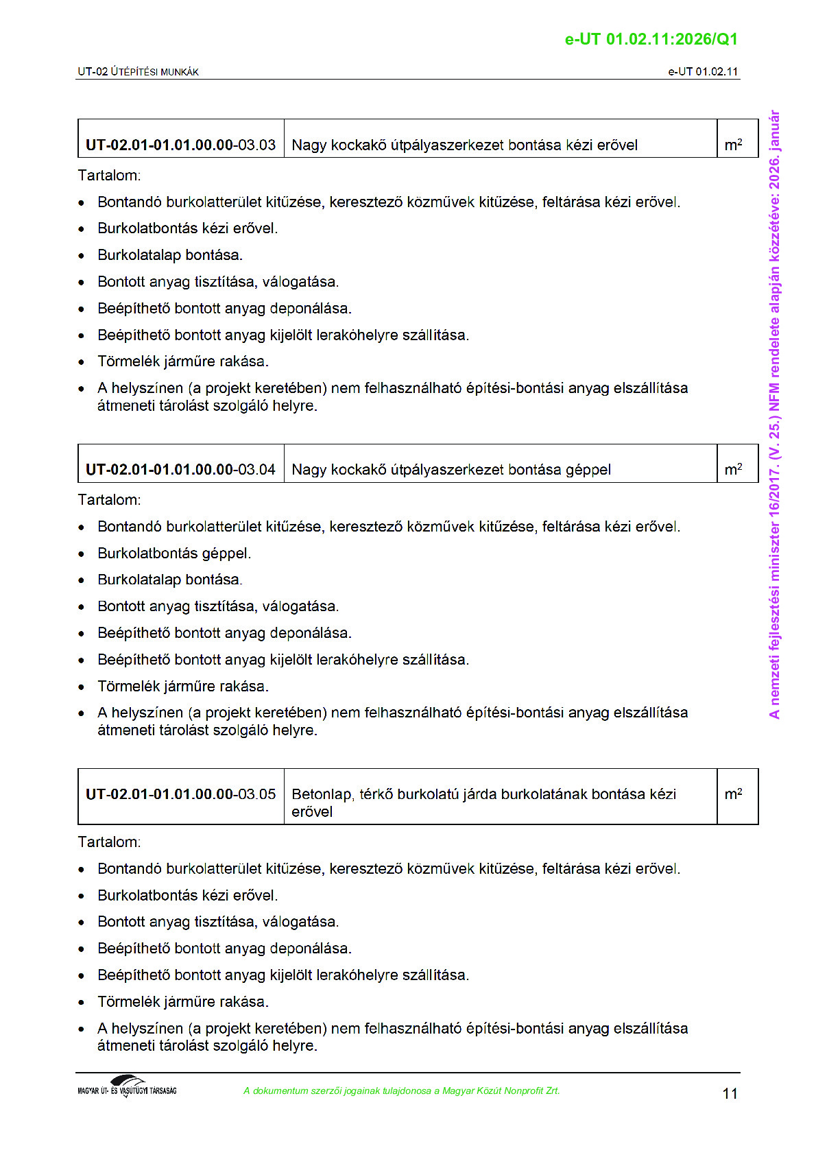 Archív, hatályt vesztet Útügyi Műszaki Előírások