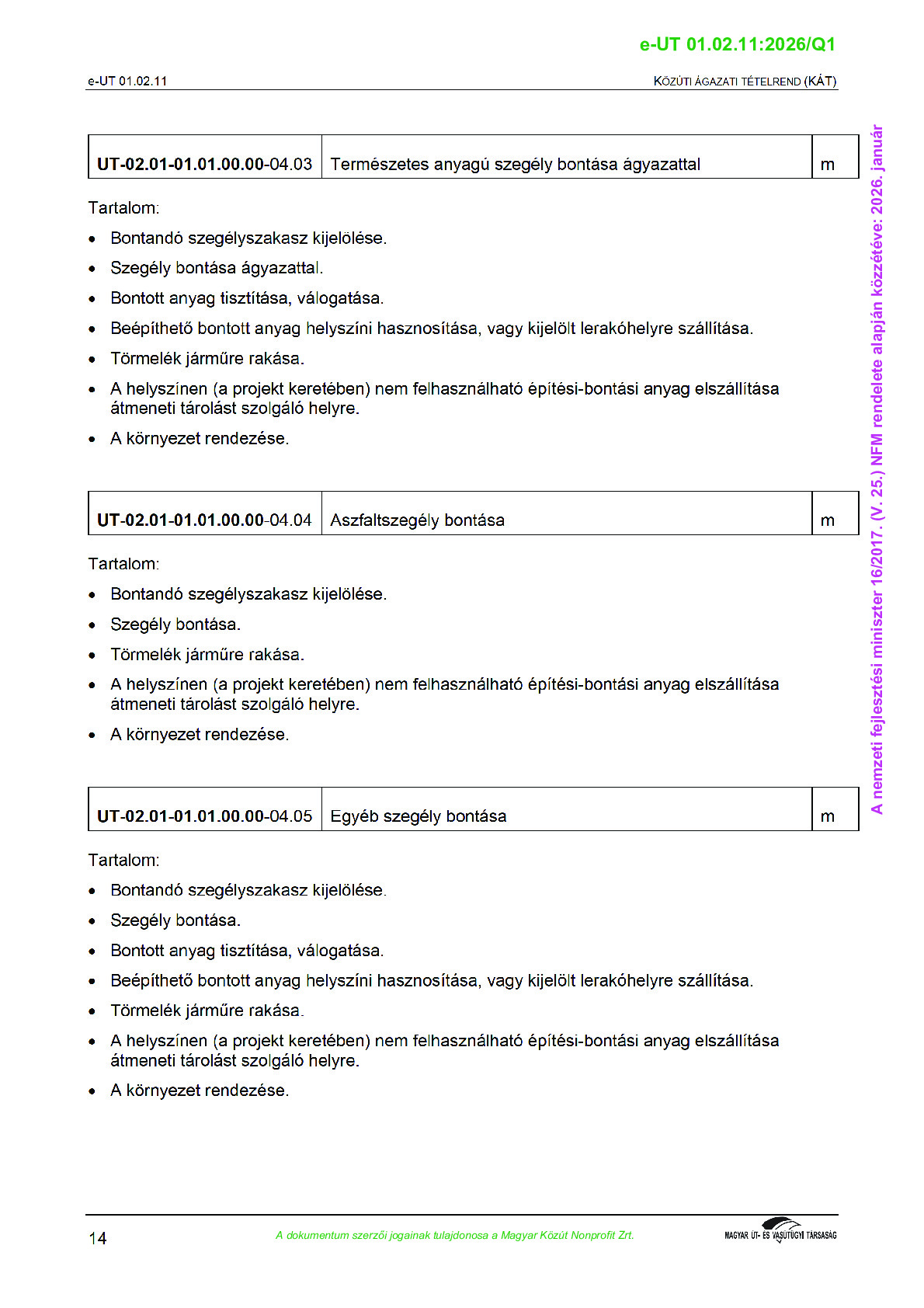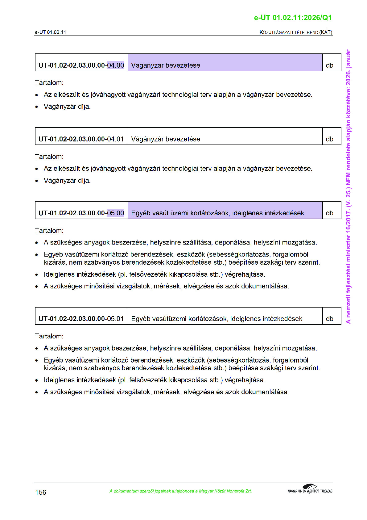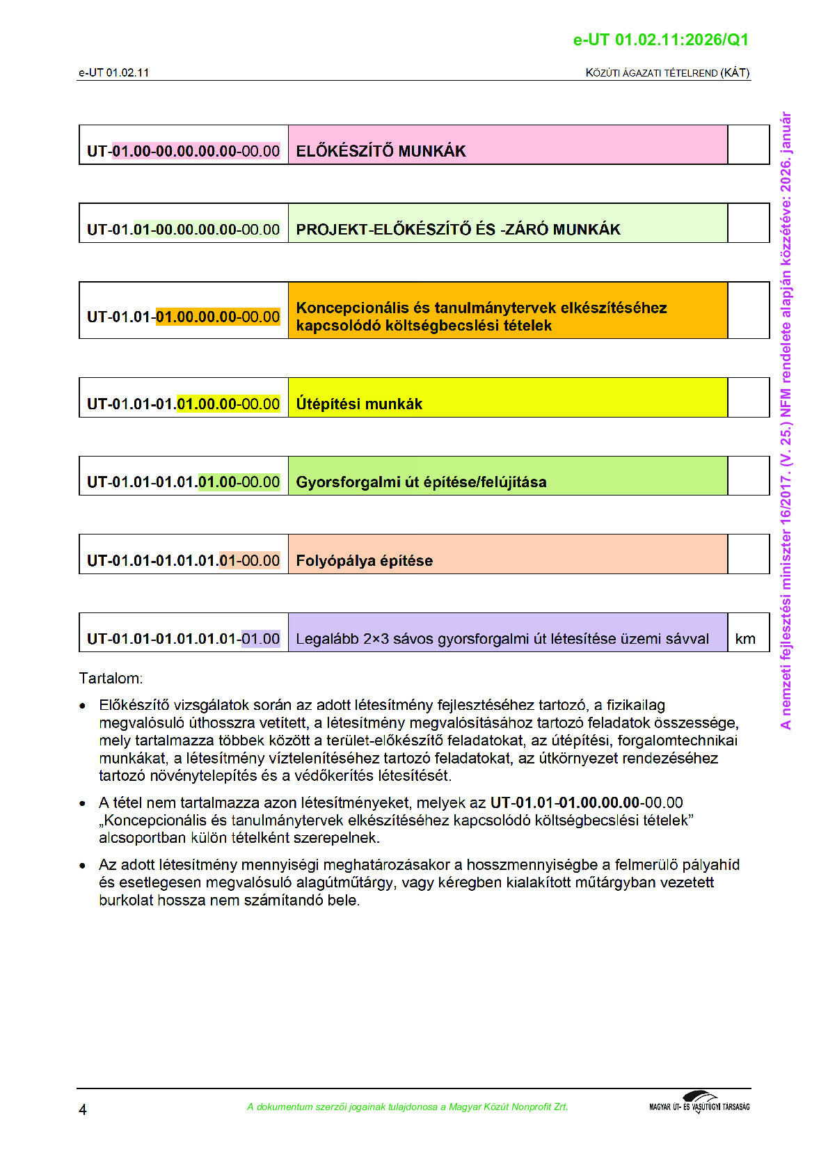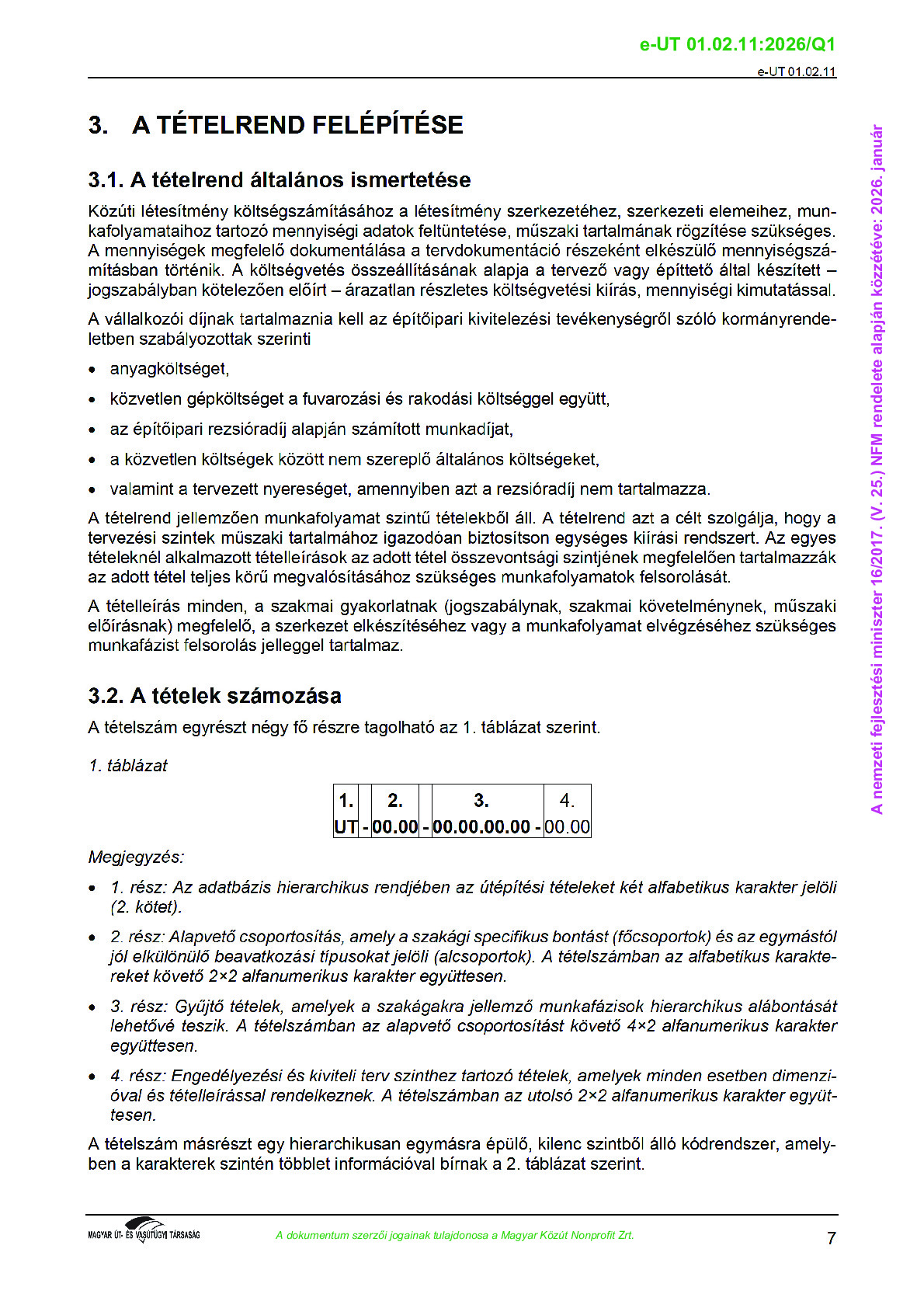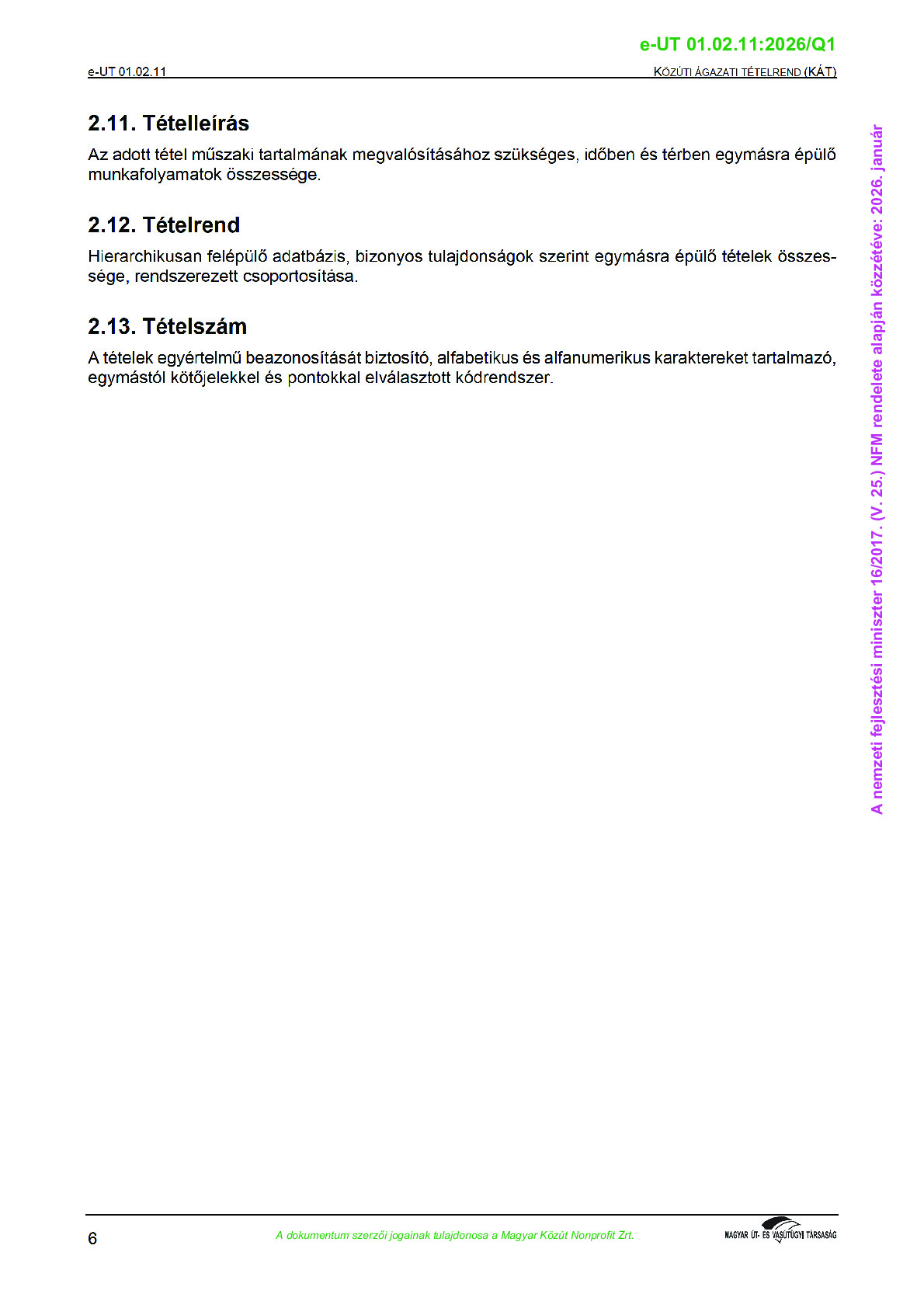 Közúti Ágazati Tételrend