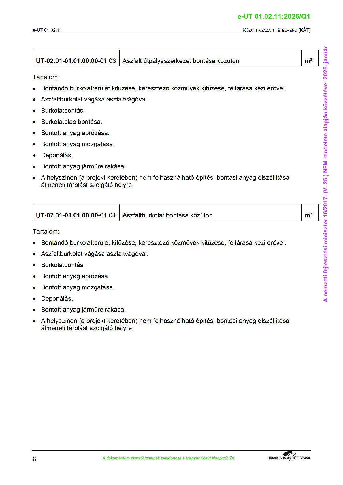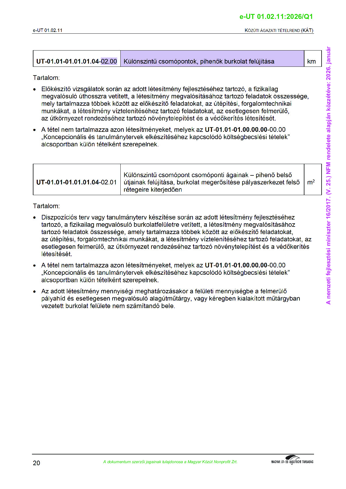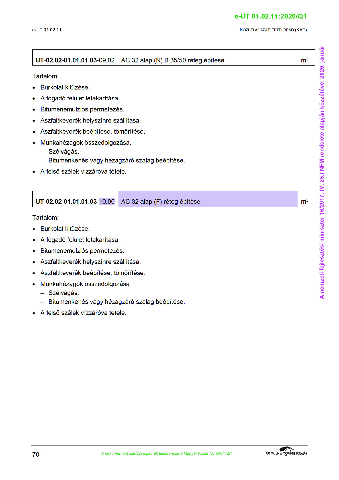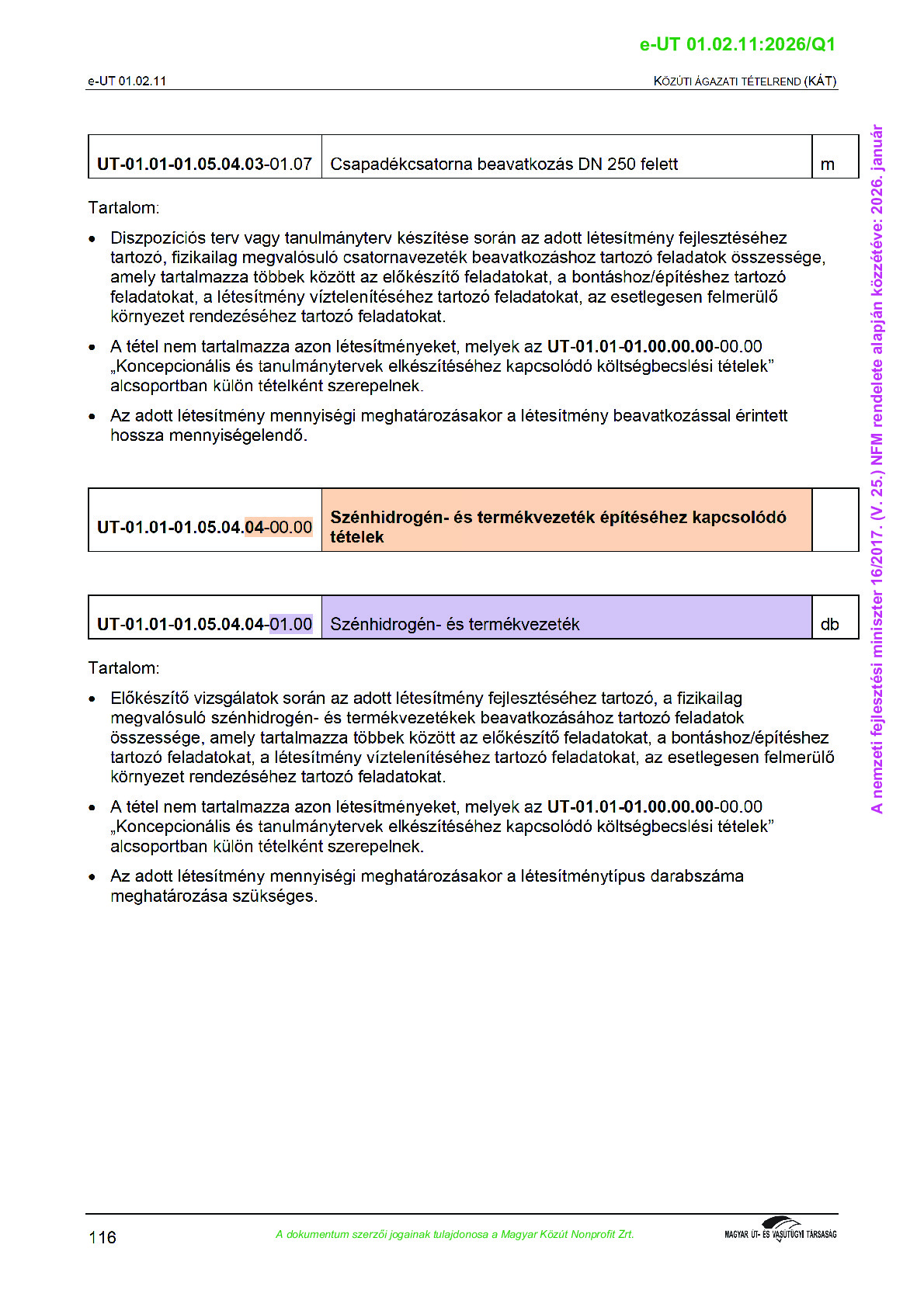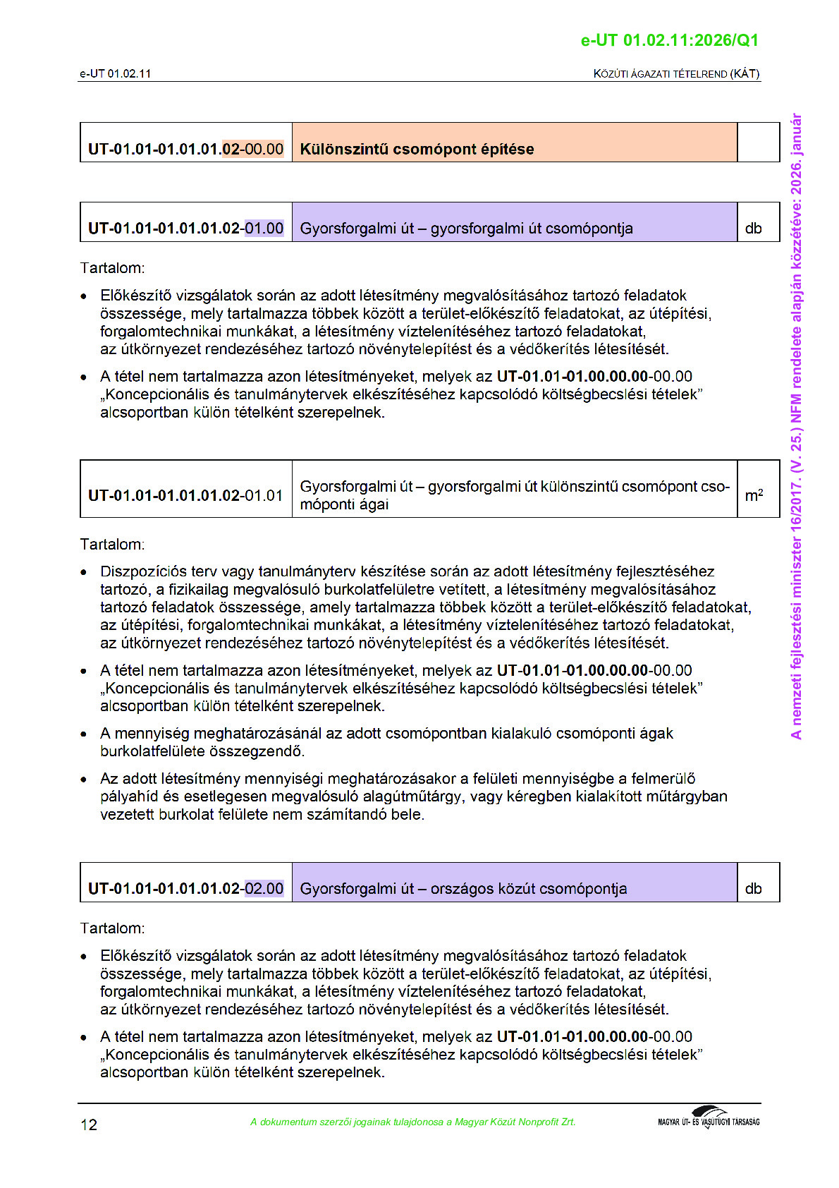 Közúti Ágazati Tételrend