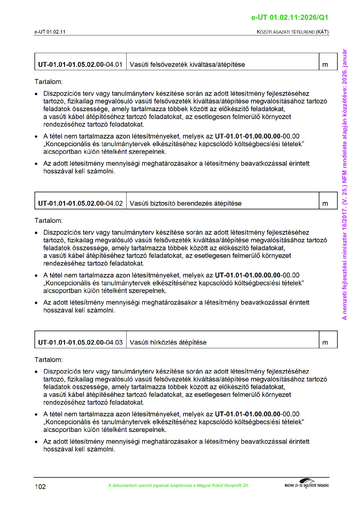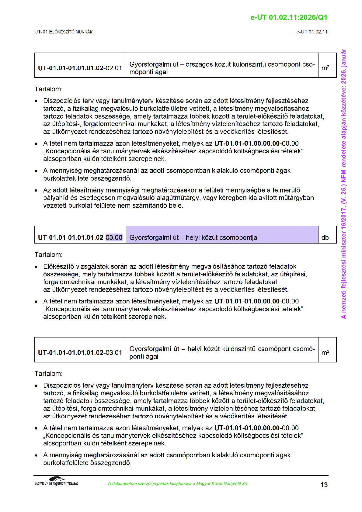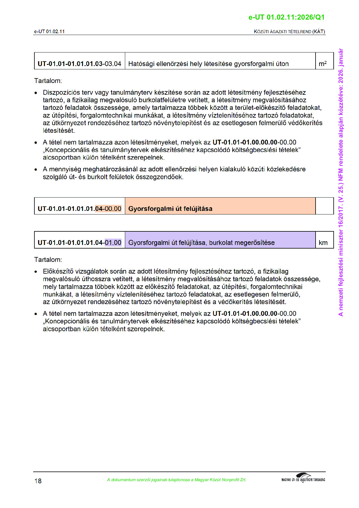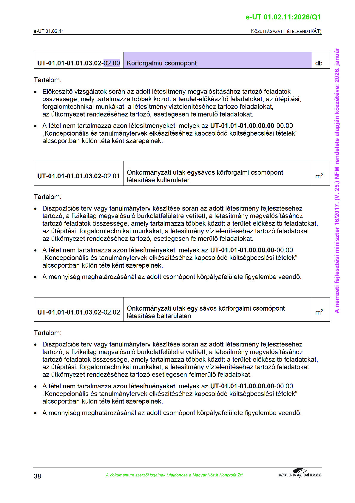 Közúti Ágazati Tételrend
