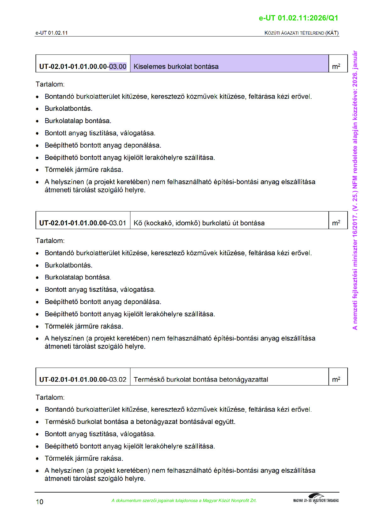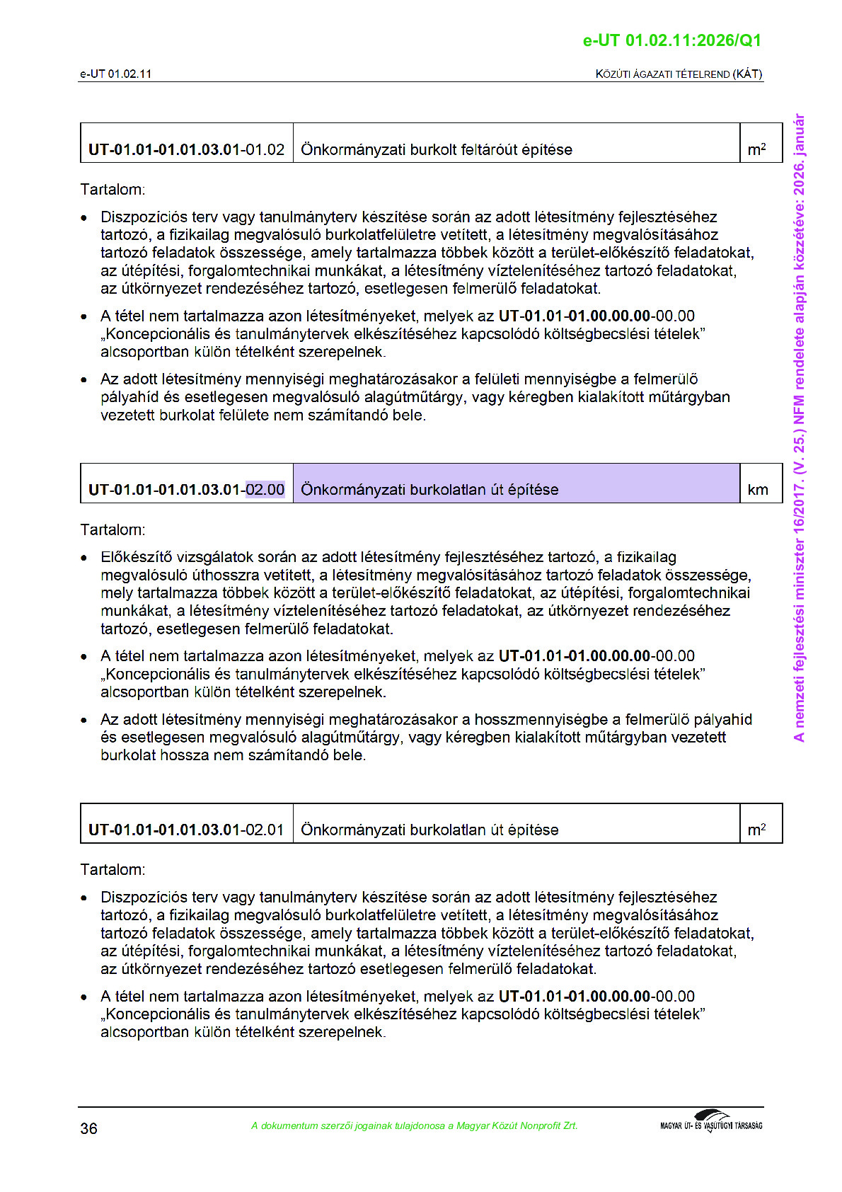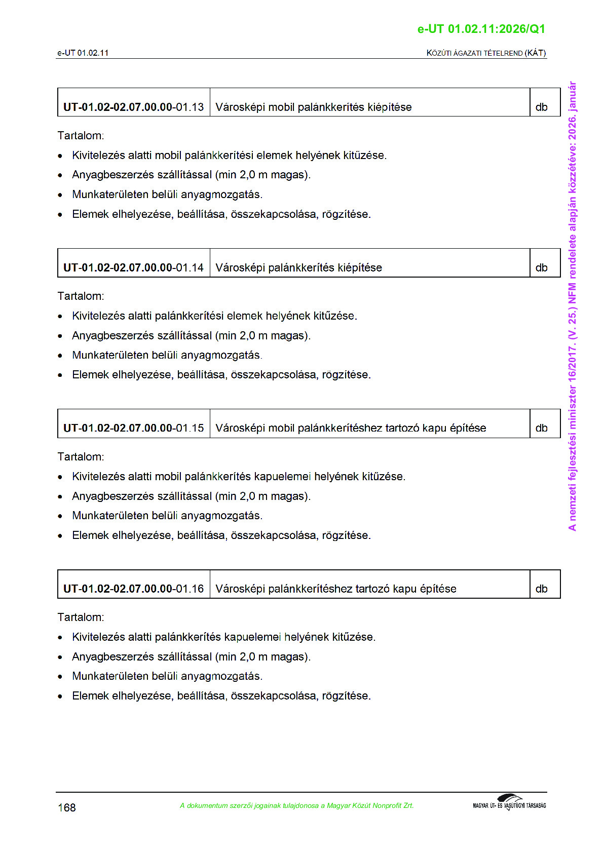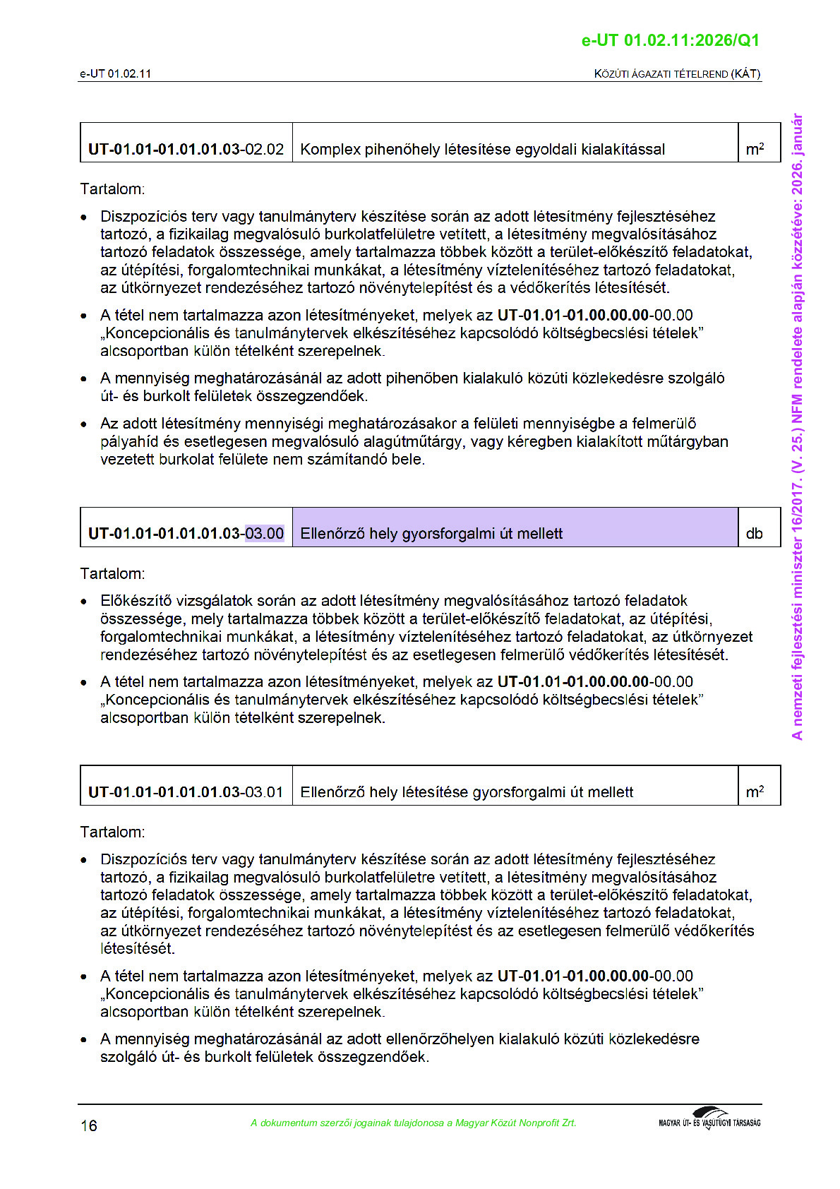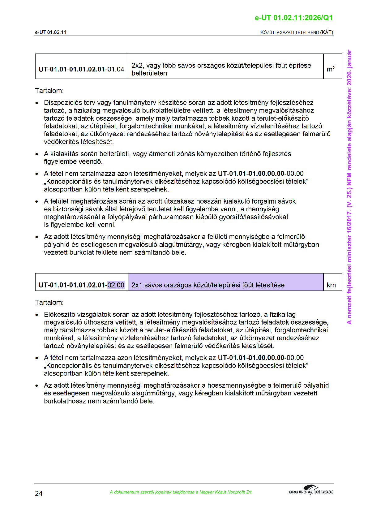 Közúti Ágazati Tételrend