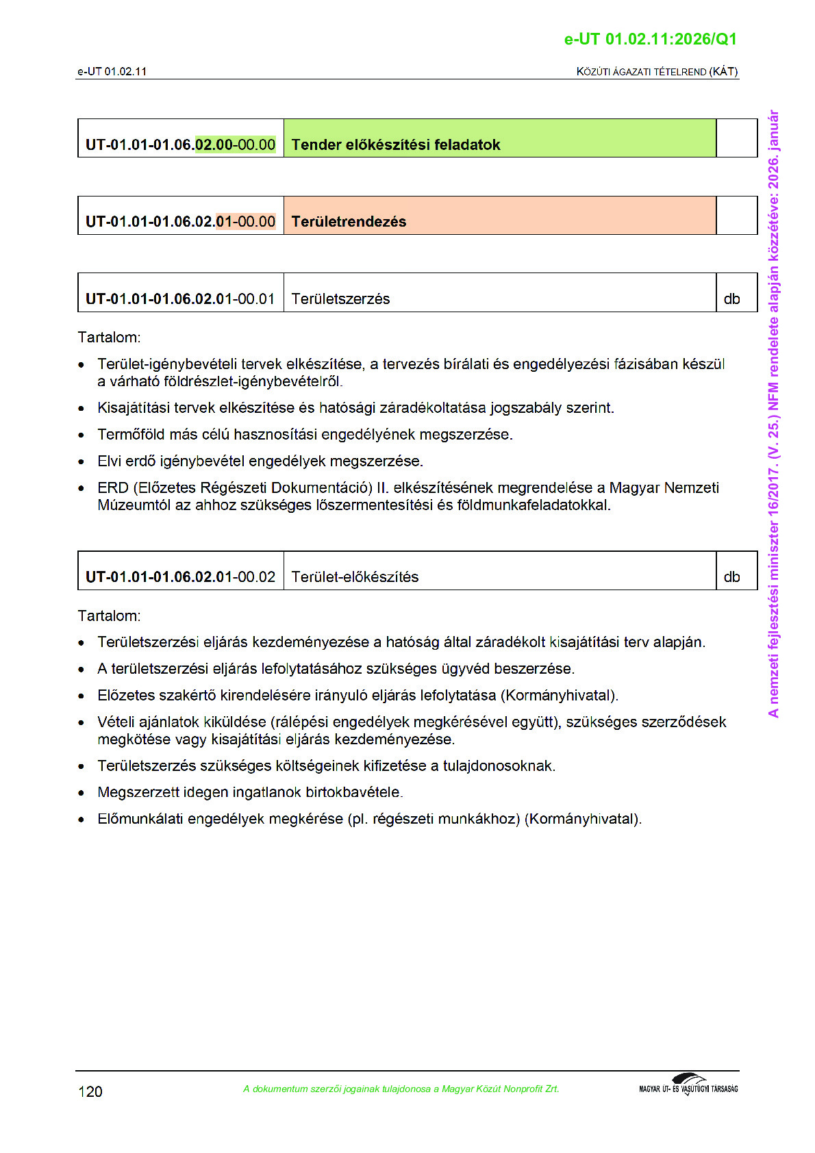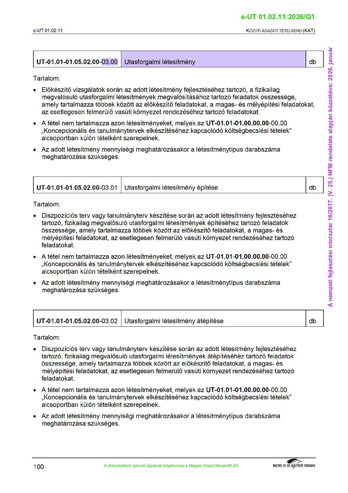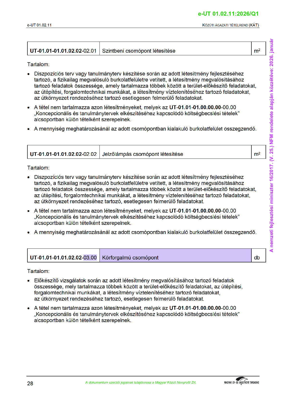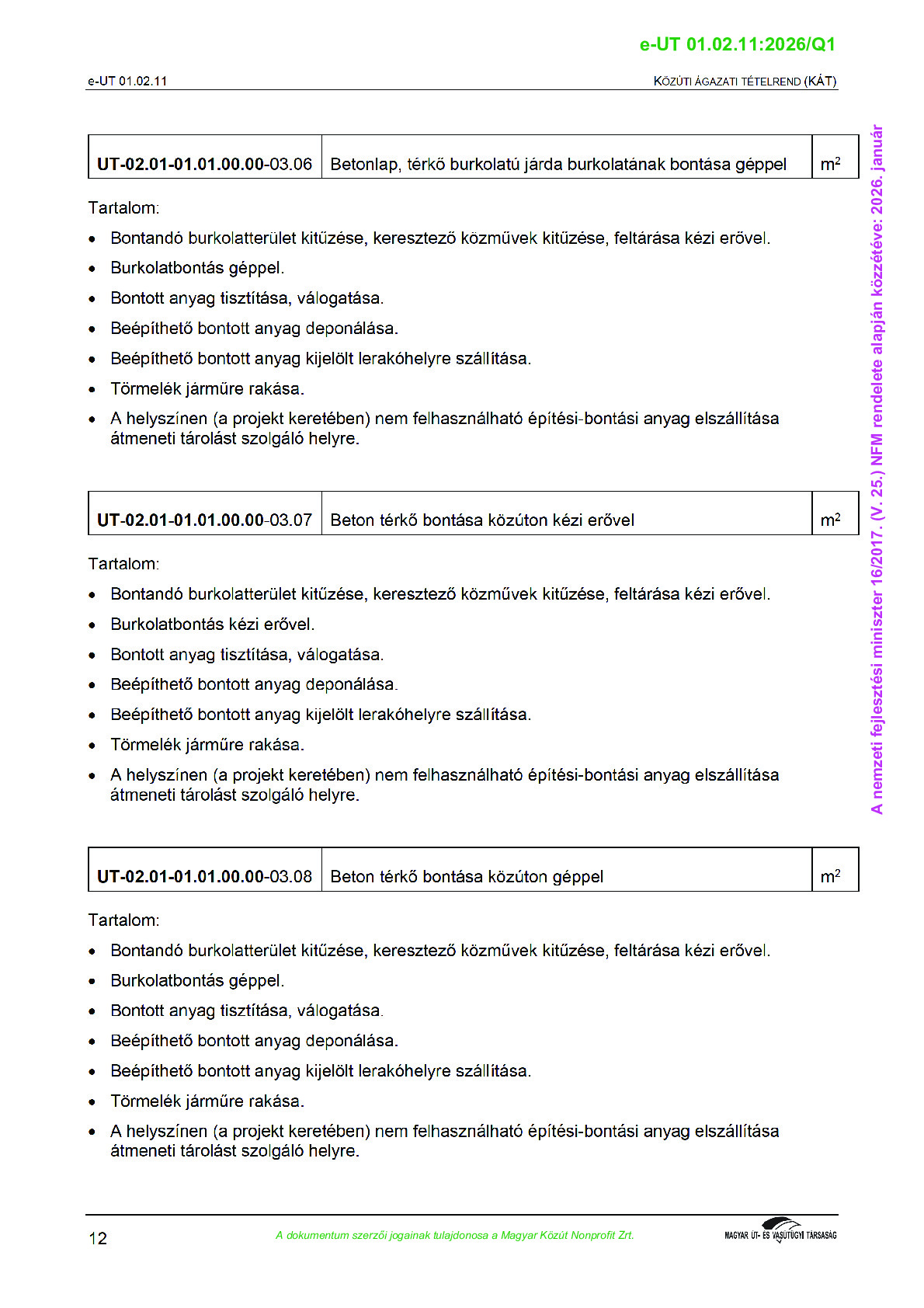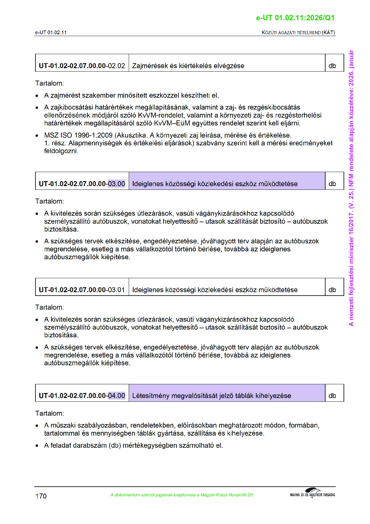 Közúti Ágazati Tételrend