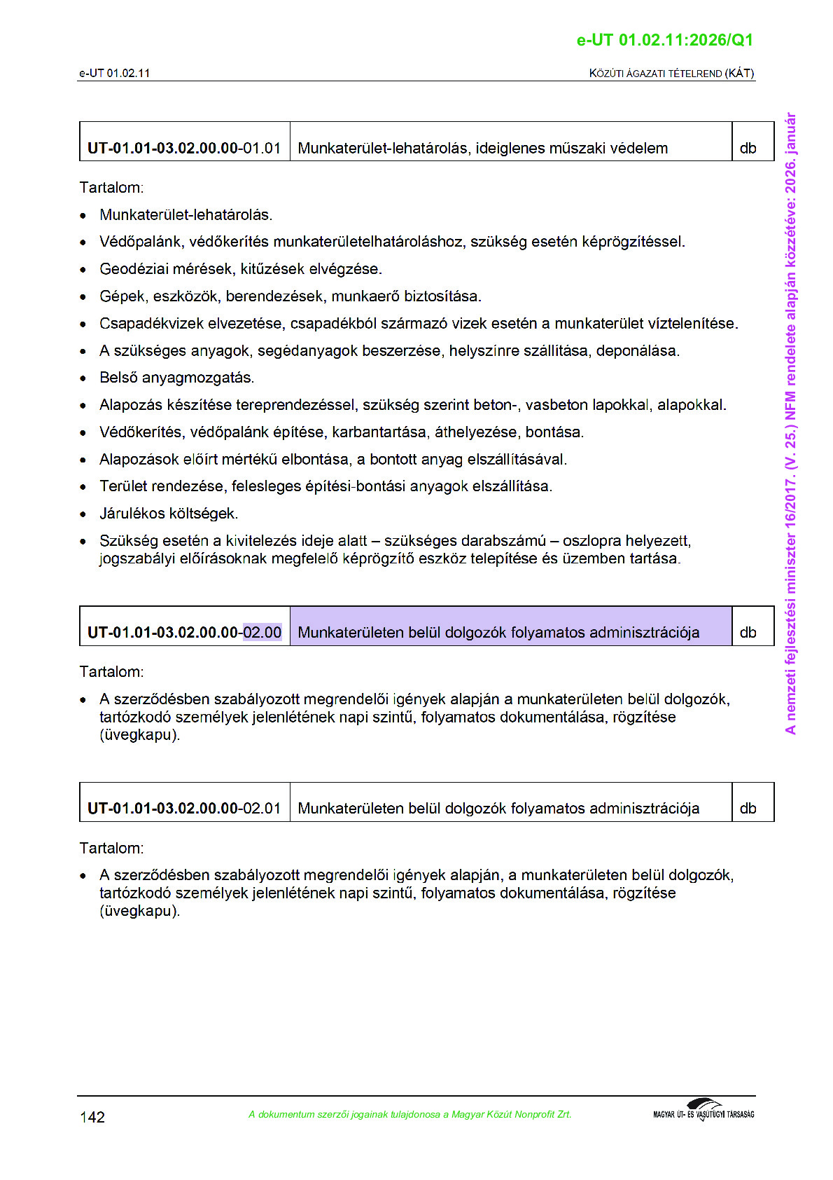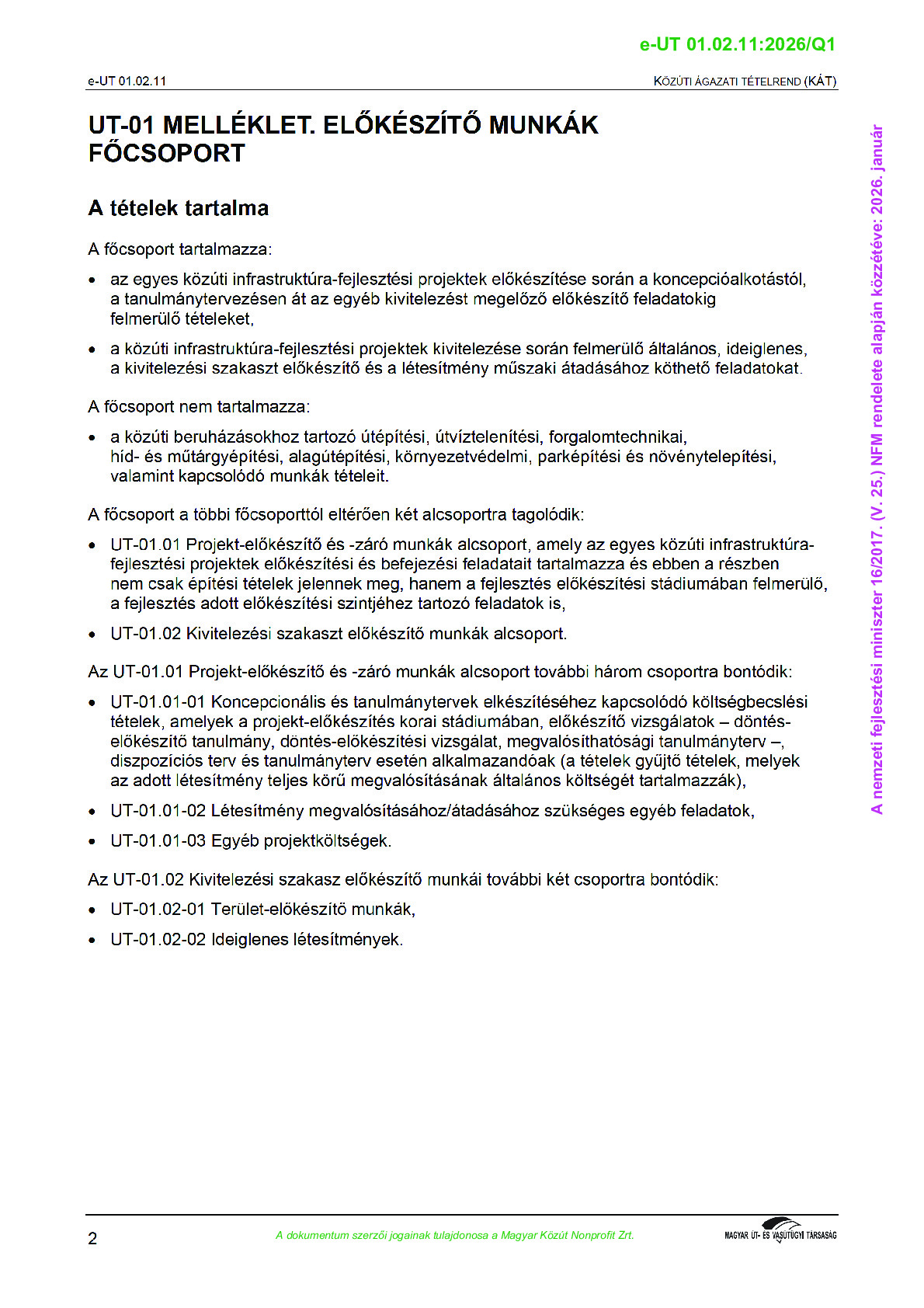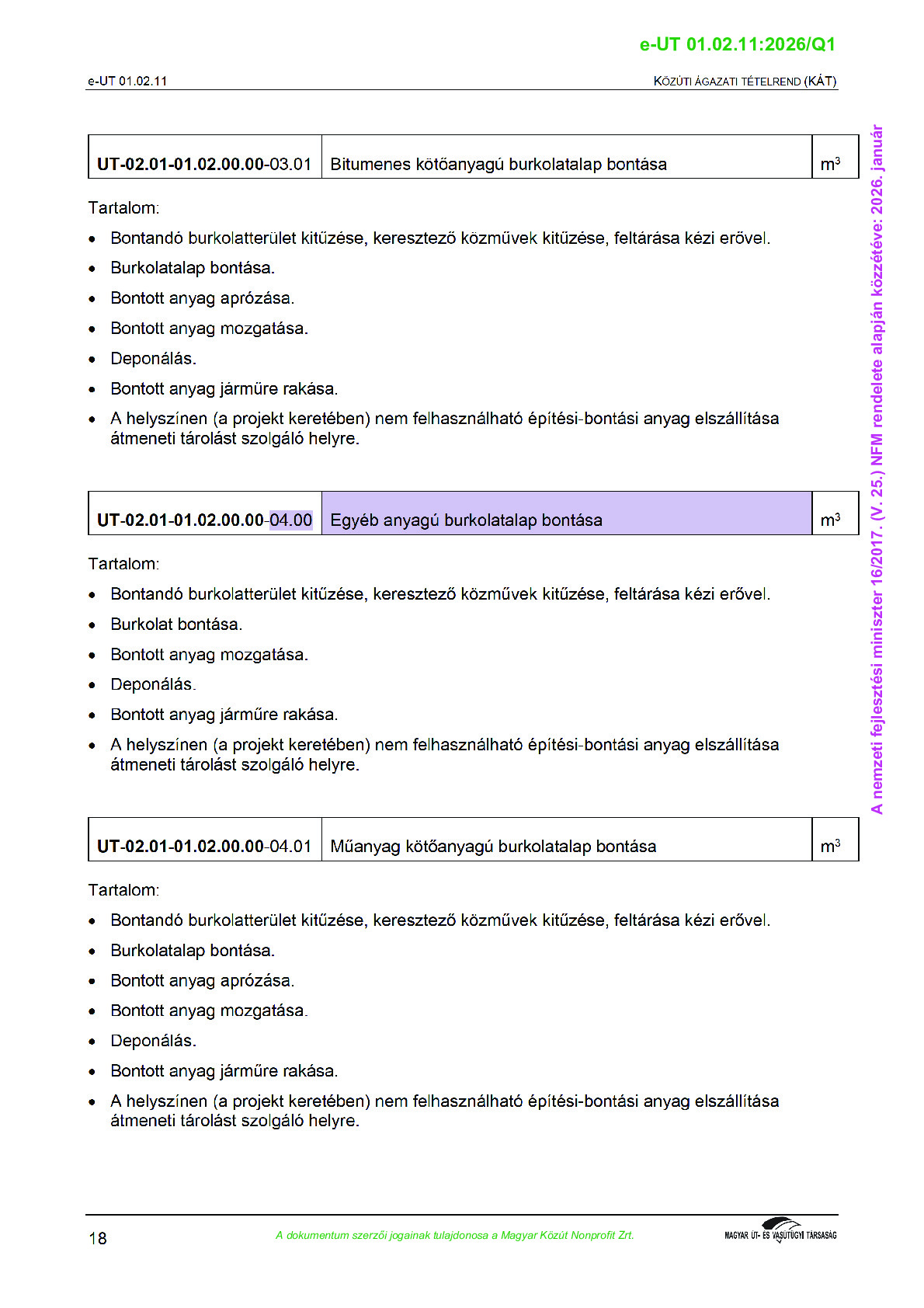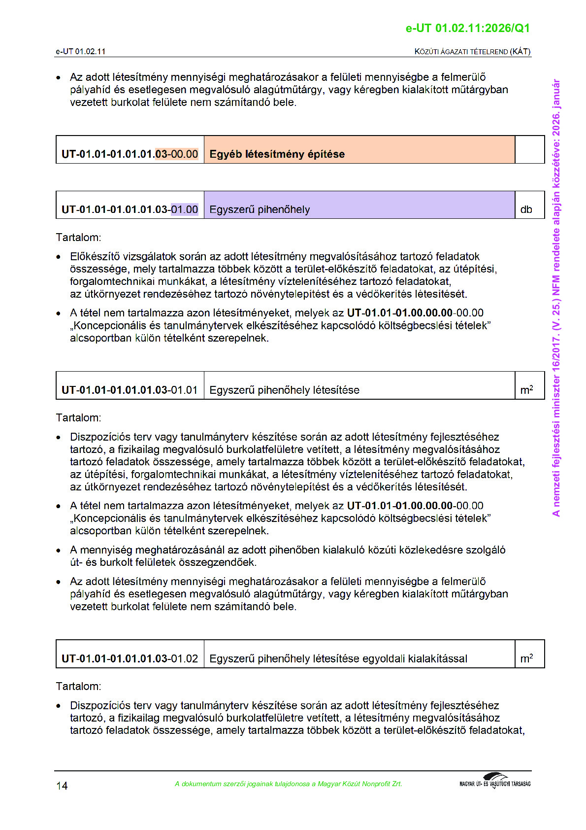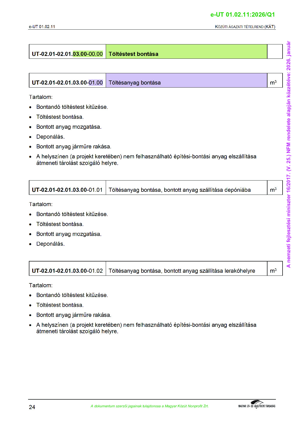 Közúti Ágazati Tételrend