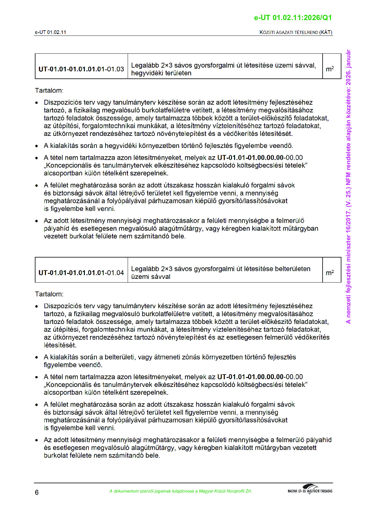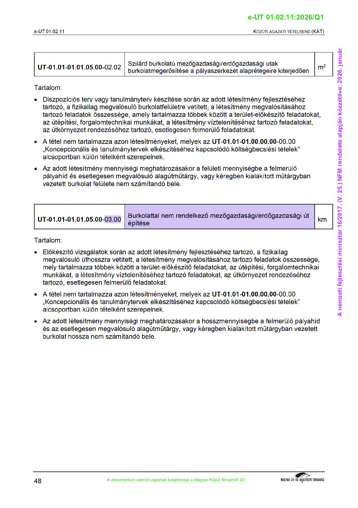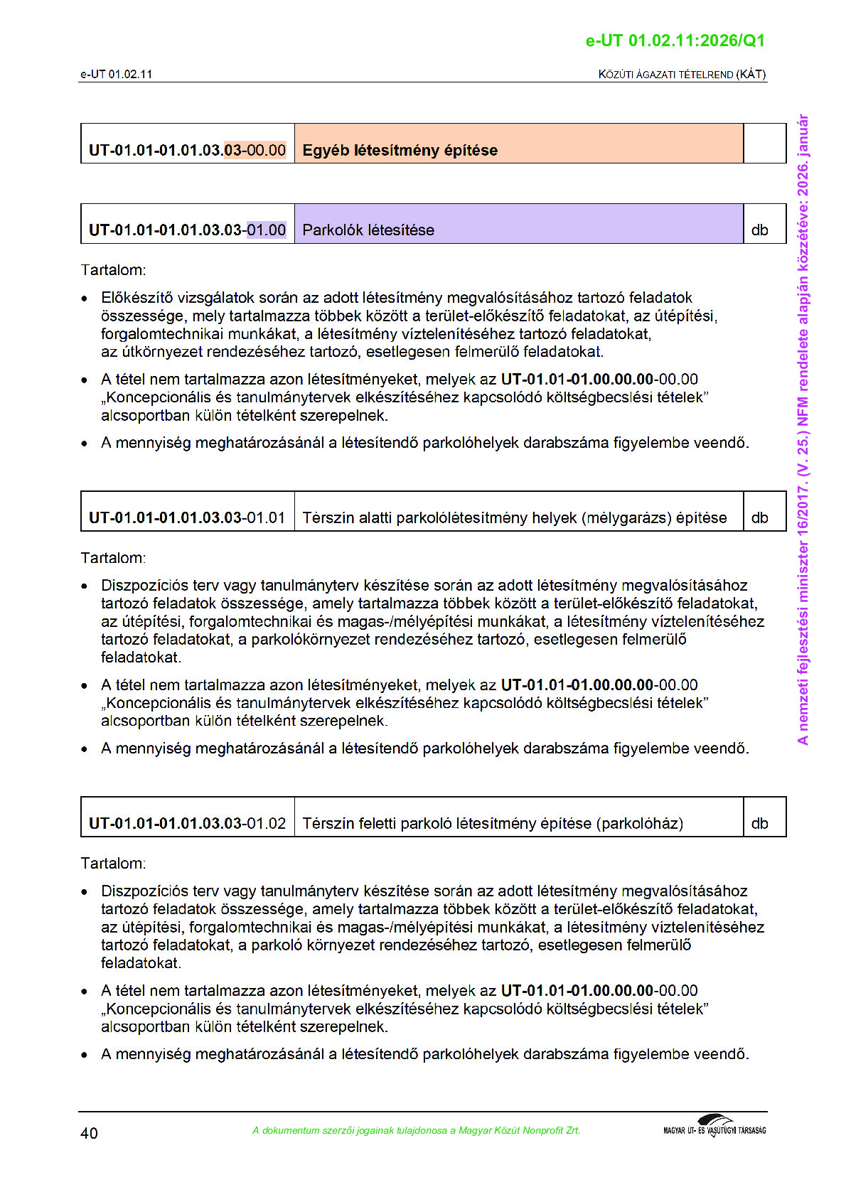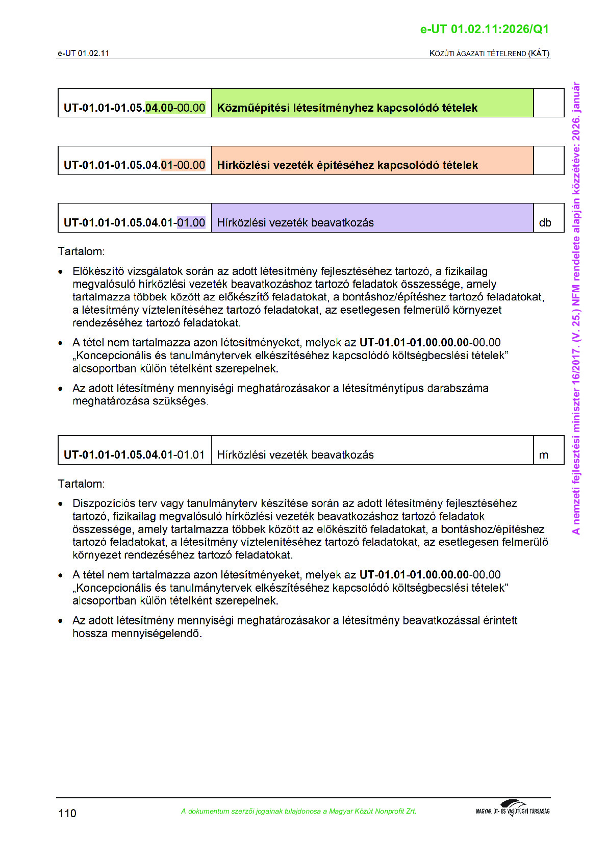 Közúti ágazati tételrend