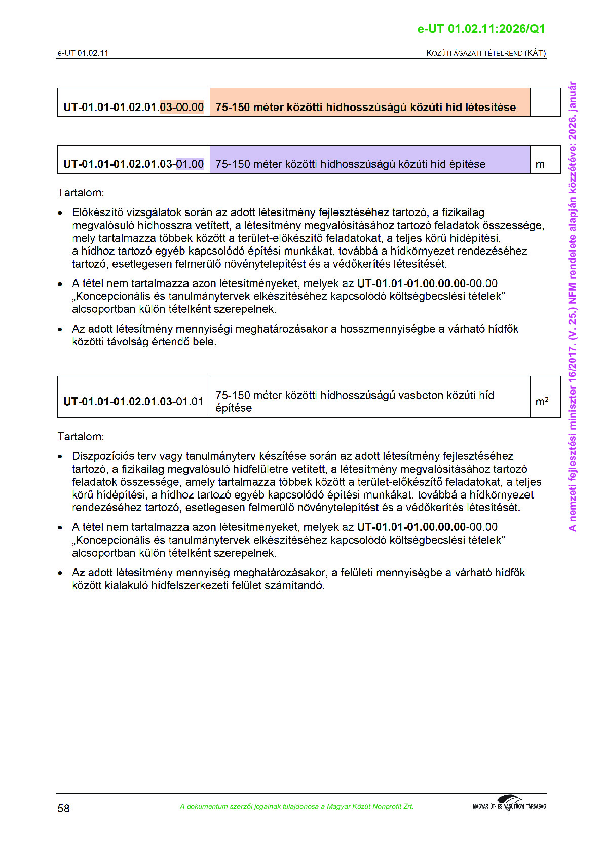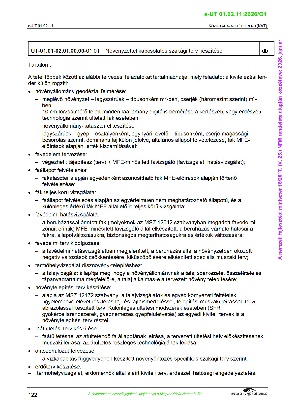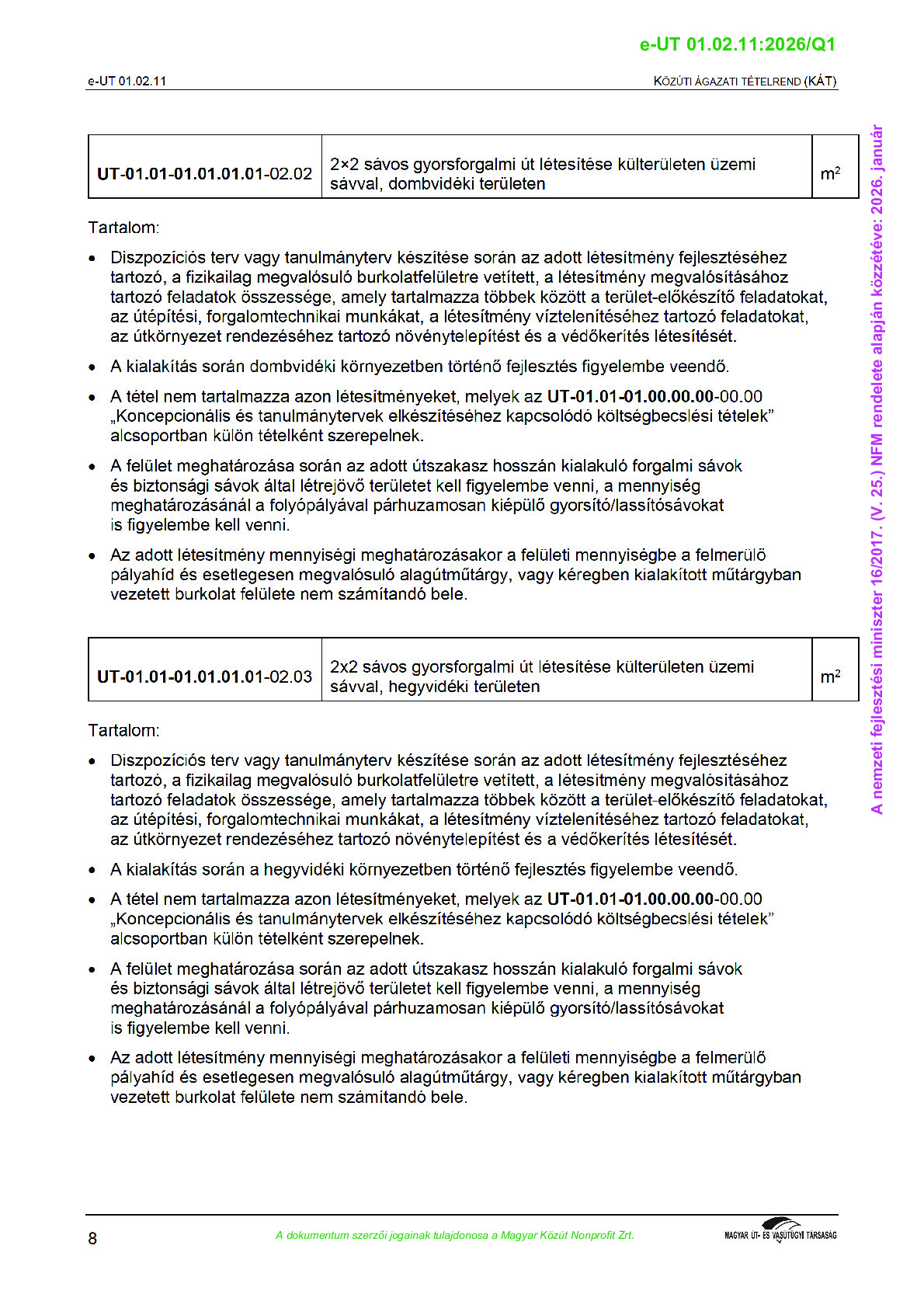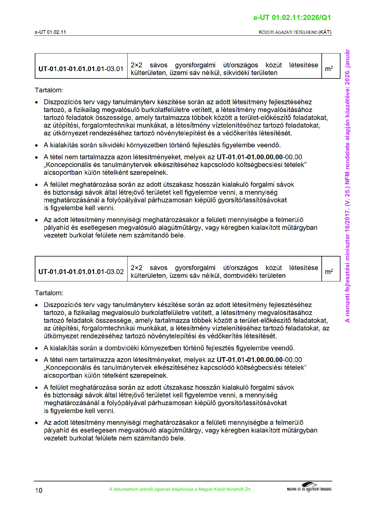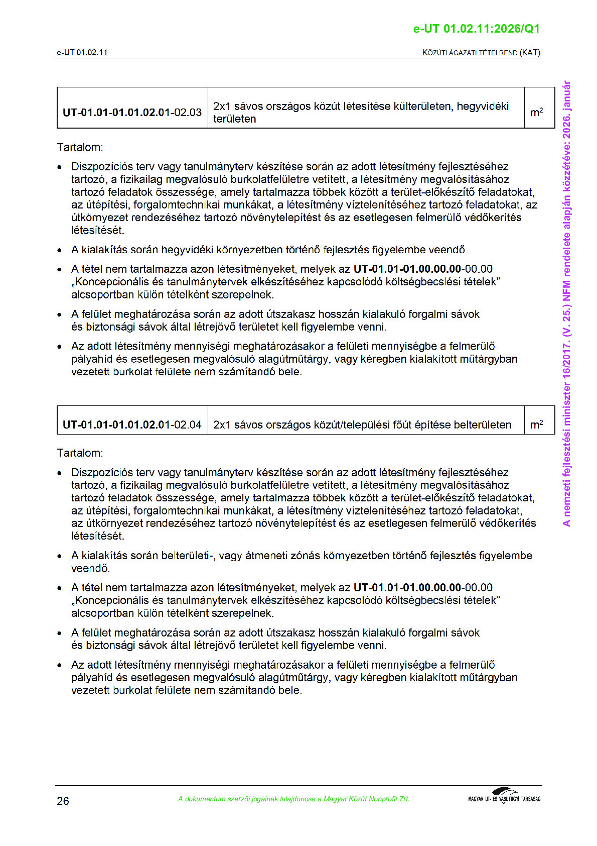 Közúti ágazati tételrend