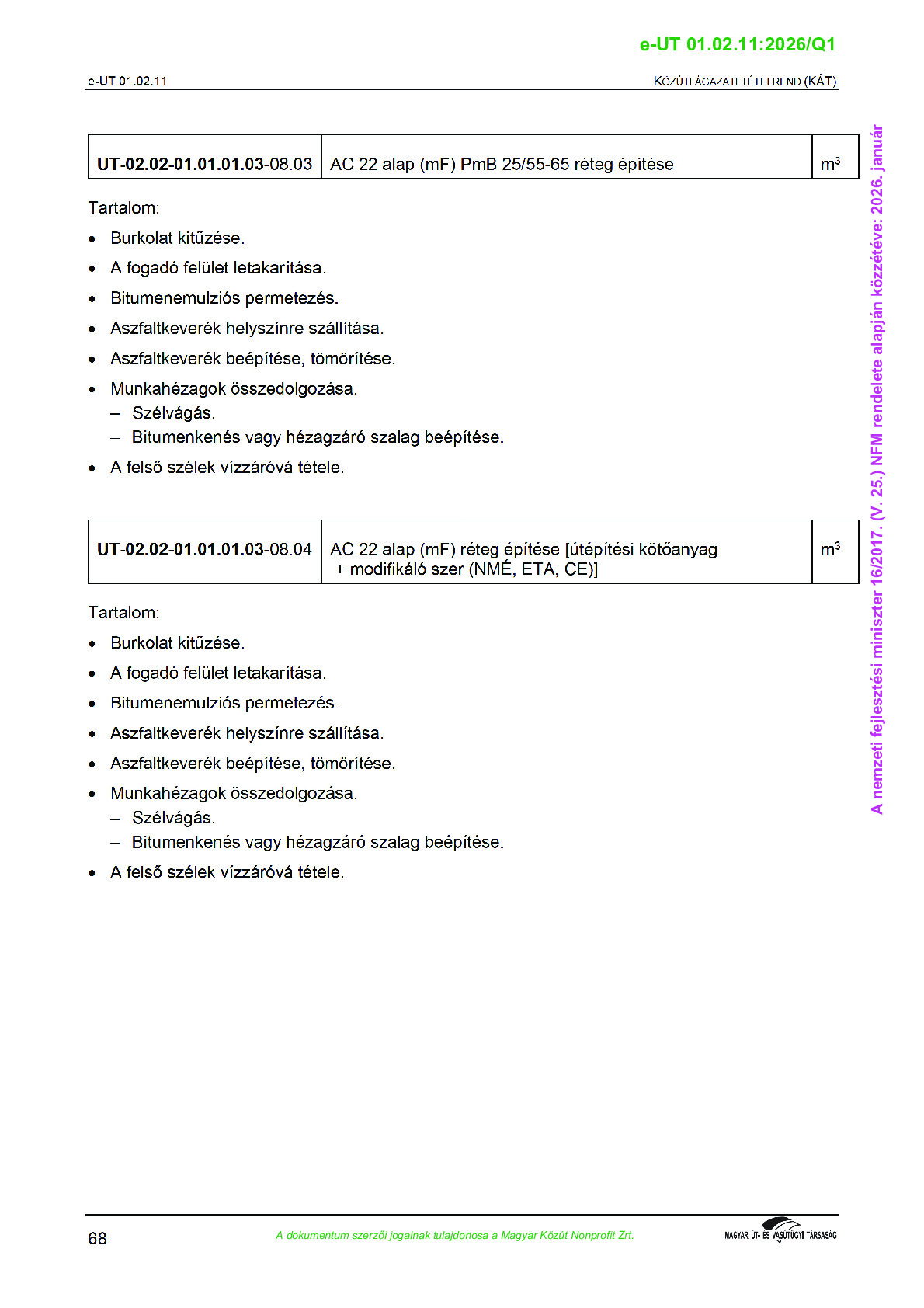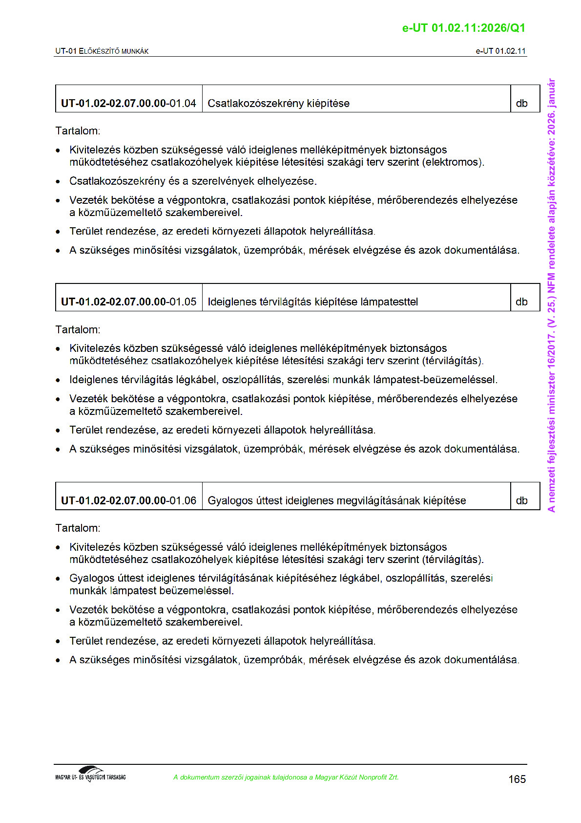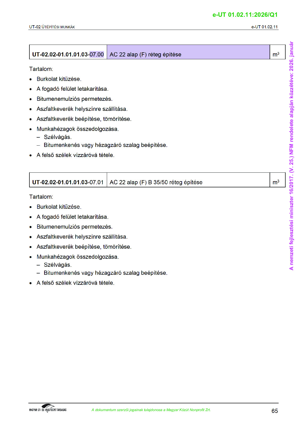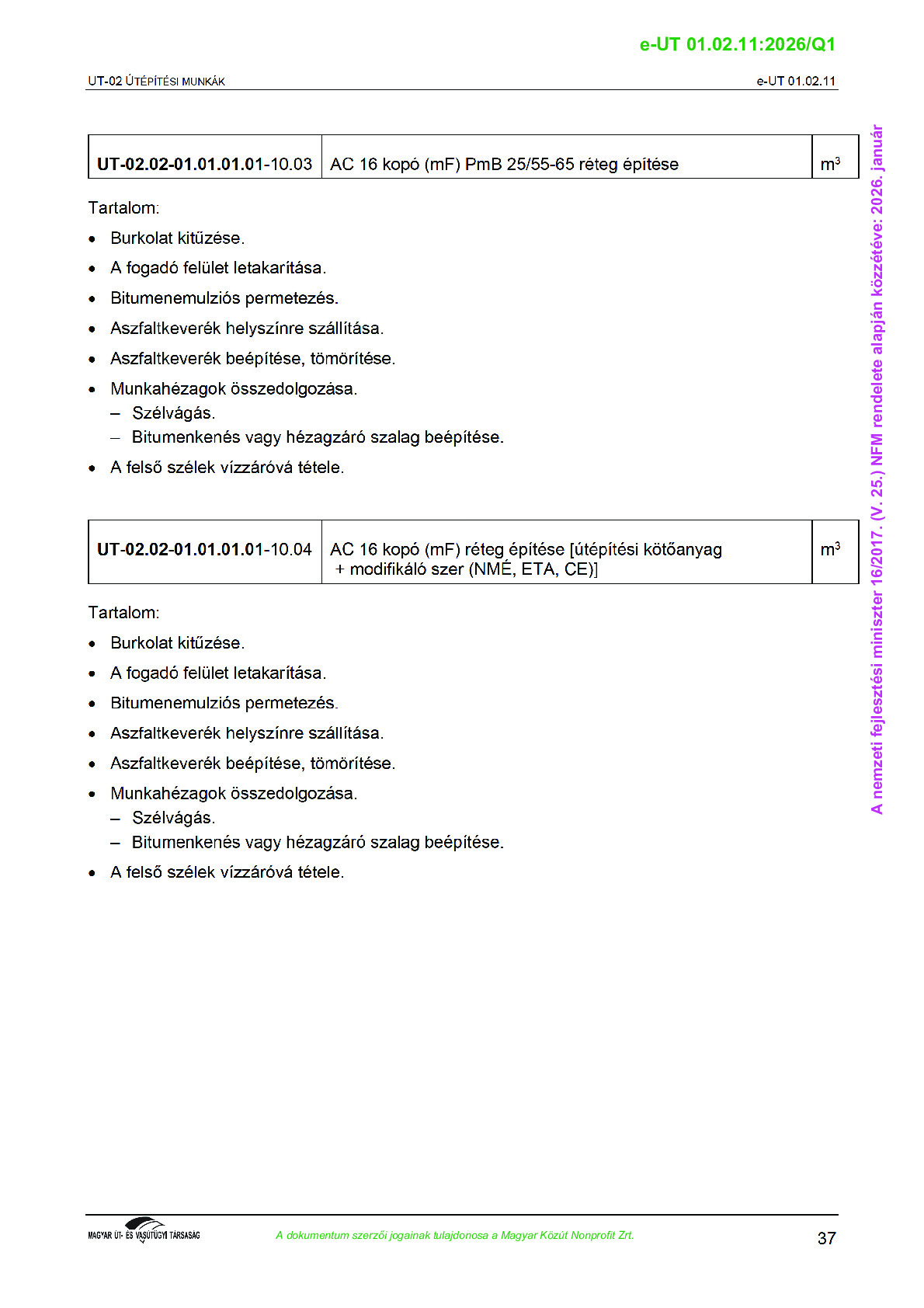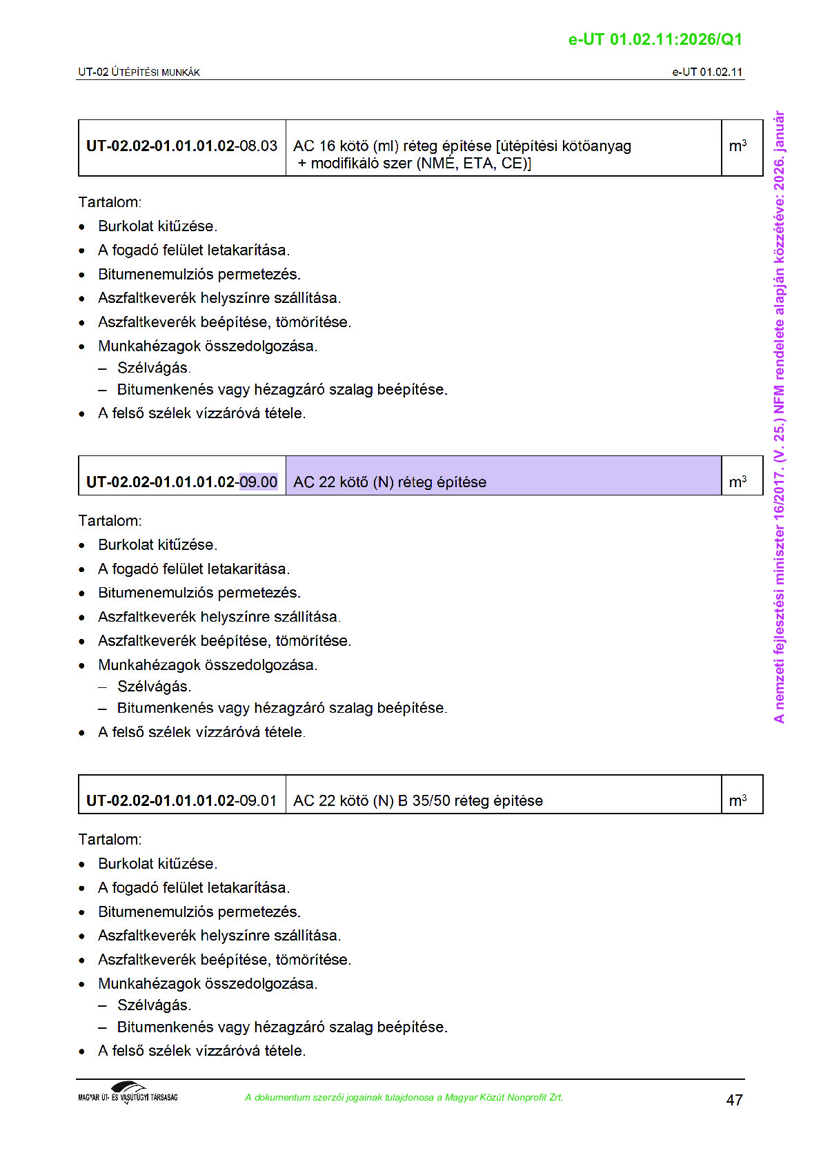 Érvényben lévő útügyi műszaki előírások