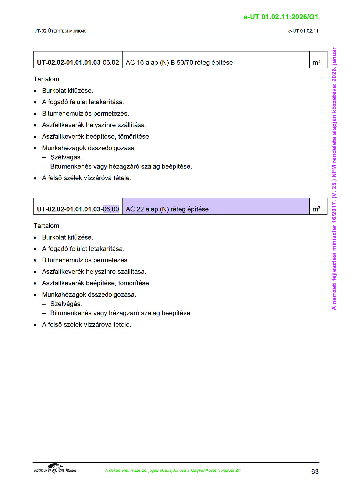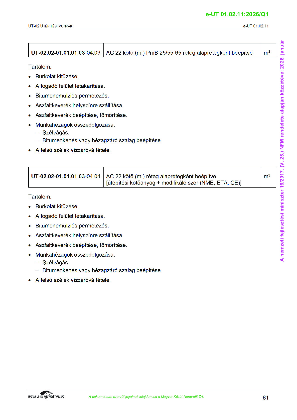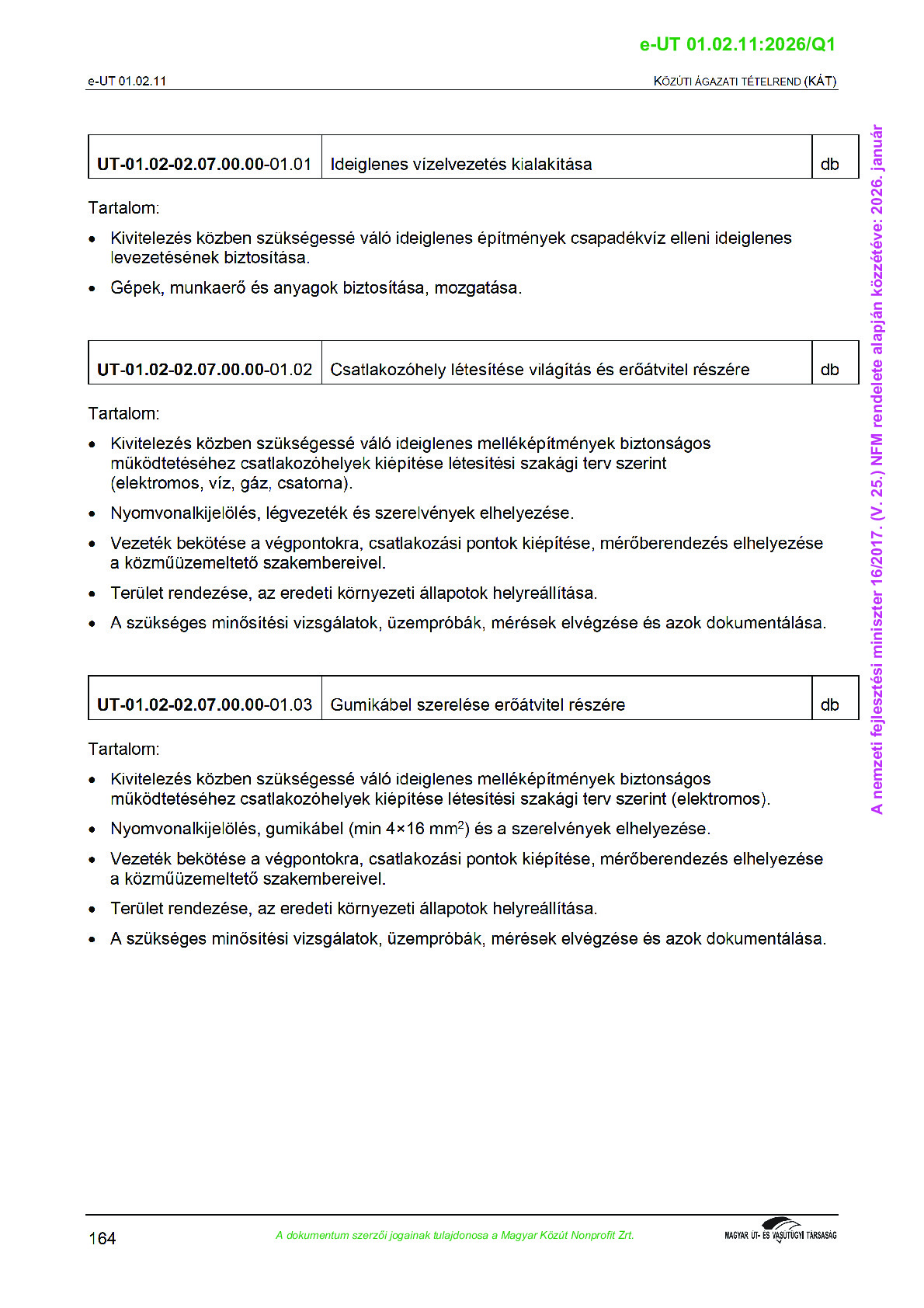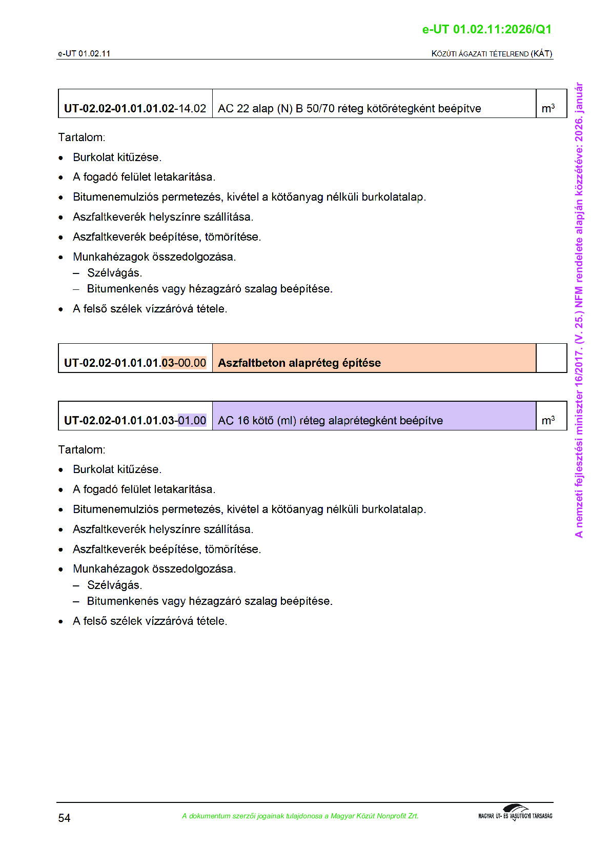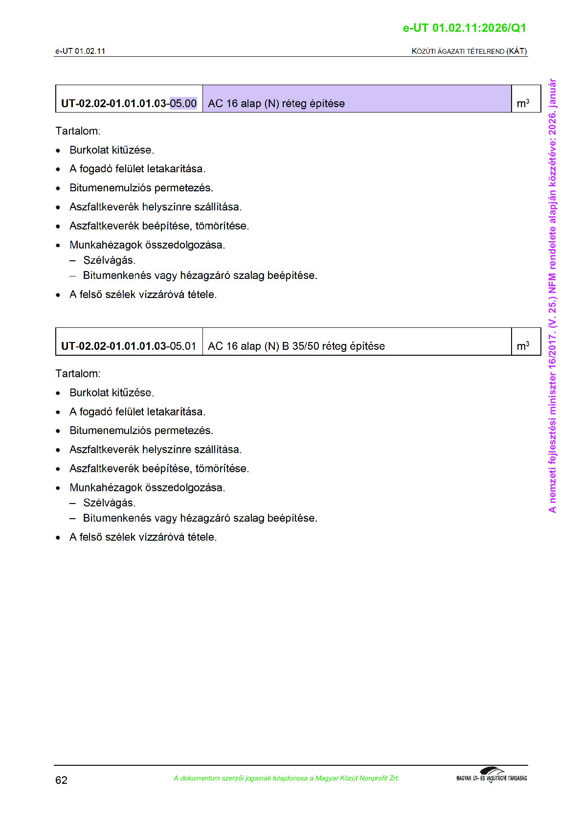 Érvényben lévő útügyi műszaki előírások