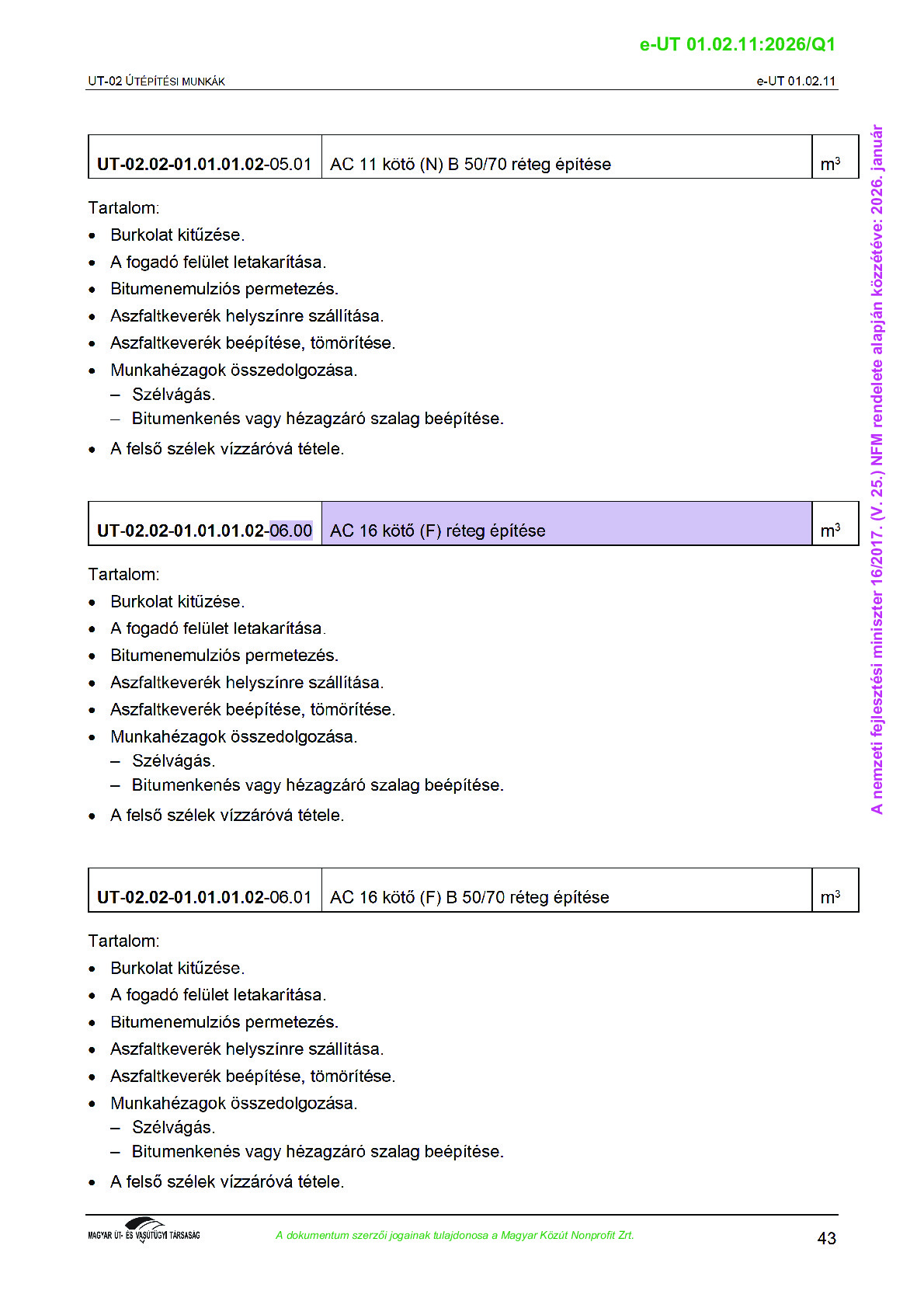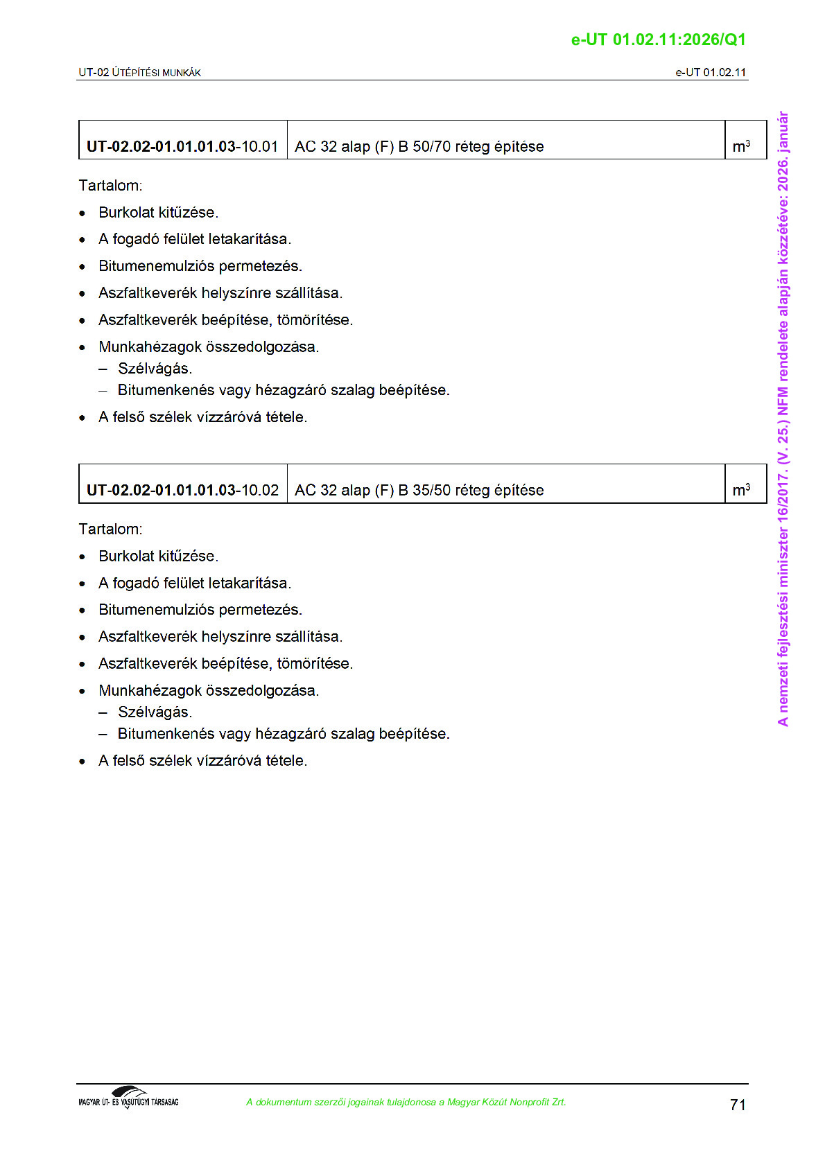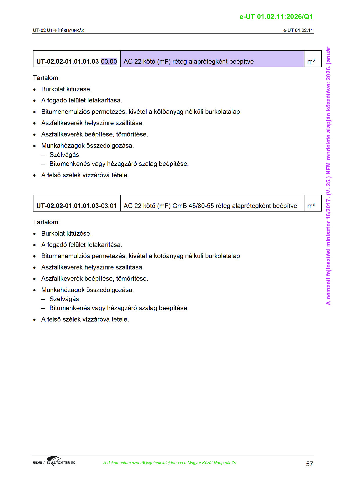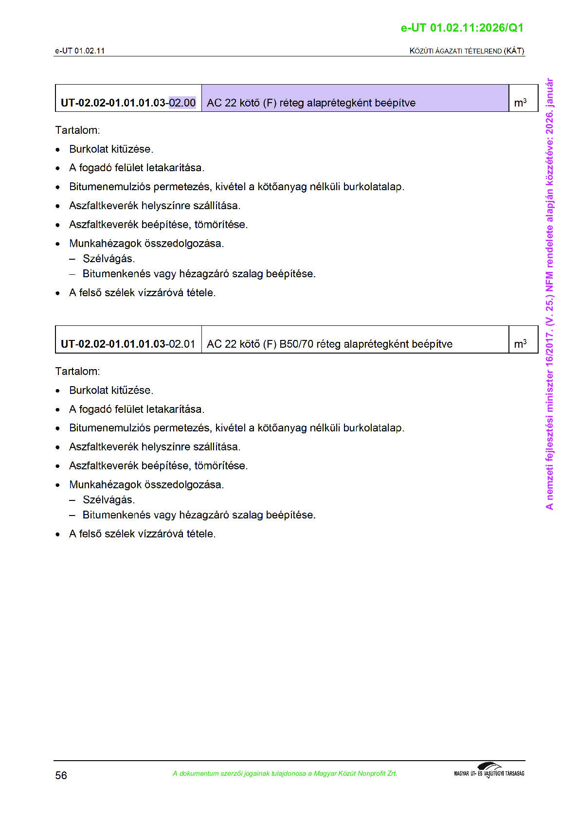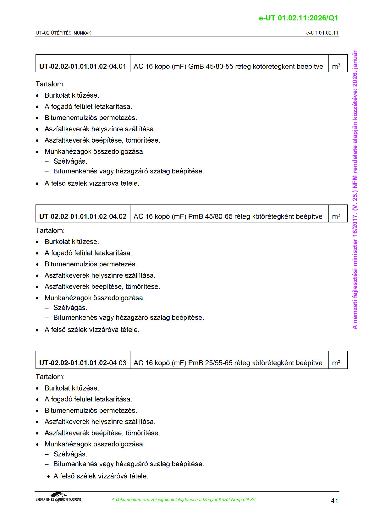 Érvényben lévő útügyi műszaki előírások
