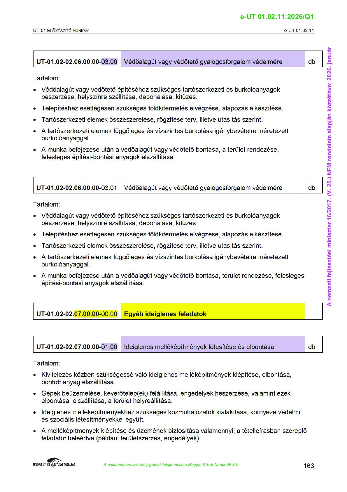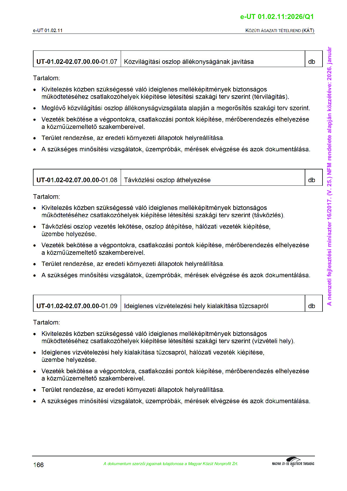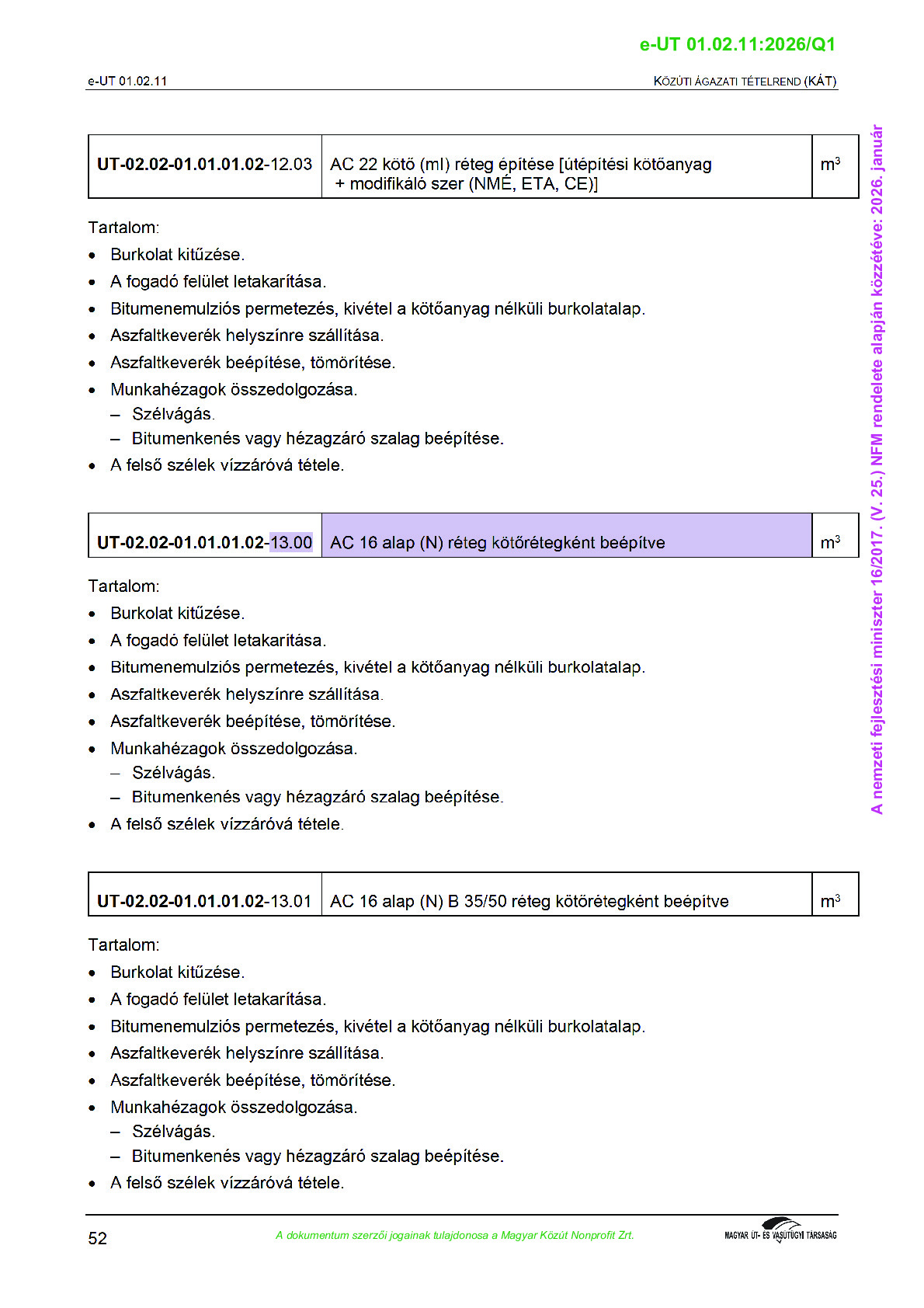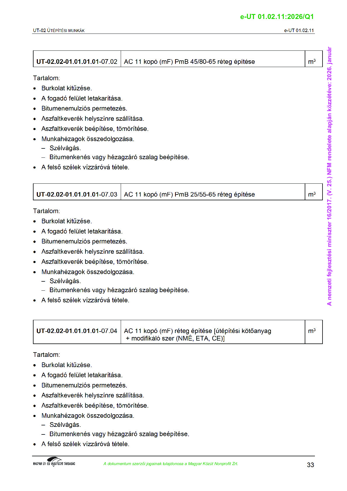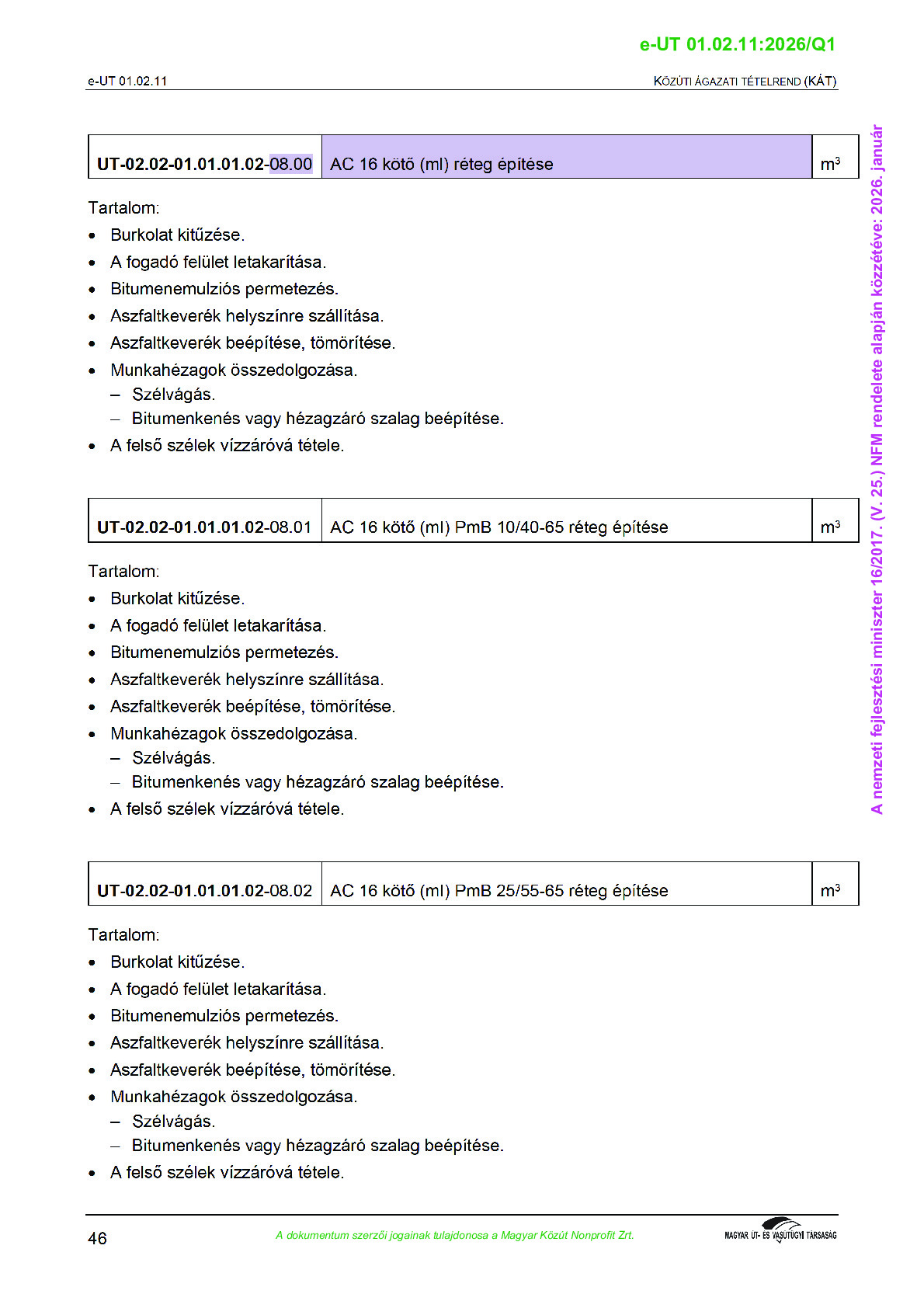 Érvényben lévő útügyi műszaki előírások