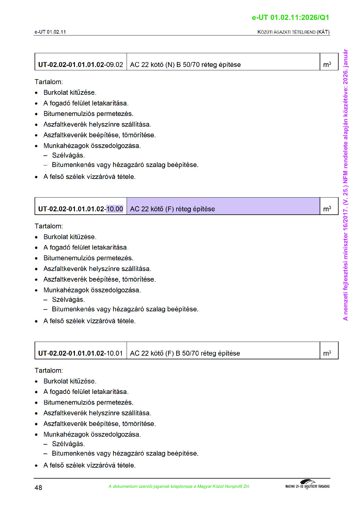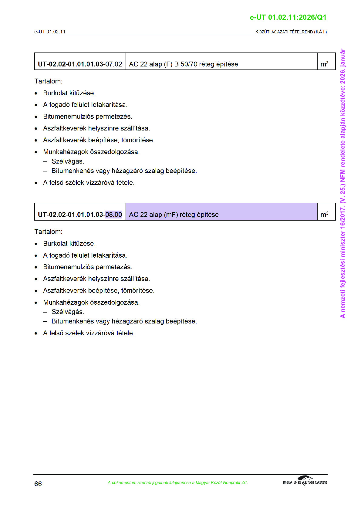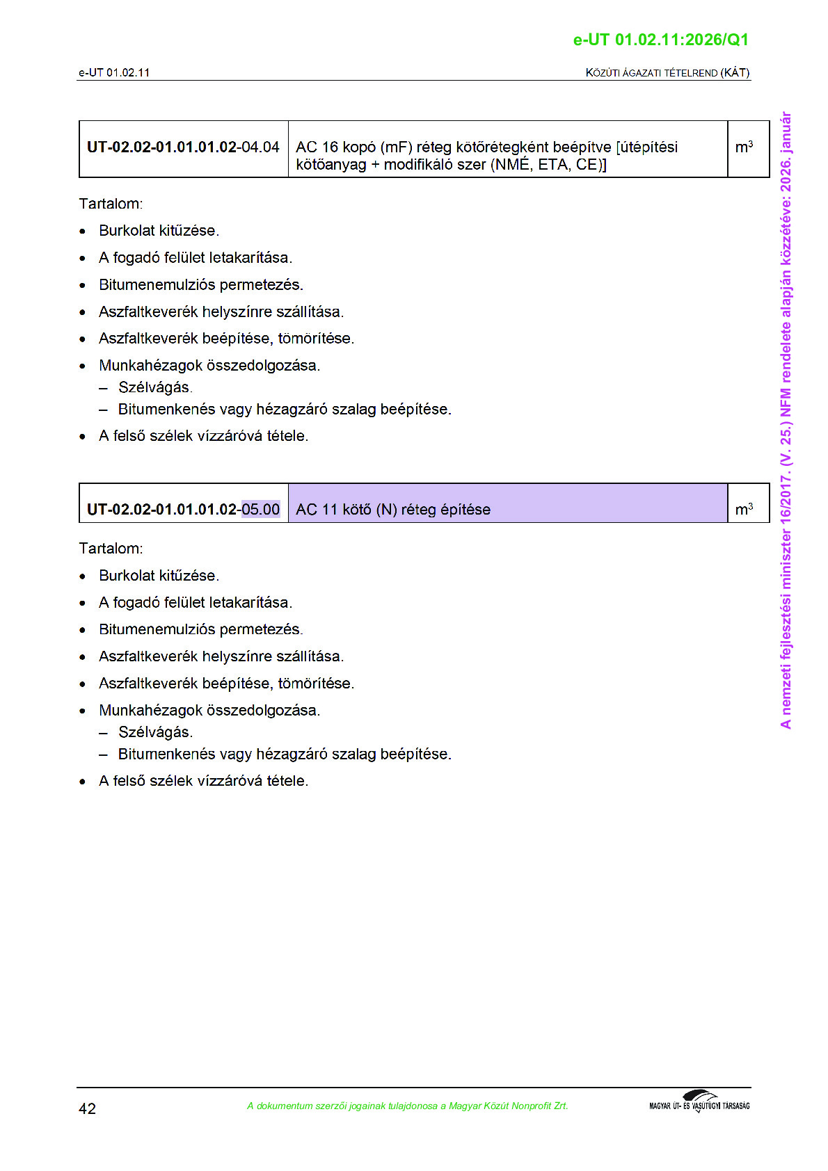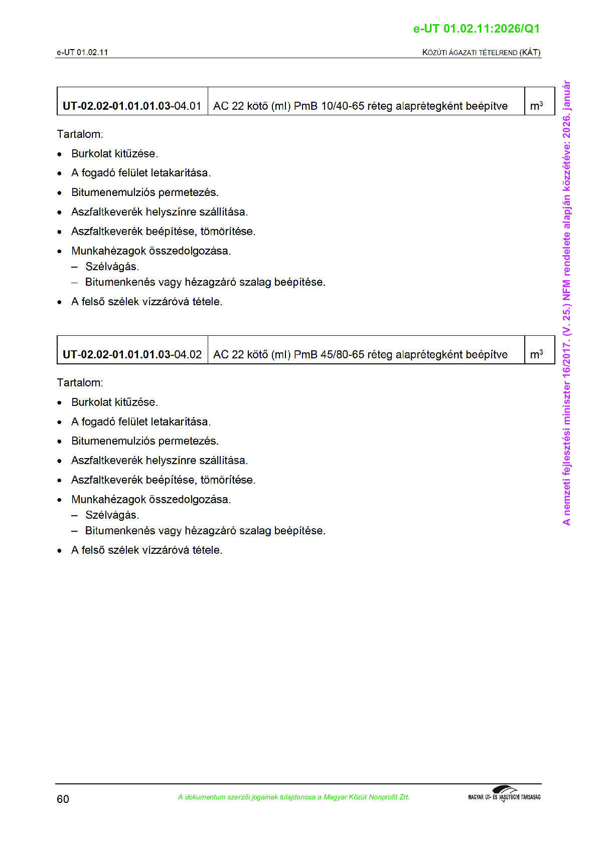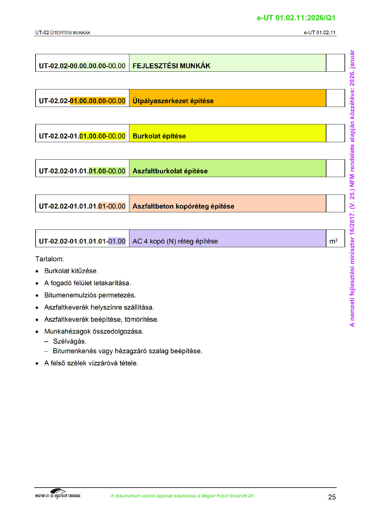 Érvényben lévő útügyi műszaki előírások