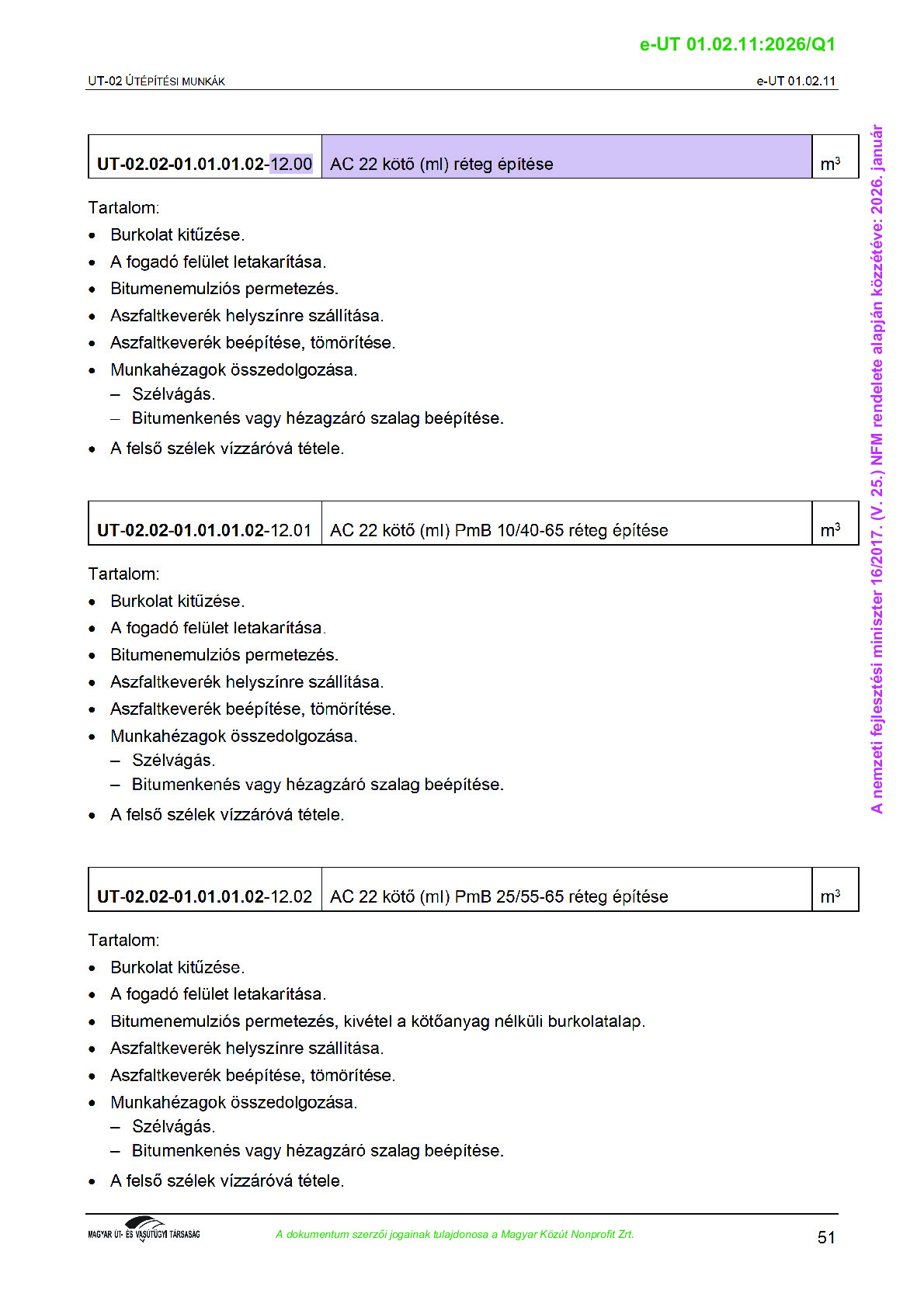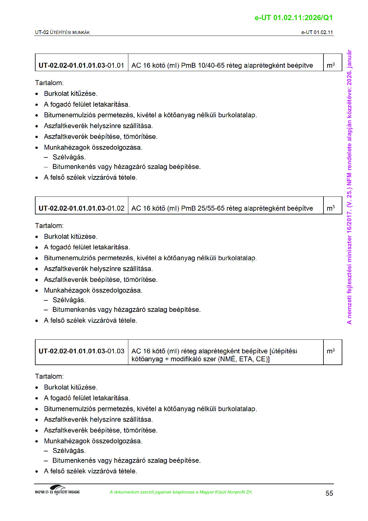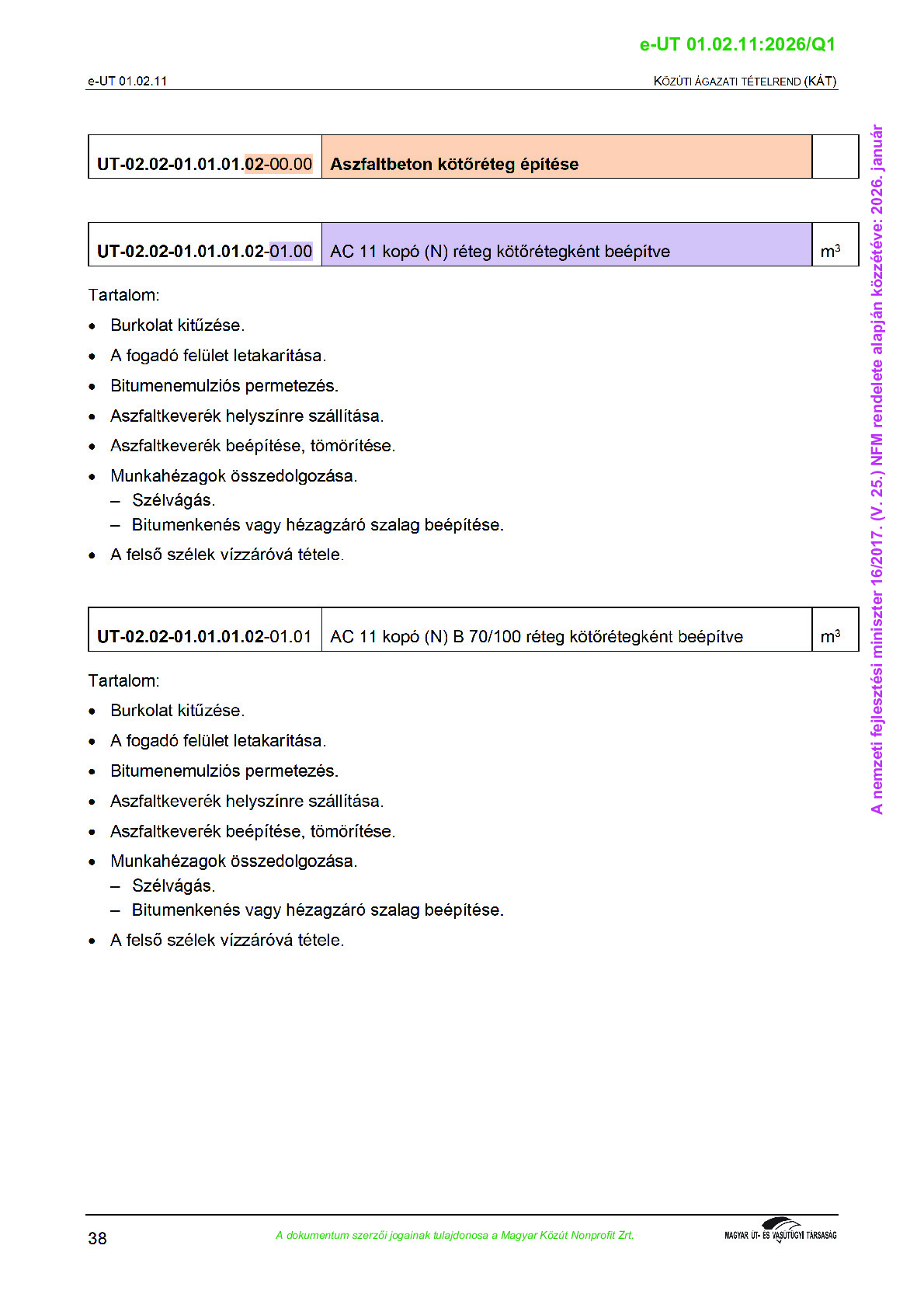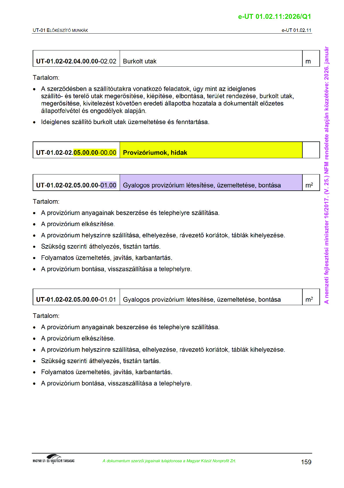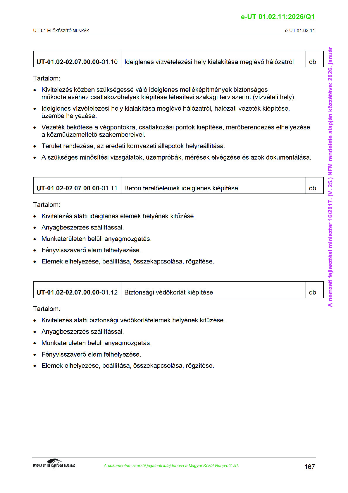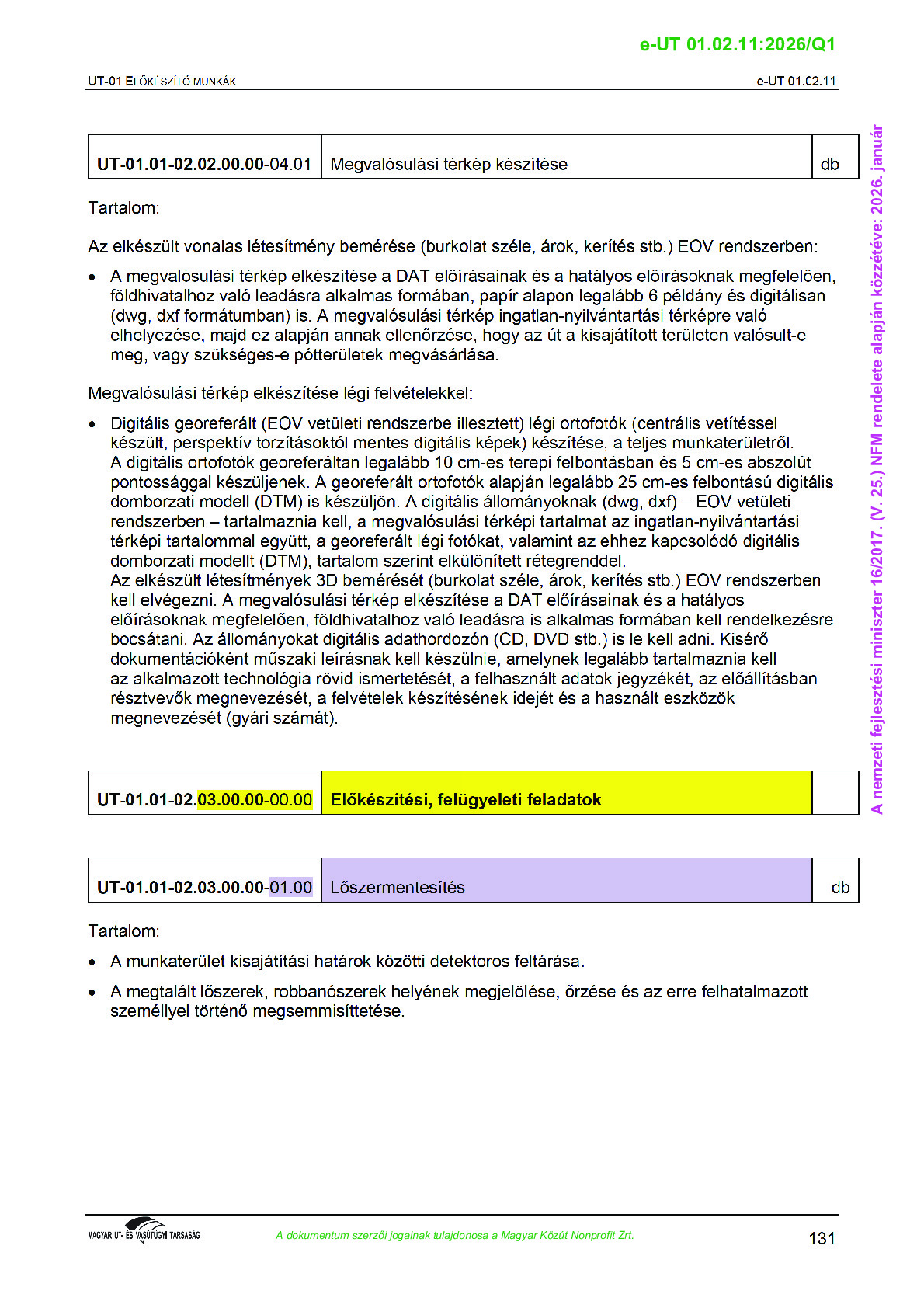 Érvényben lévő útügyi műszaki előírások