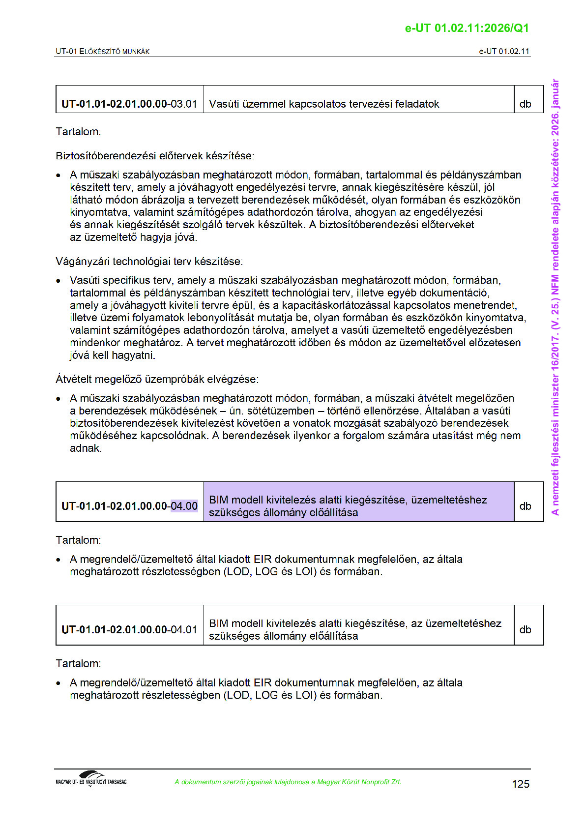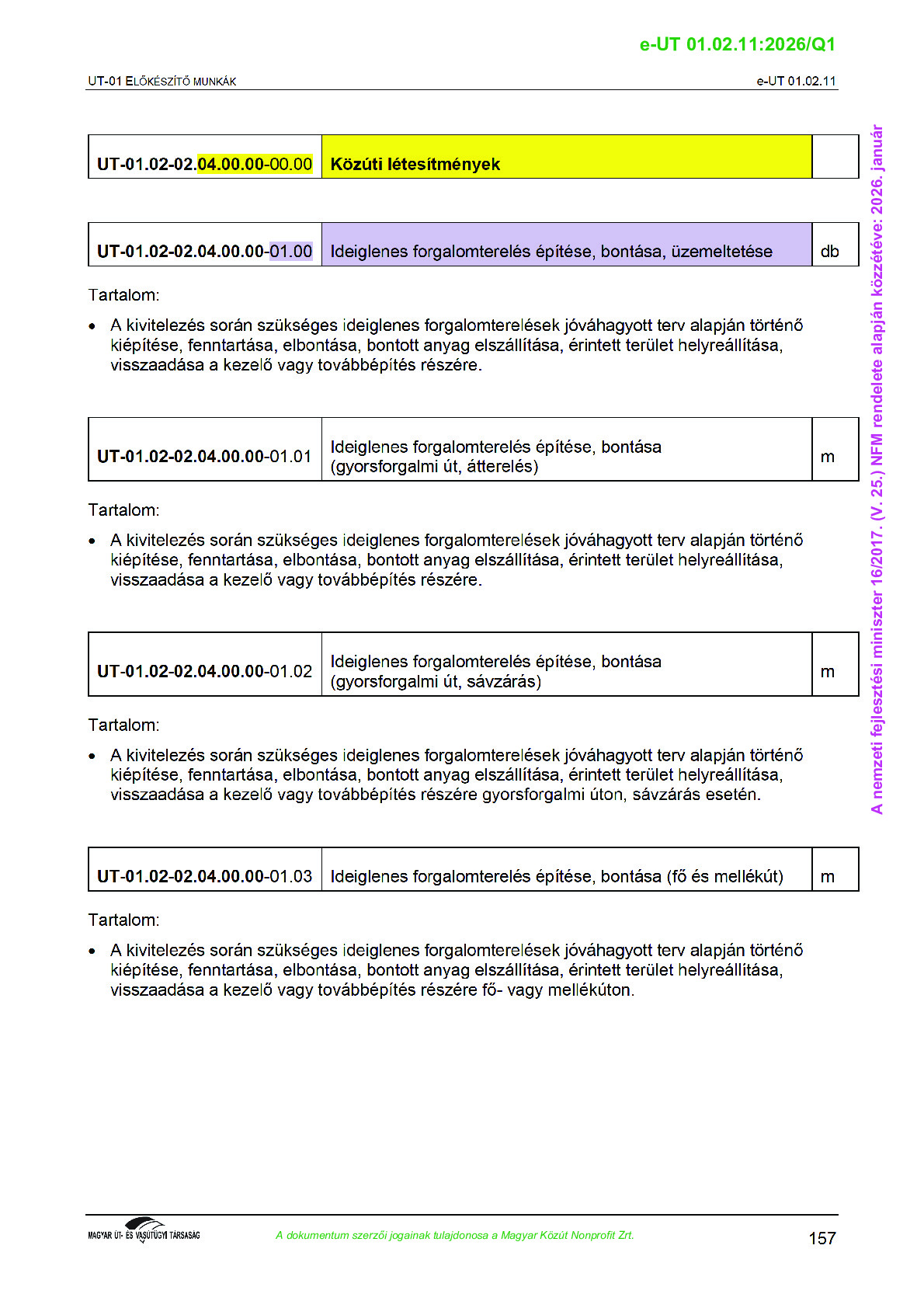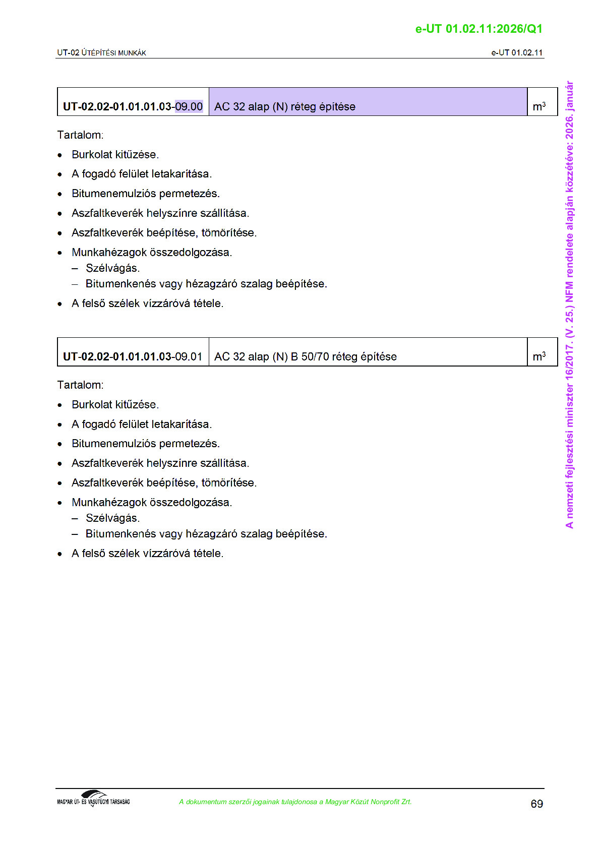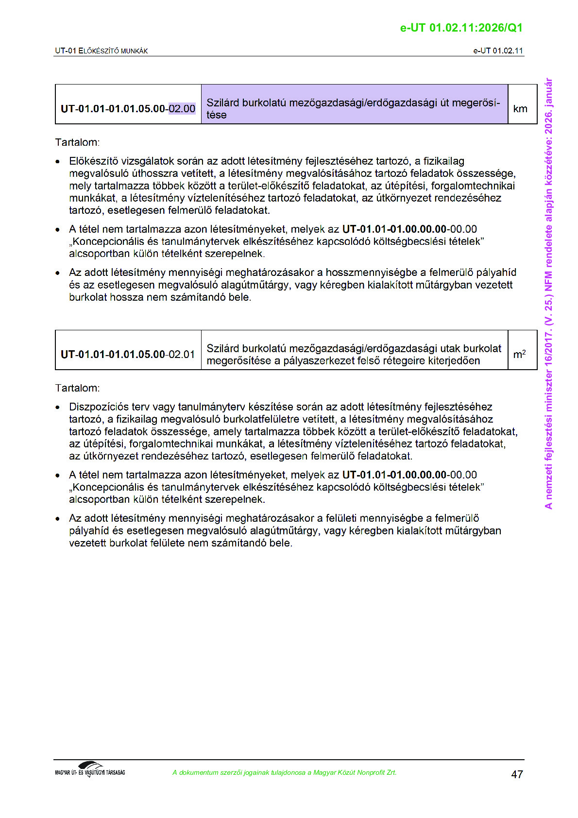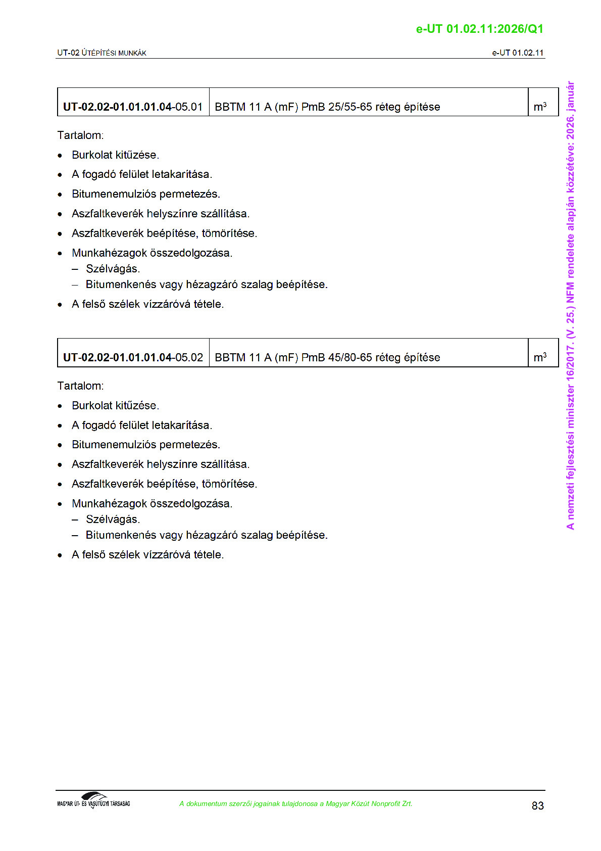 Érvényben lévő útügyi műszaki előírások