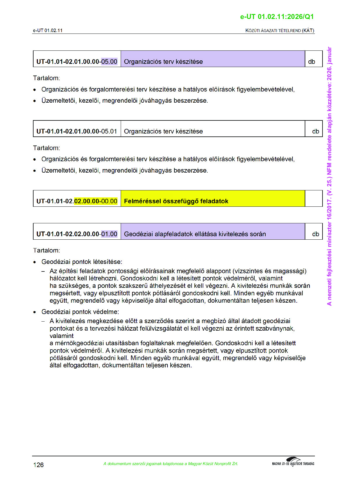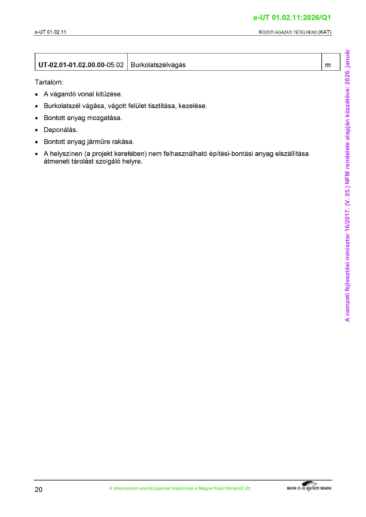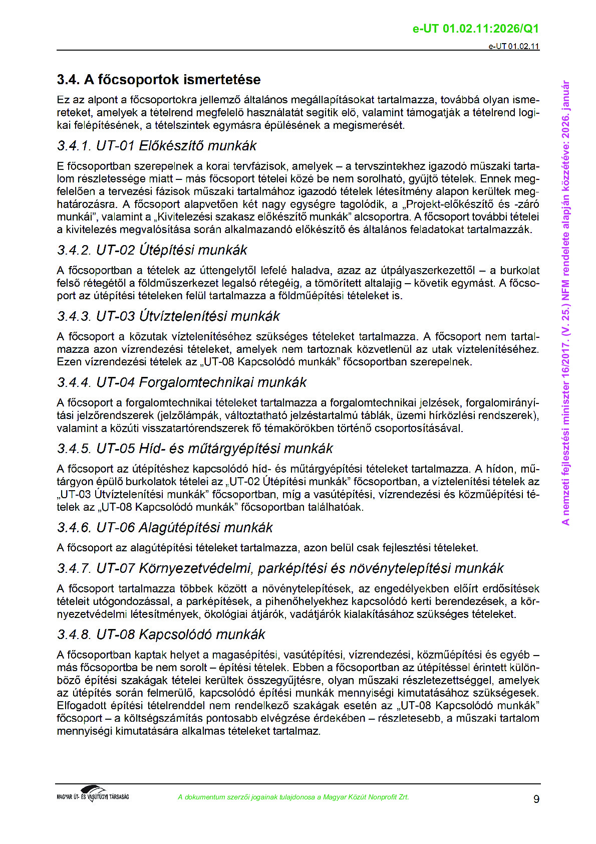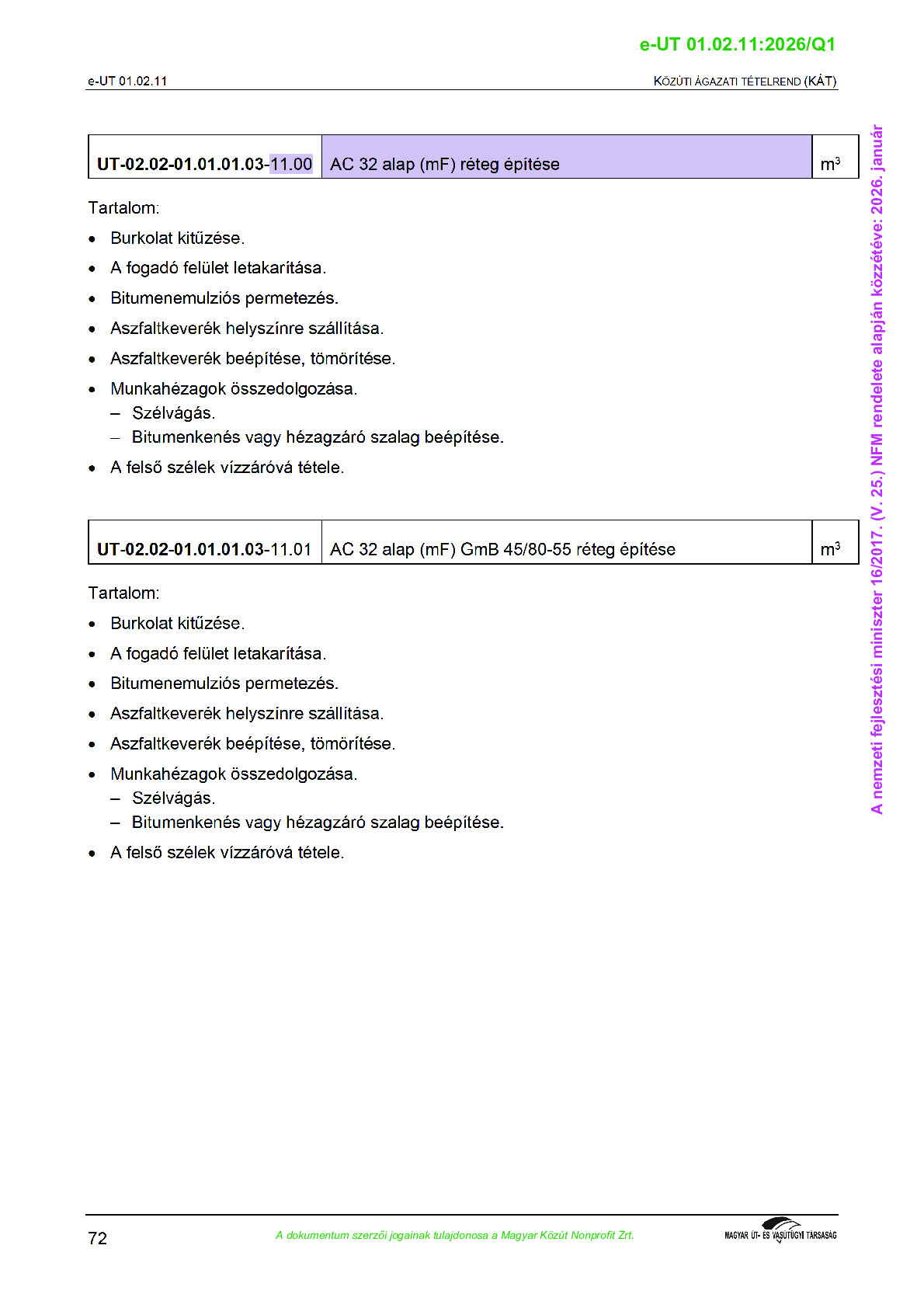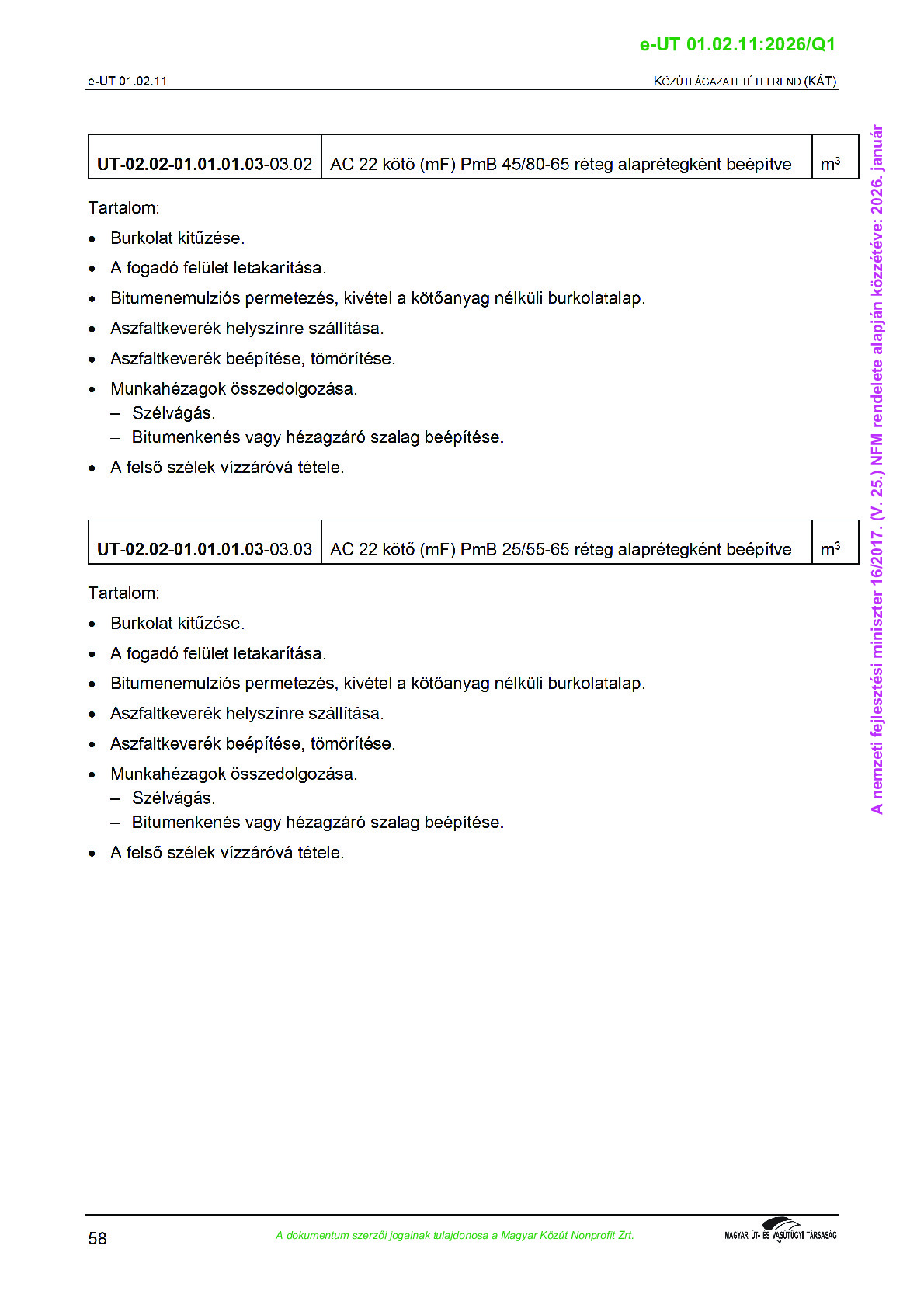 Érvényben lévő útügyi műszaki előírások