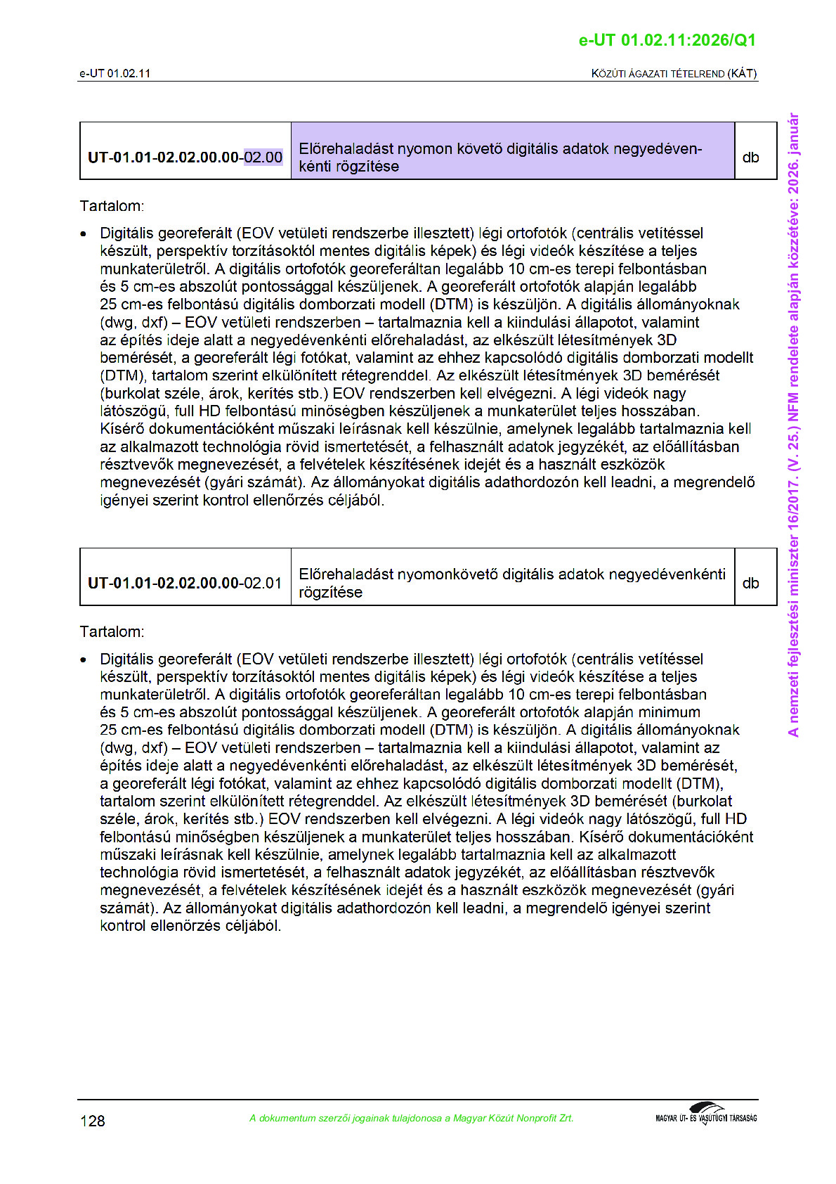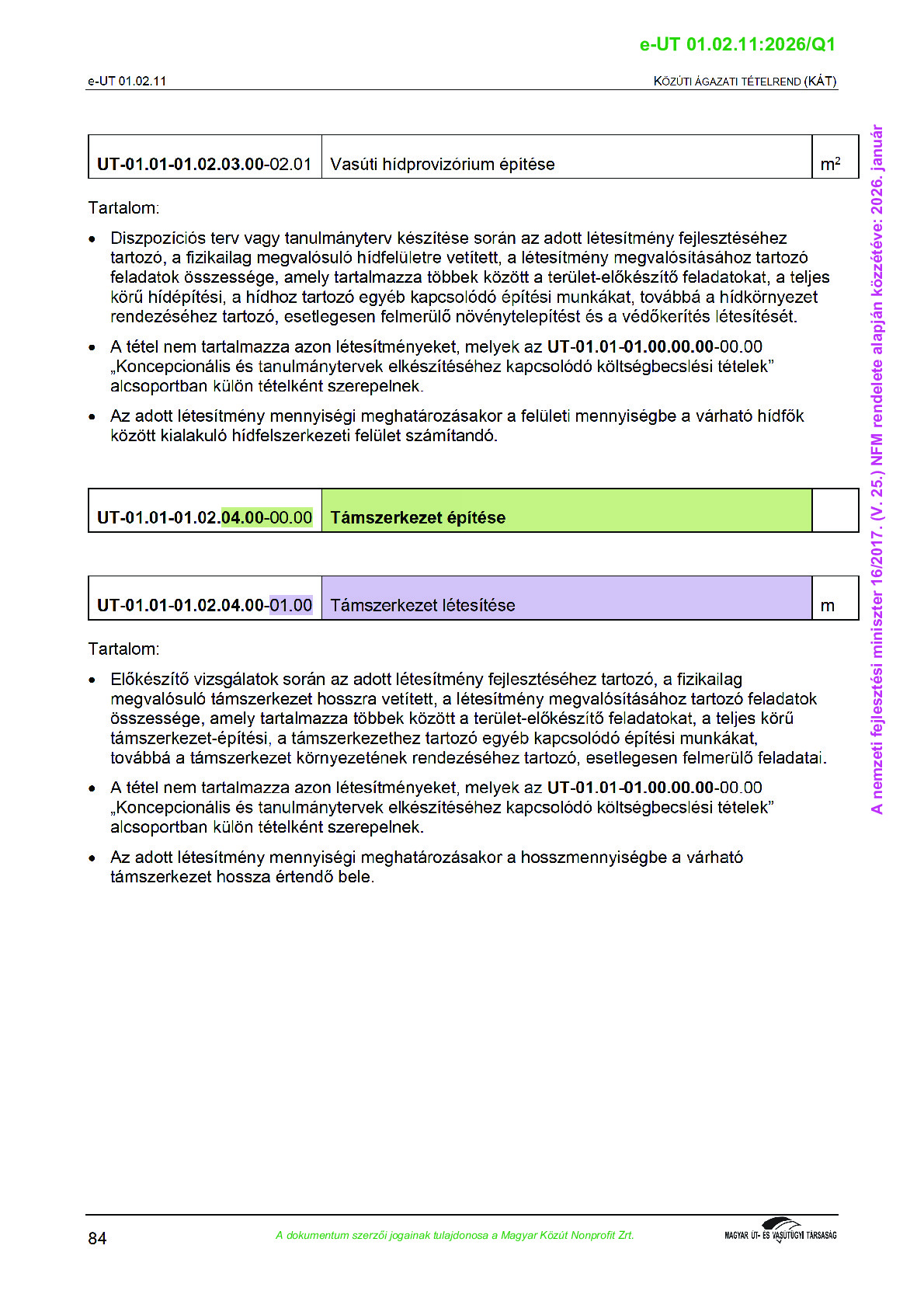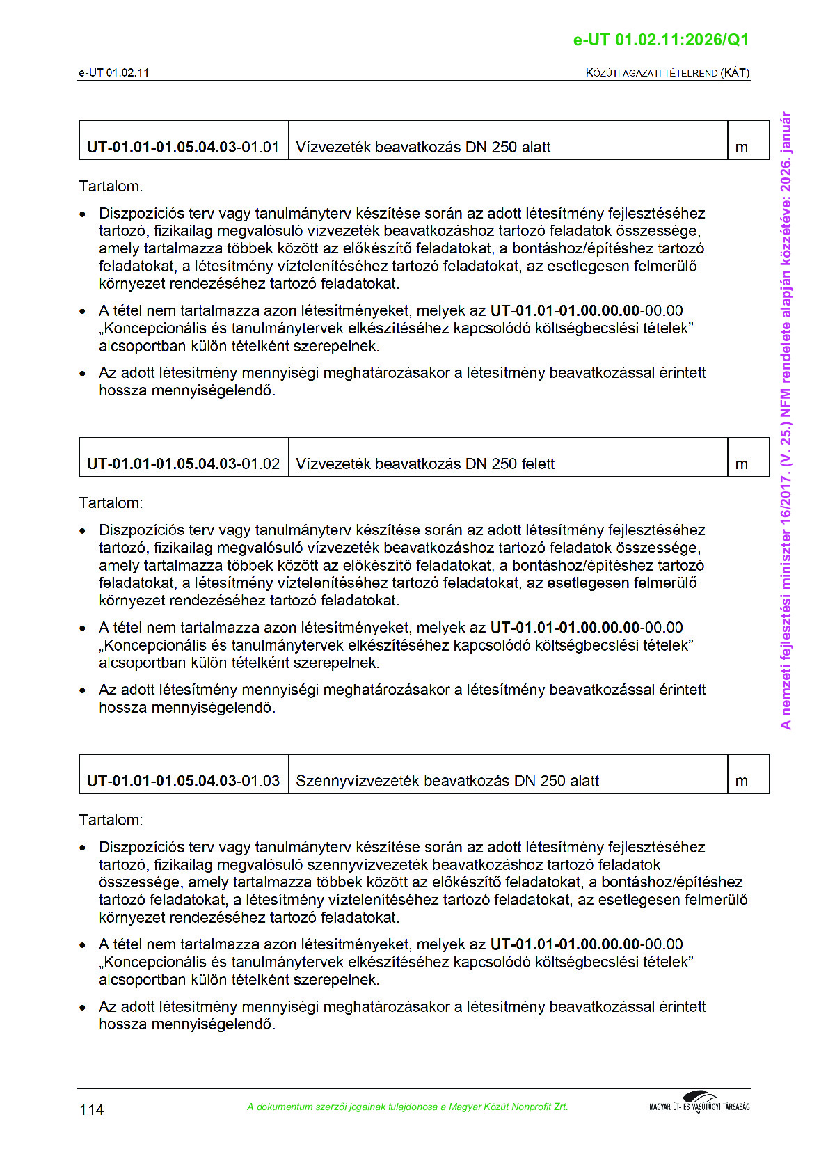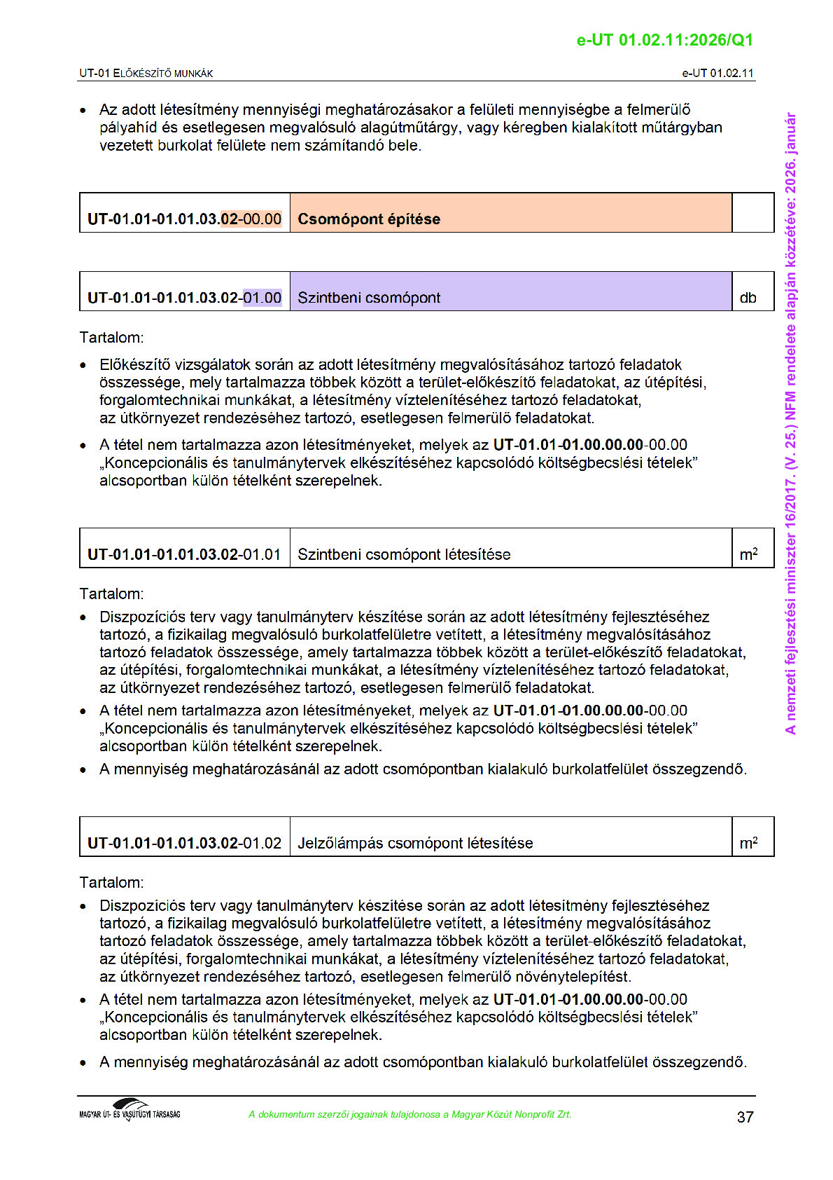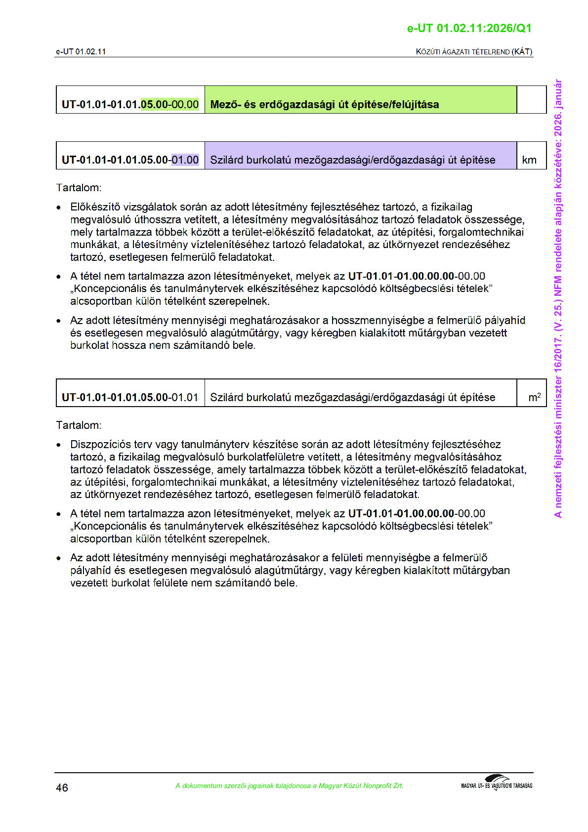 Érvényben lévő útügyi műszaki előírások
