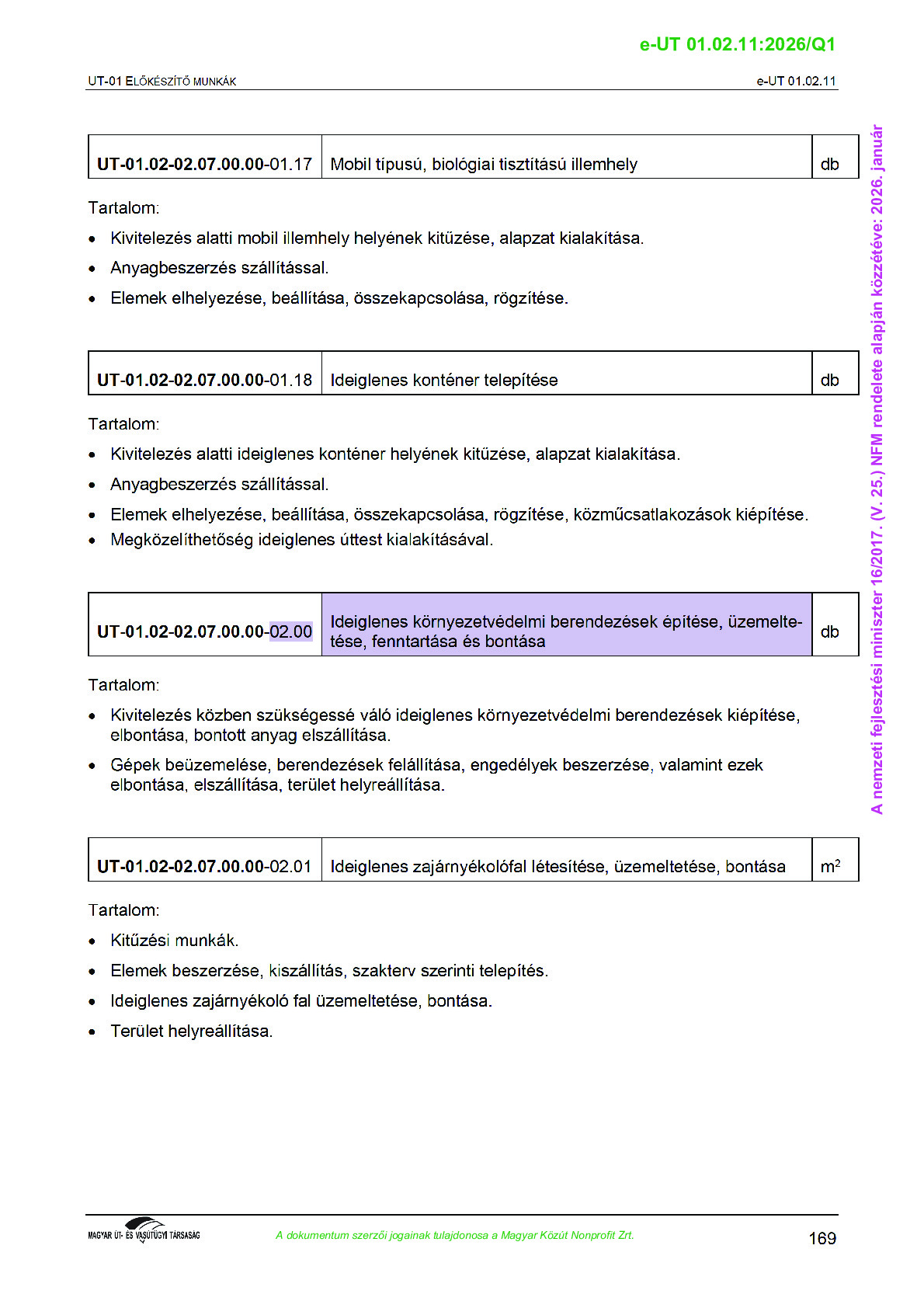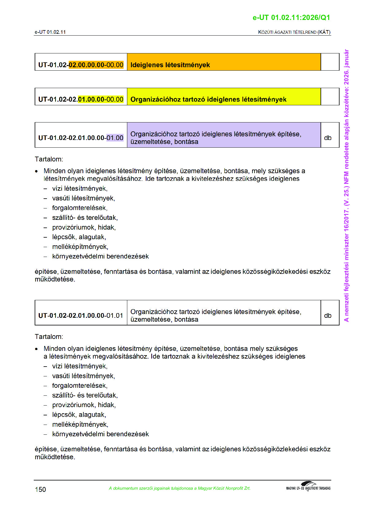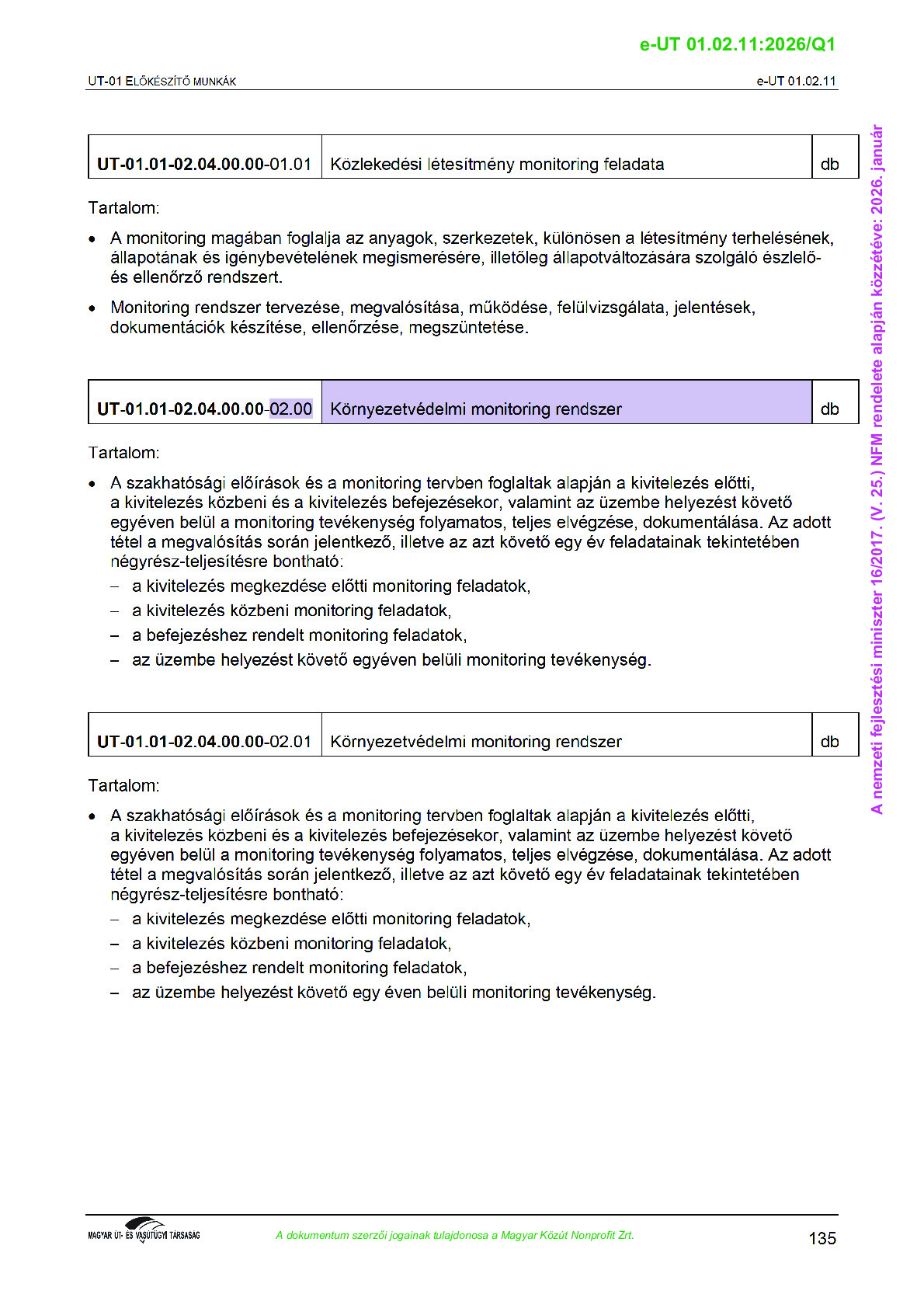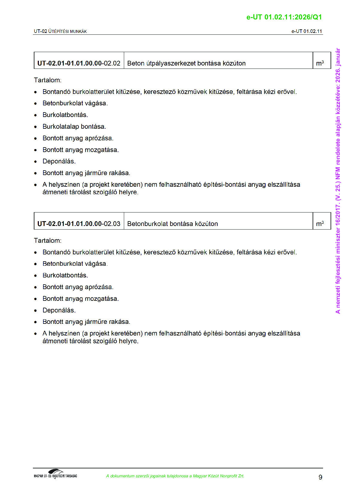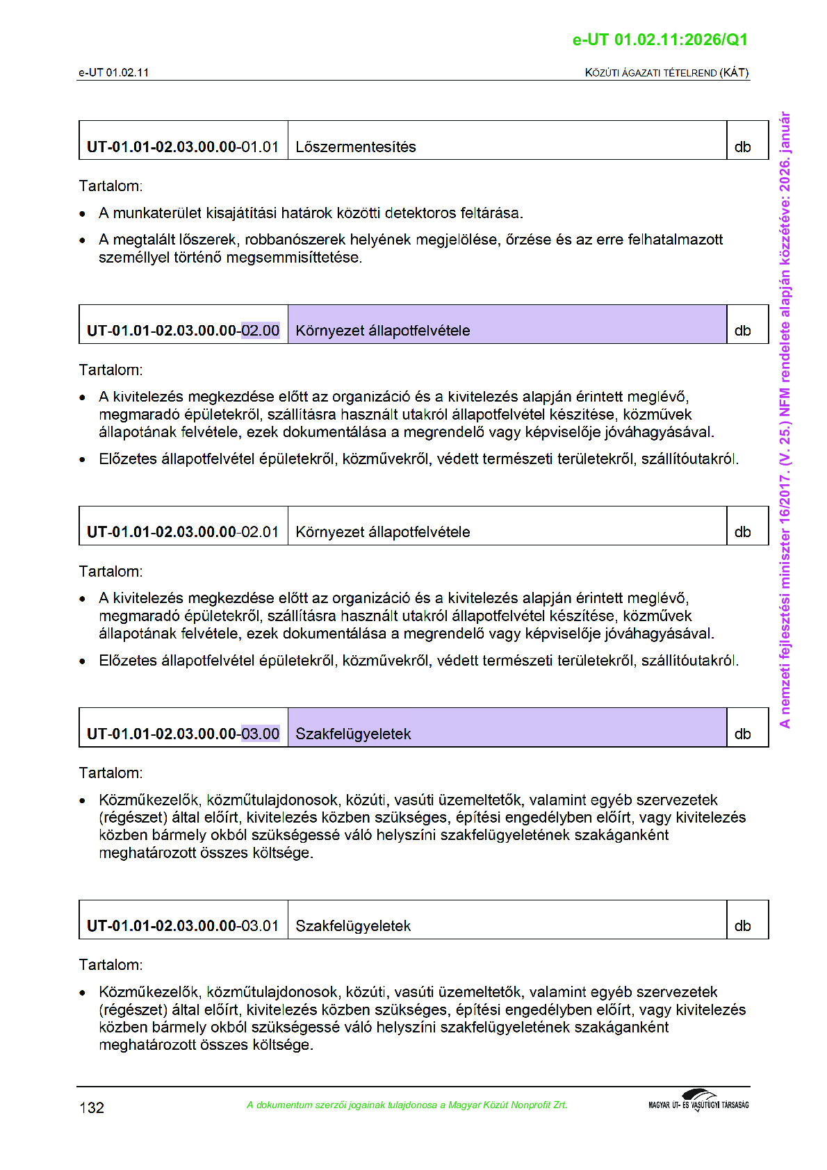 Érvényben lévő útügyi műszaki előírások
