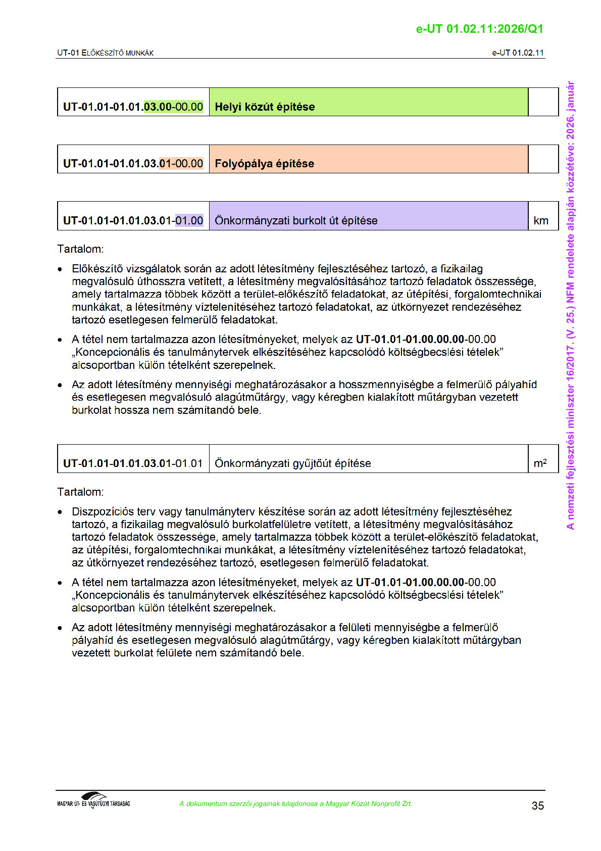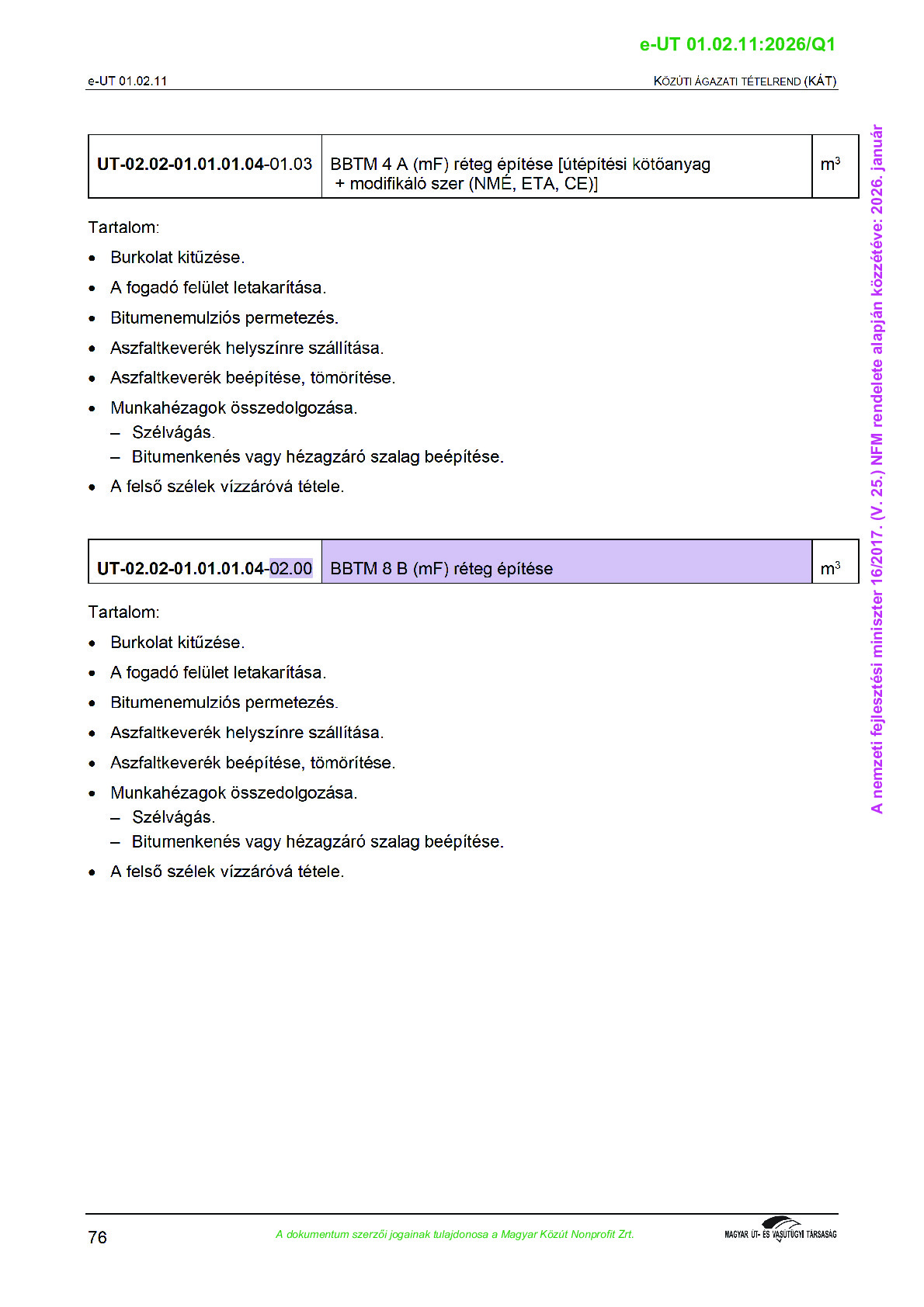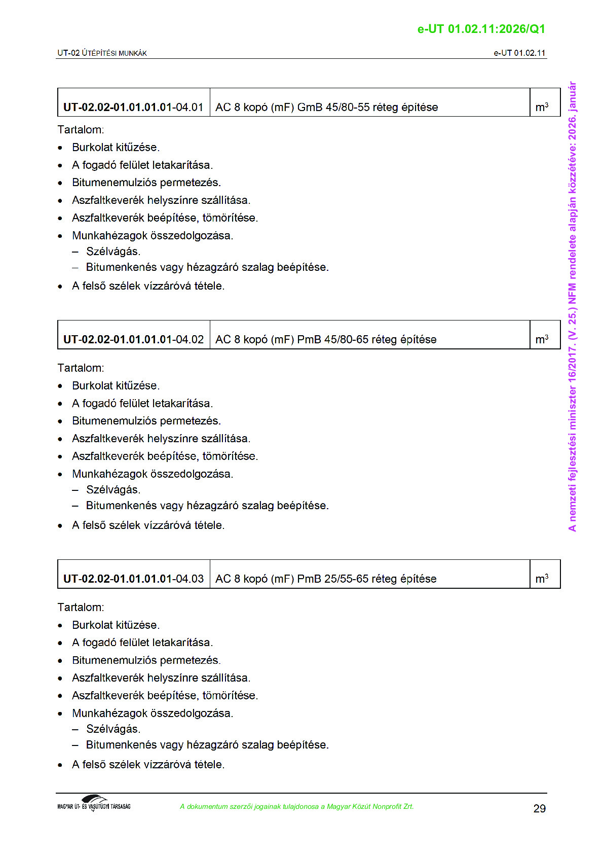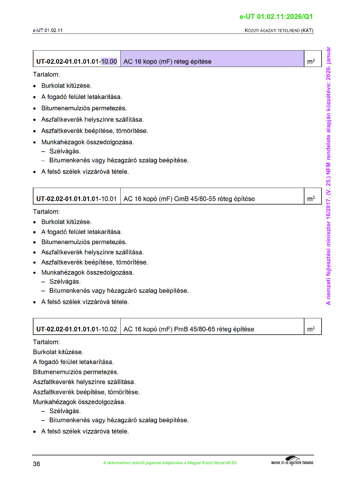 Véleményezés alatt lévő útügyi műszaki előírások