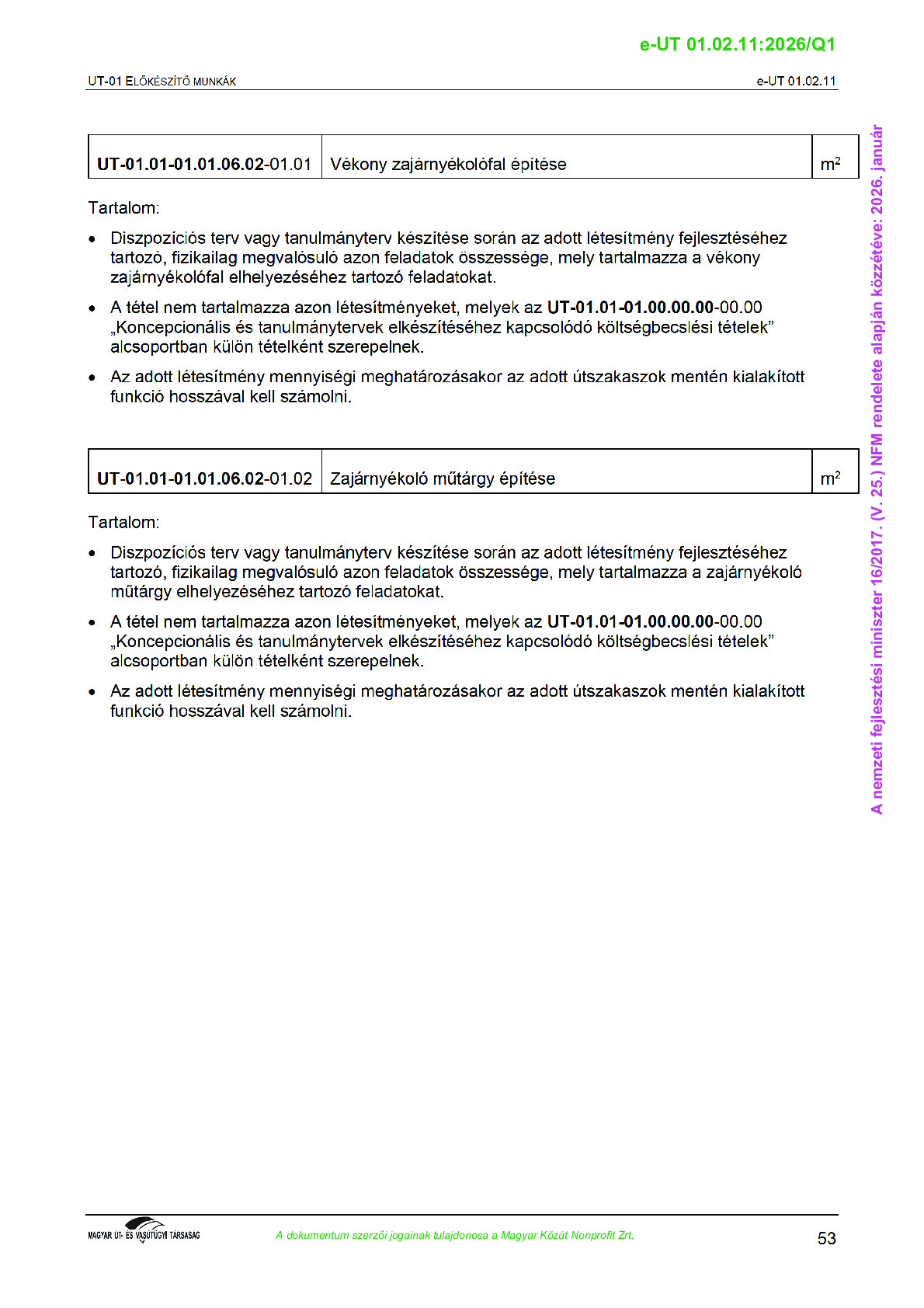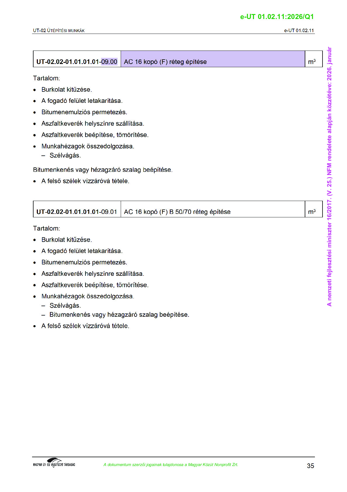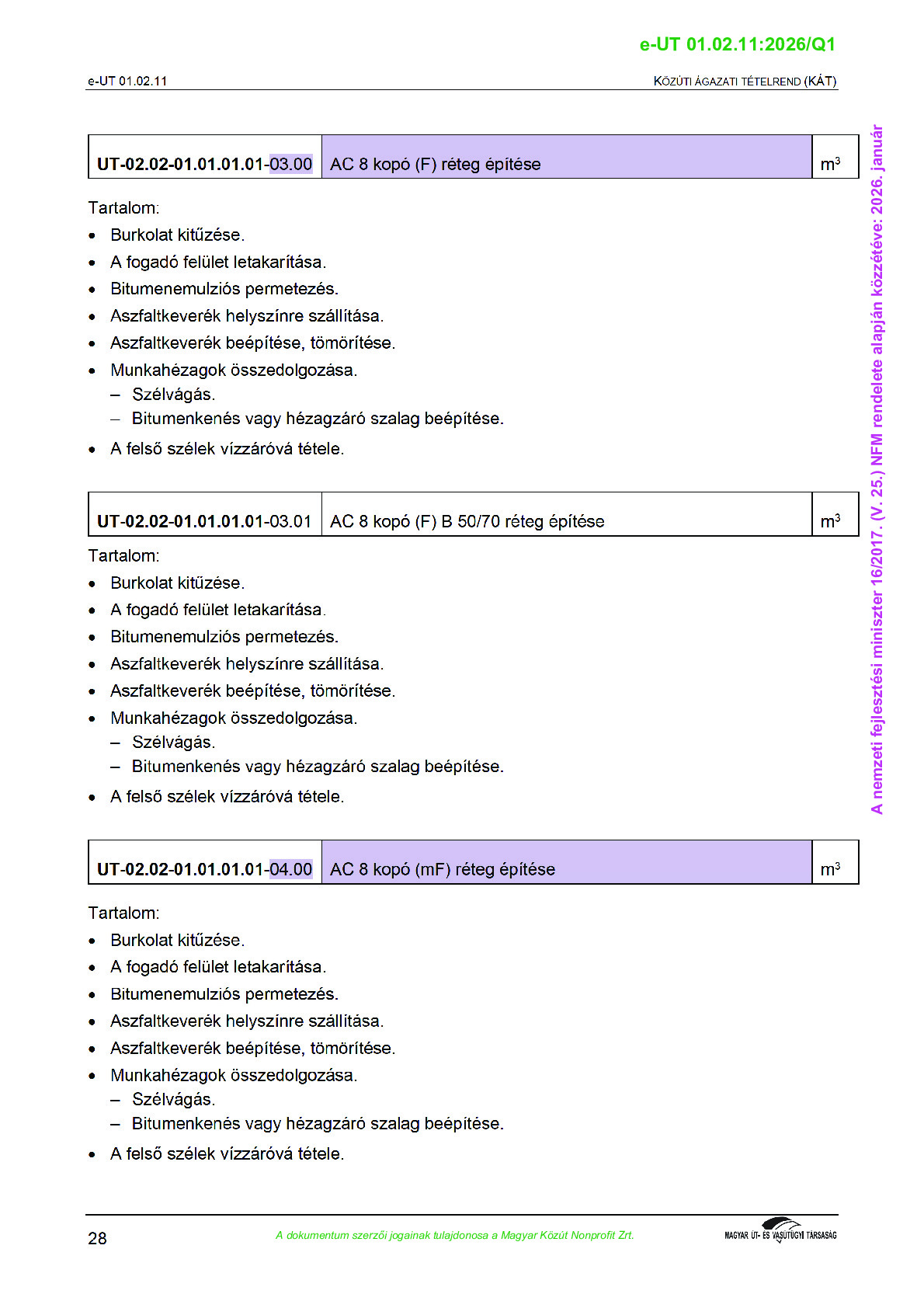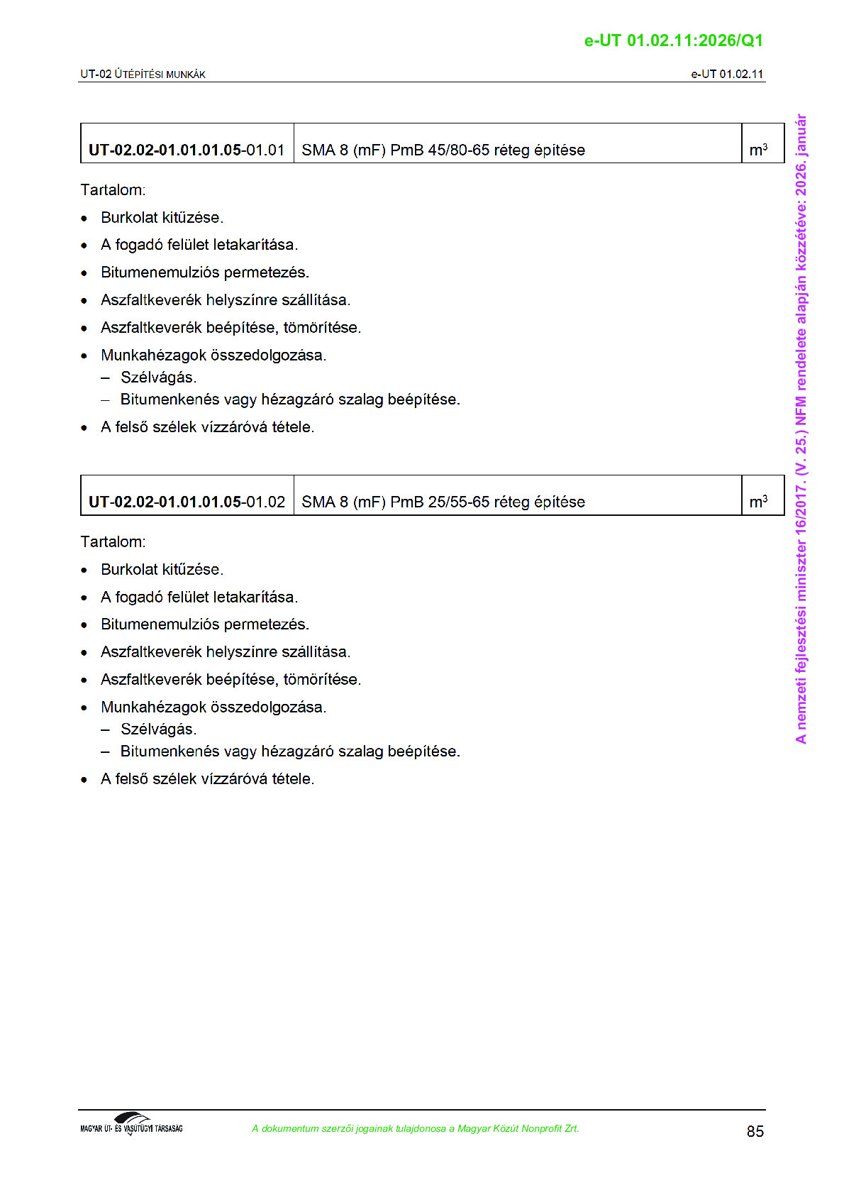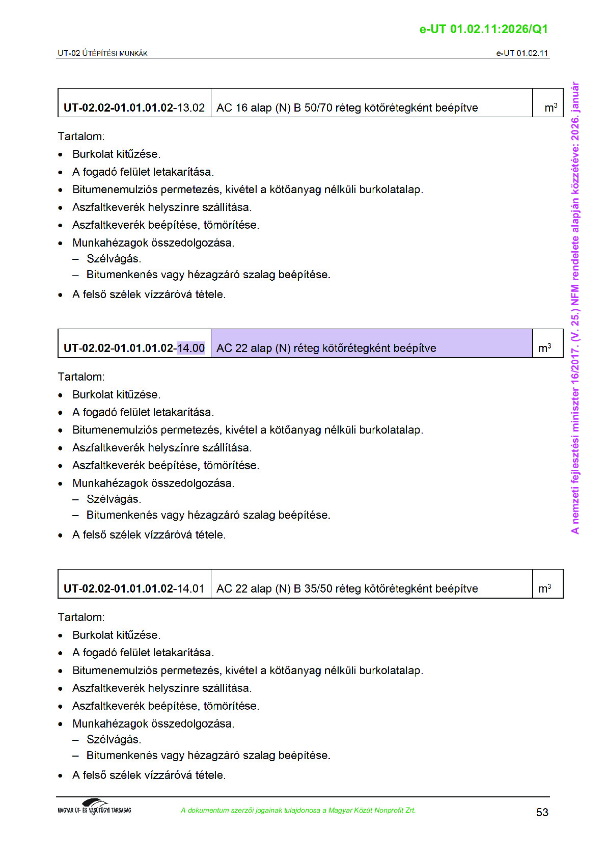 Véleményezés alatt lévő útügyi műszaki előírások
