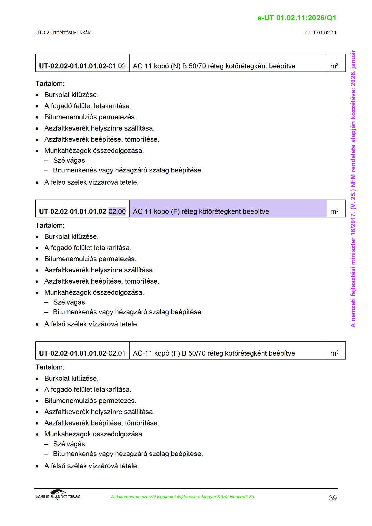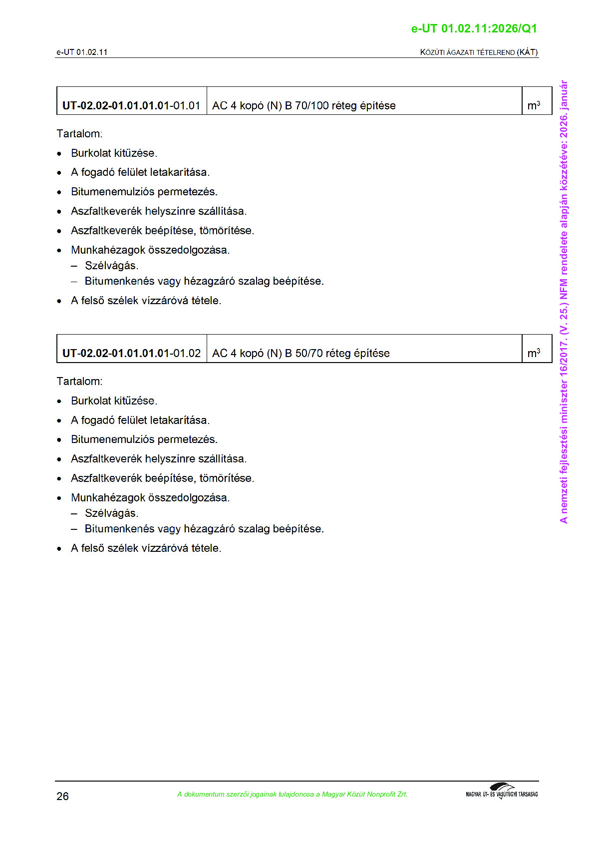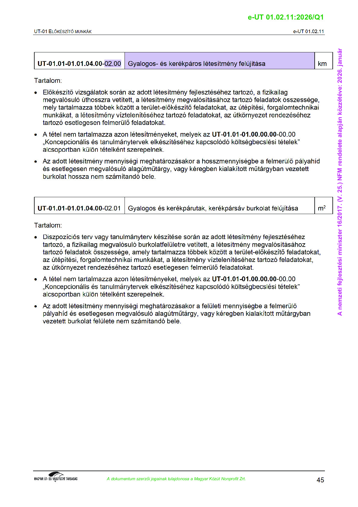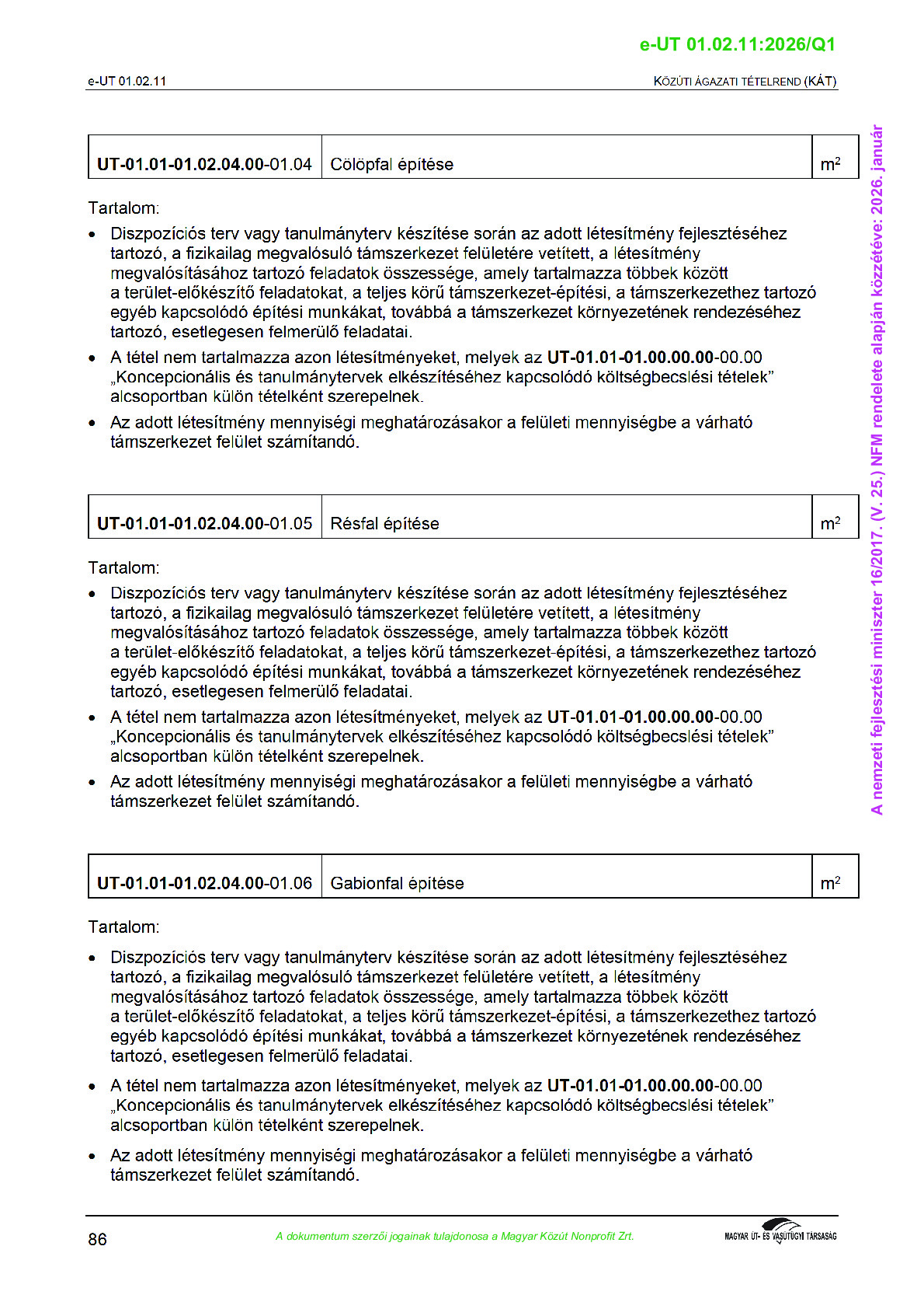 Véleményezés alatt lévő útügyi műszaki előírások
