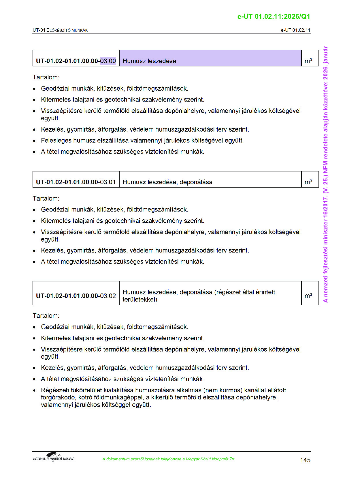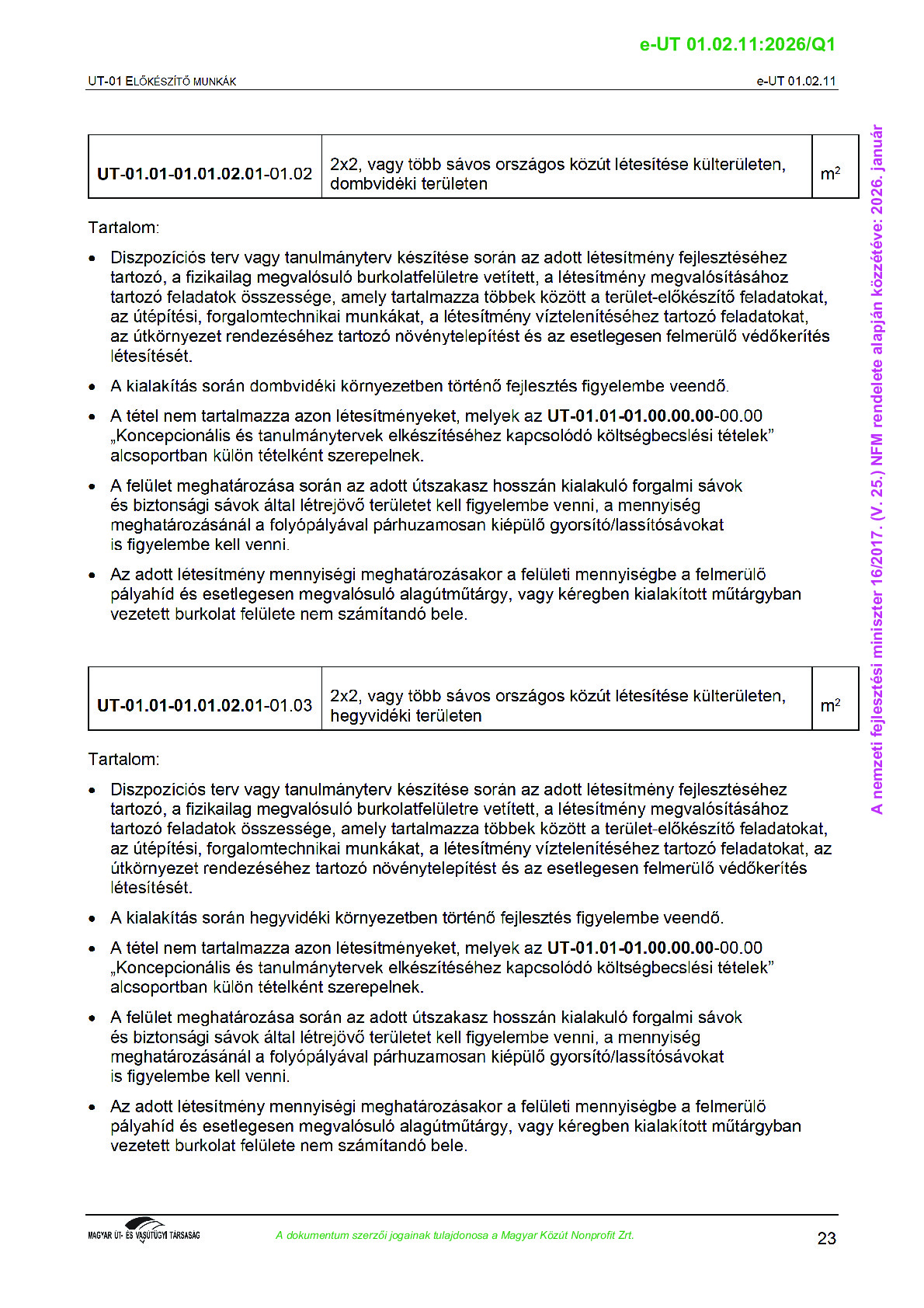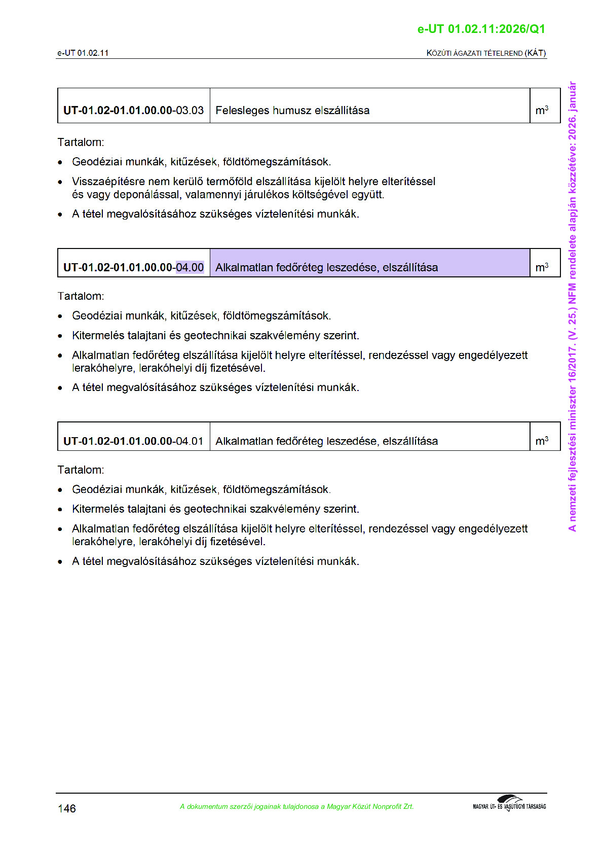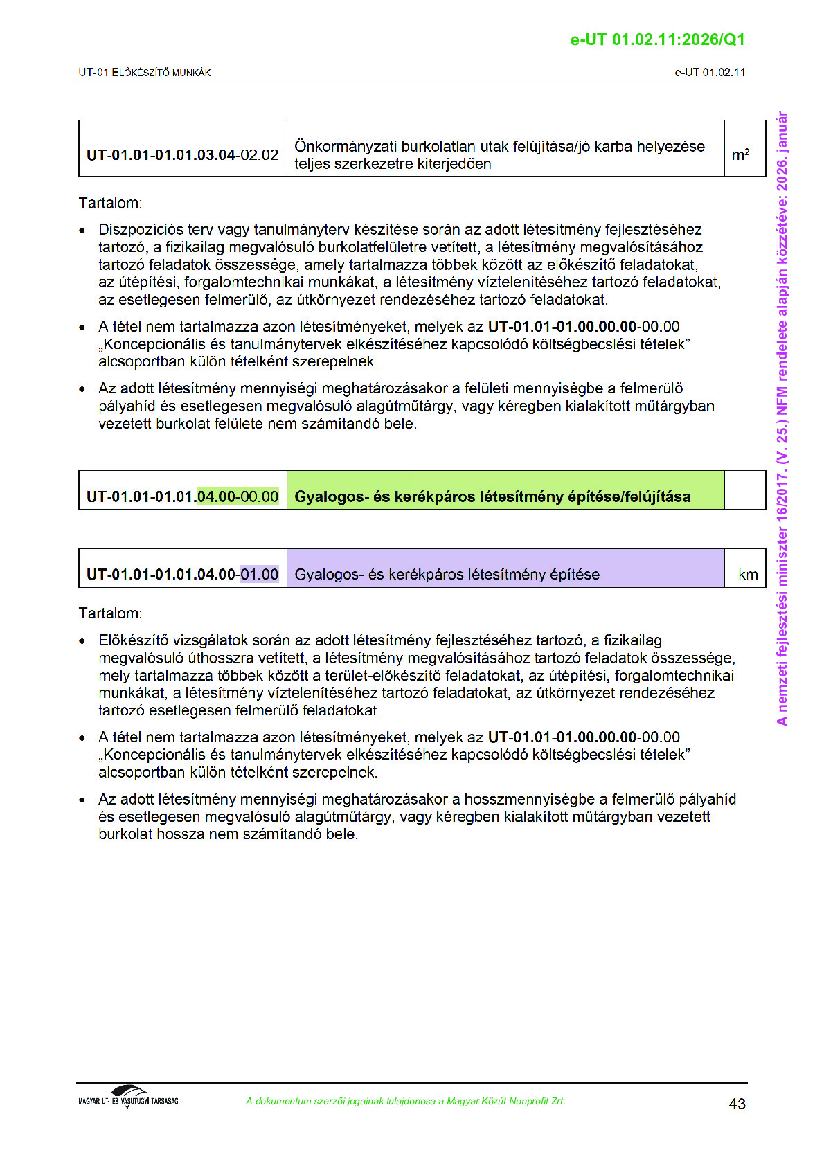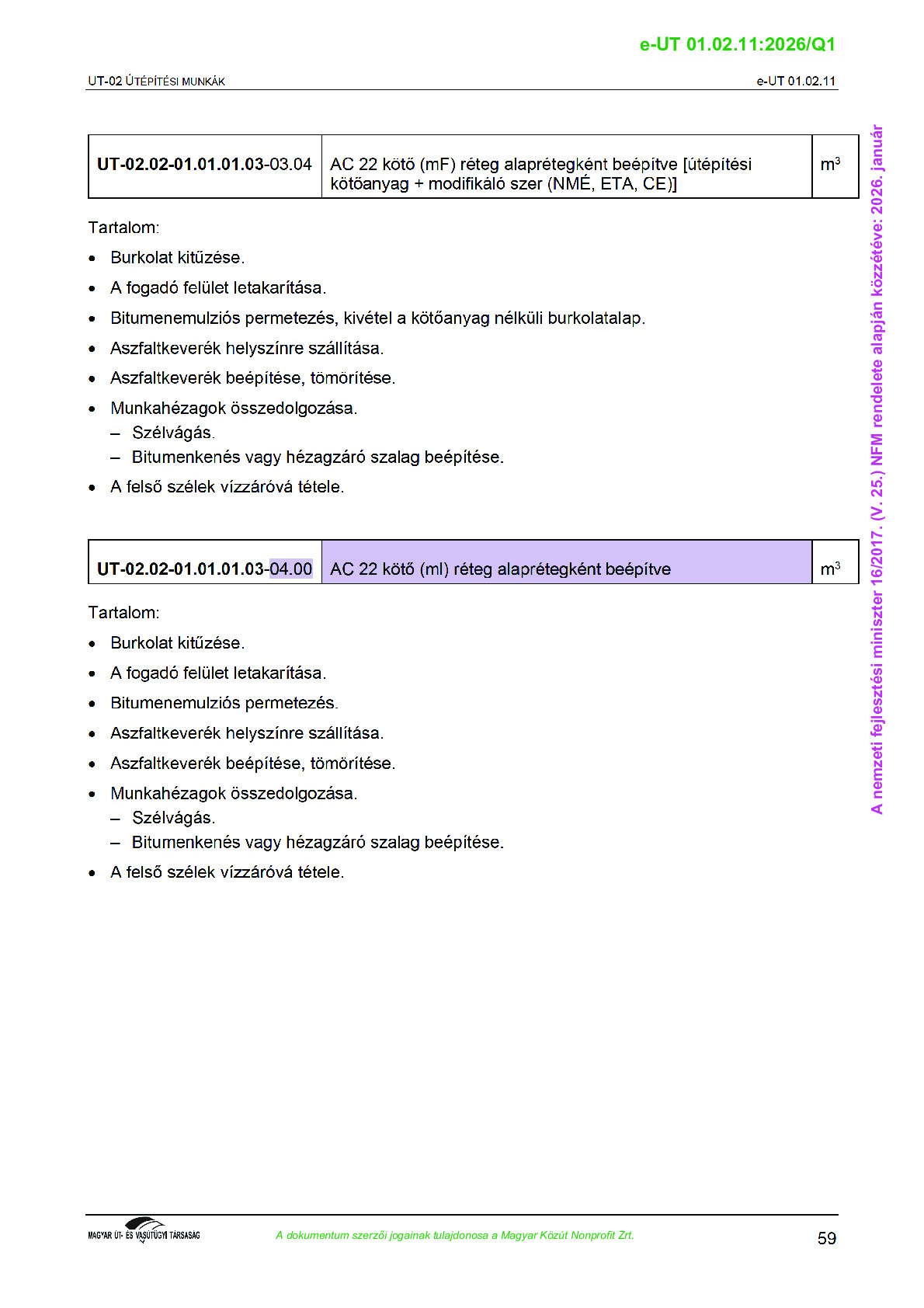 Véleményezés alatt lévő útügyi műszaki előírások