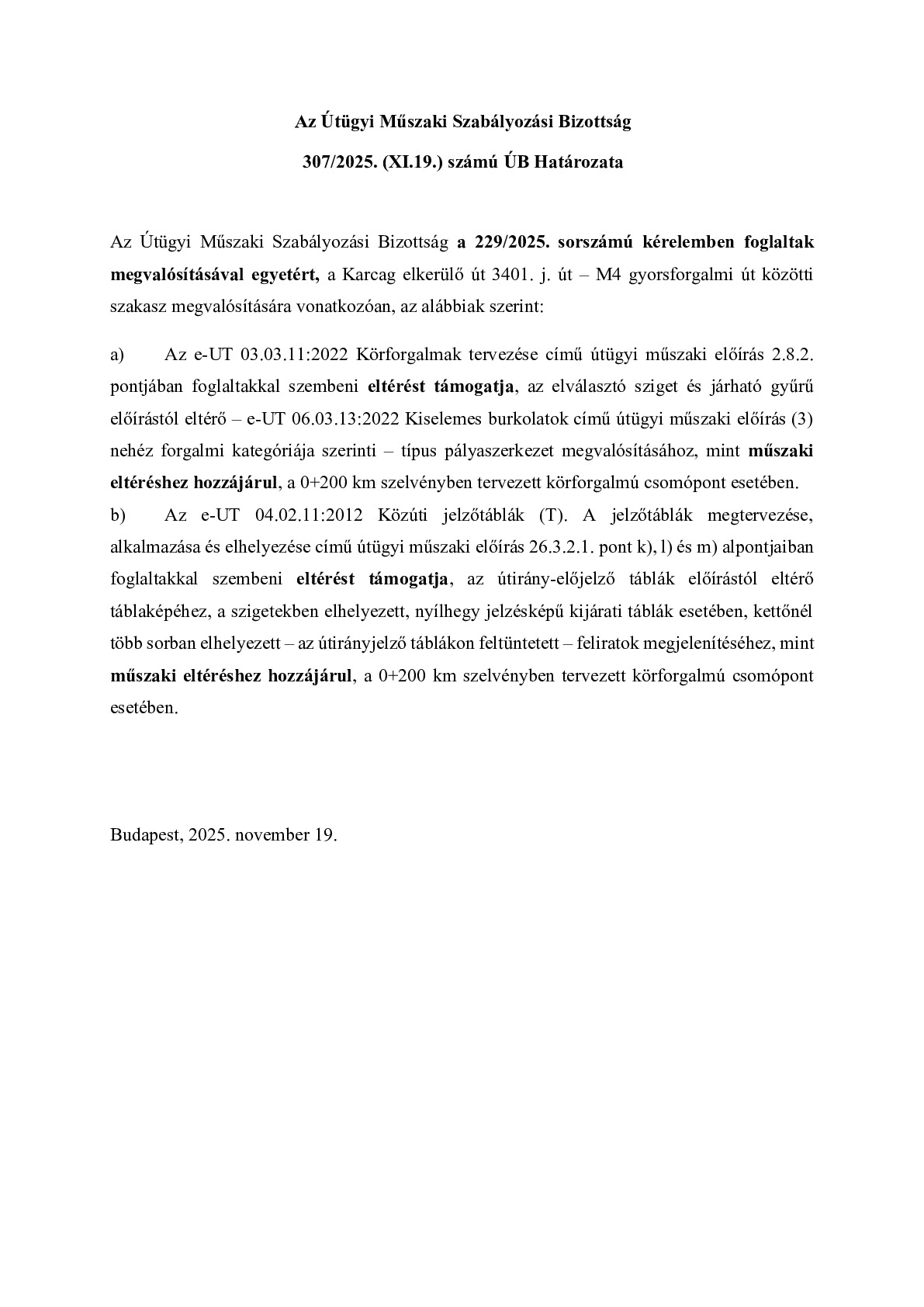 307/2025. (XI.19.) ÚB határozat - Karcag elkerülő út 3401. j. út – M4 gyorsforgalmi út közötti szakasz megvalósítása