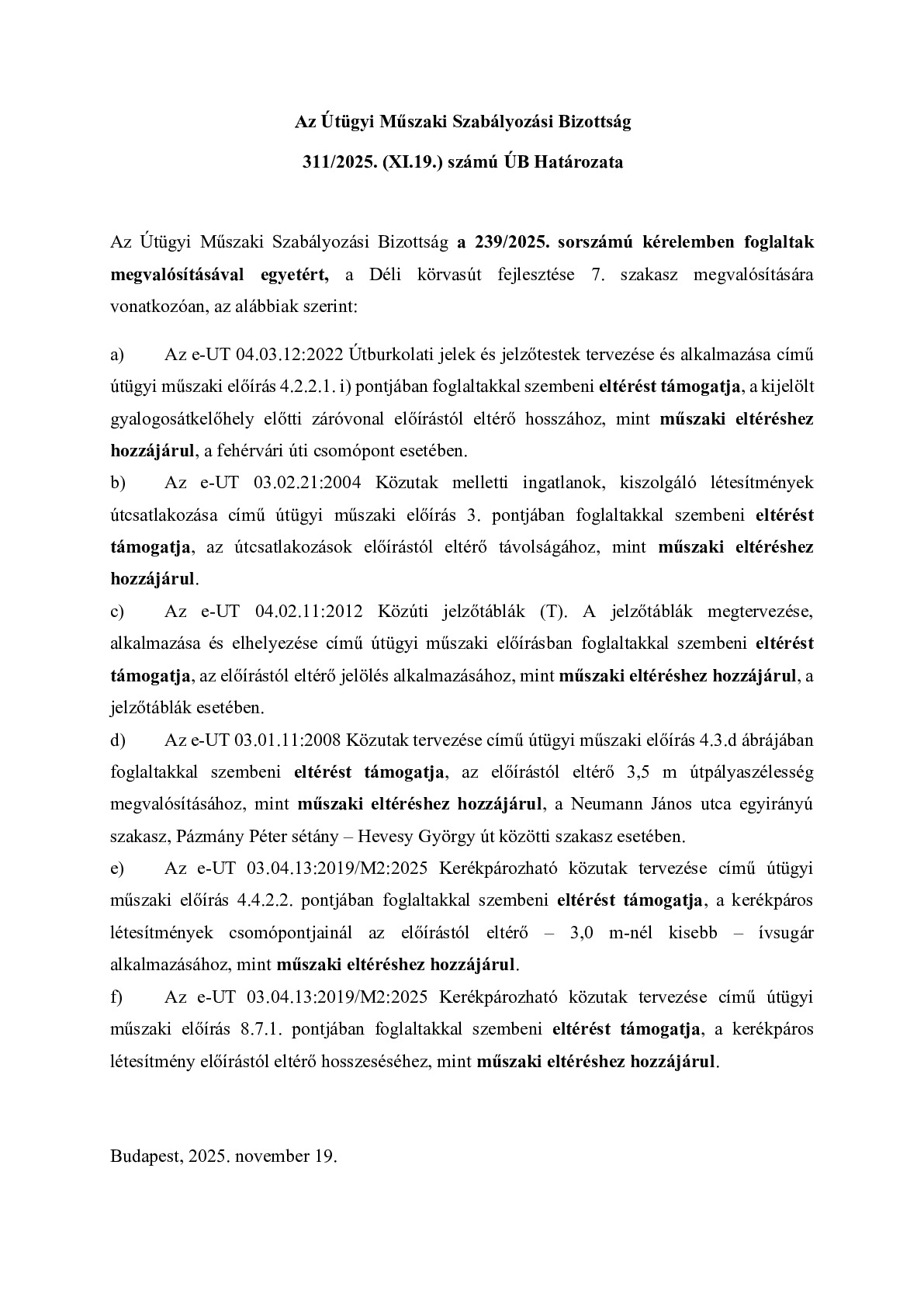 311/2025. (XI.19.) ÚB határozat - Déli körvasút fejlesztése 7. szakasz megvalósítása